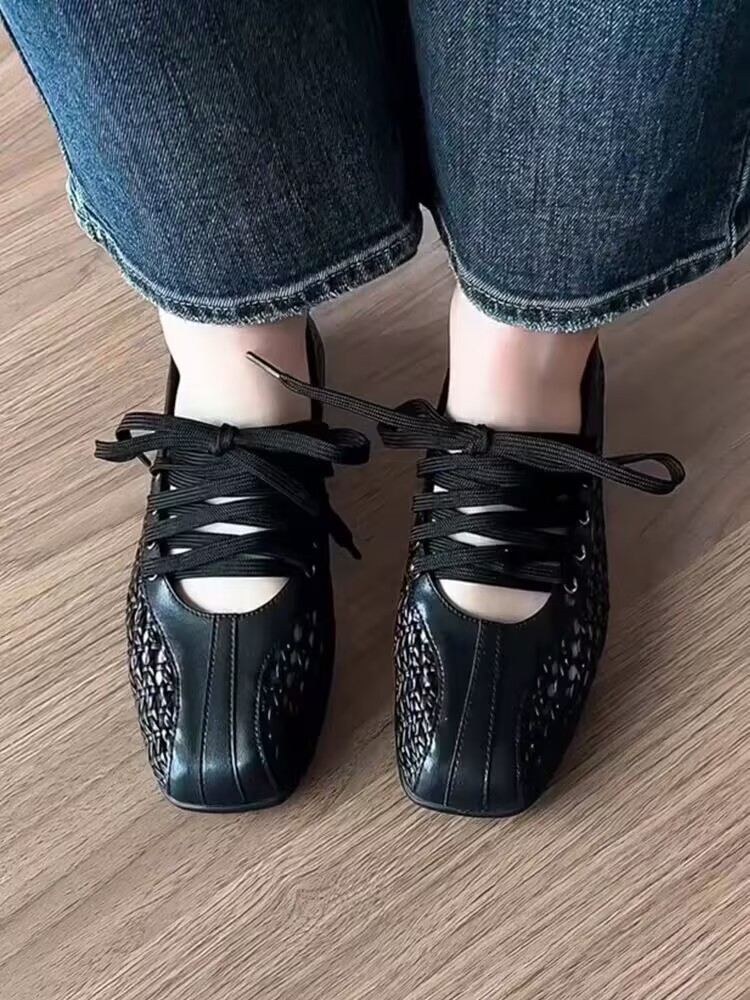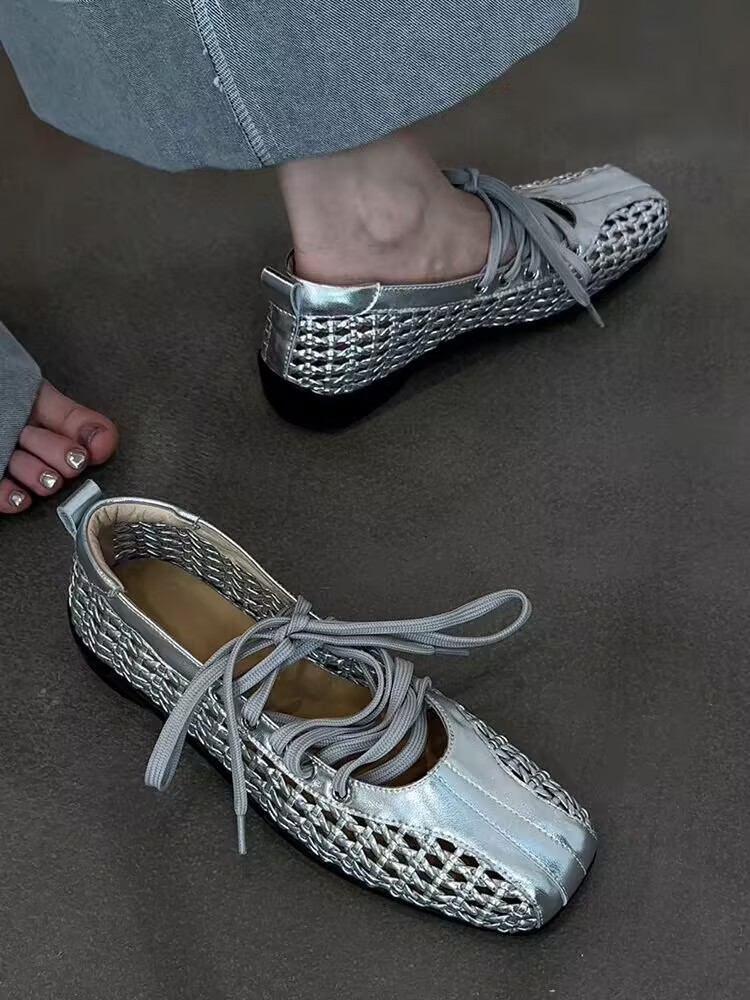 2025 여름 새 스타일 짠 신발 메쉬 중공 발레 스타일 육군 훈련 신발 여성 부드러운 밑창 통기성 메리 제인 신발 유행스토어 가기