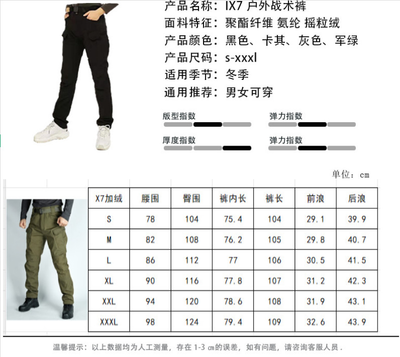 제조 업체 도매 국경 간 X7 소프트 쉘 플러스 벨벳 야외 레저 스포츠 등산 스키 작업복 남성 전술 바지스토어 가기