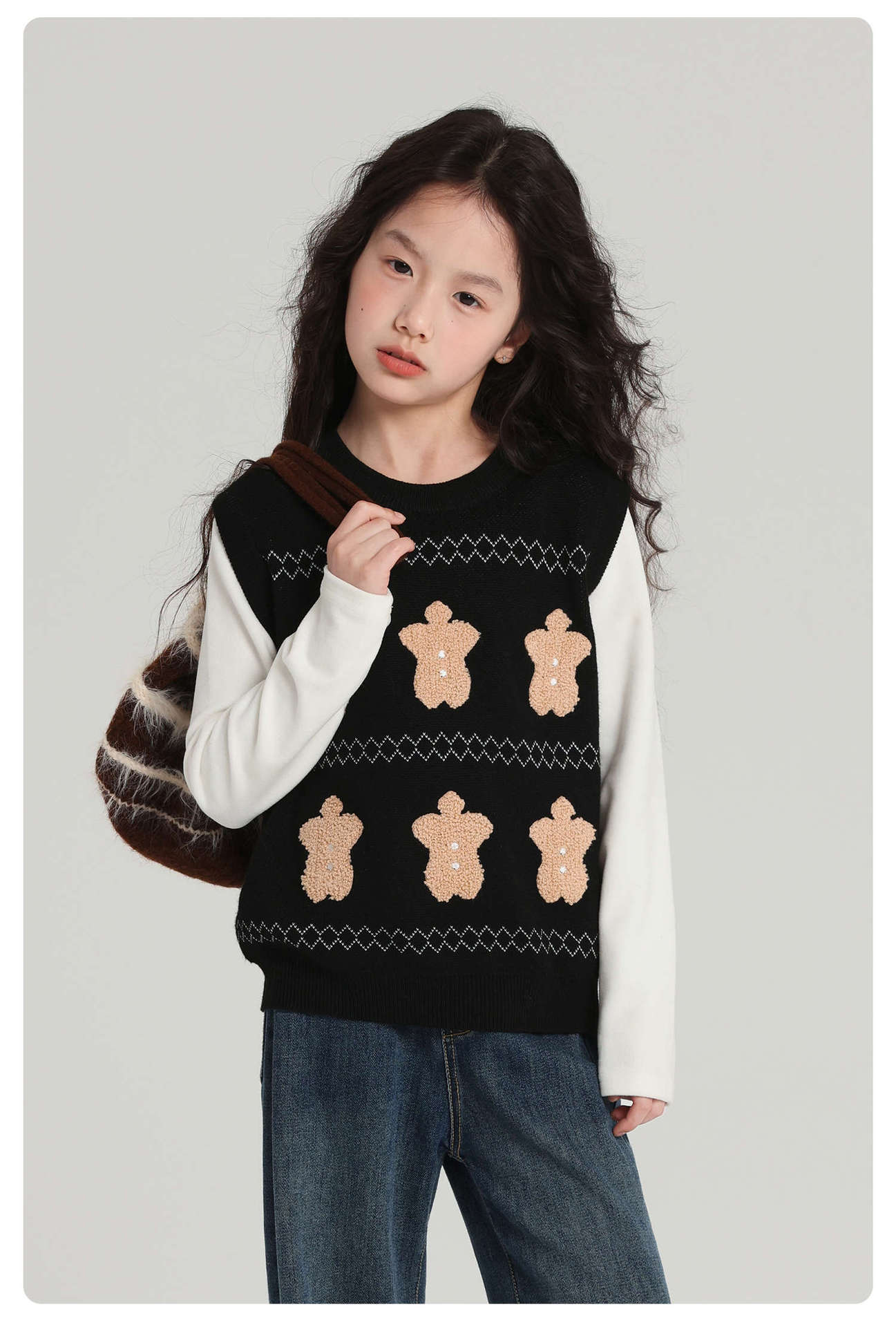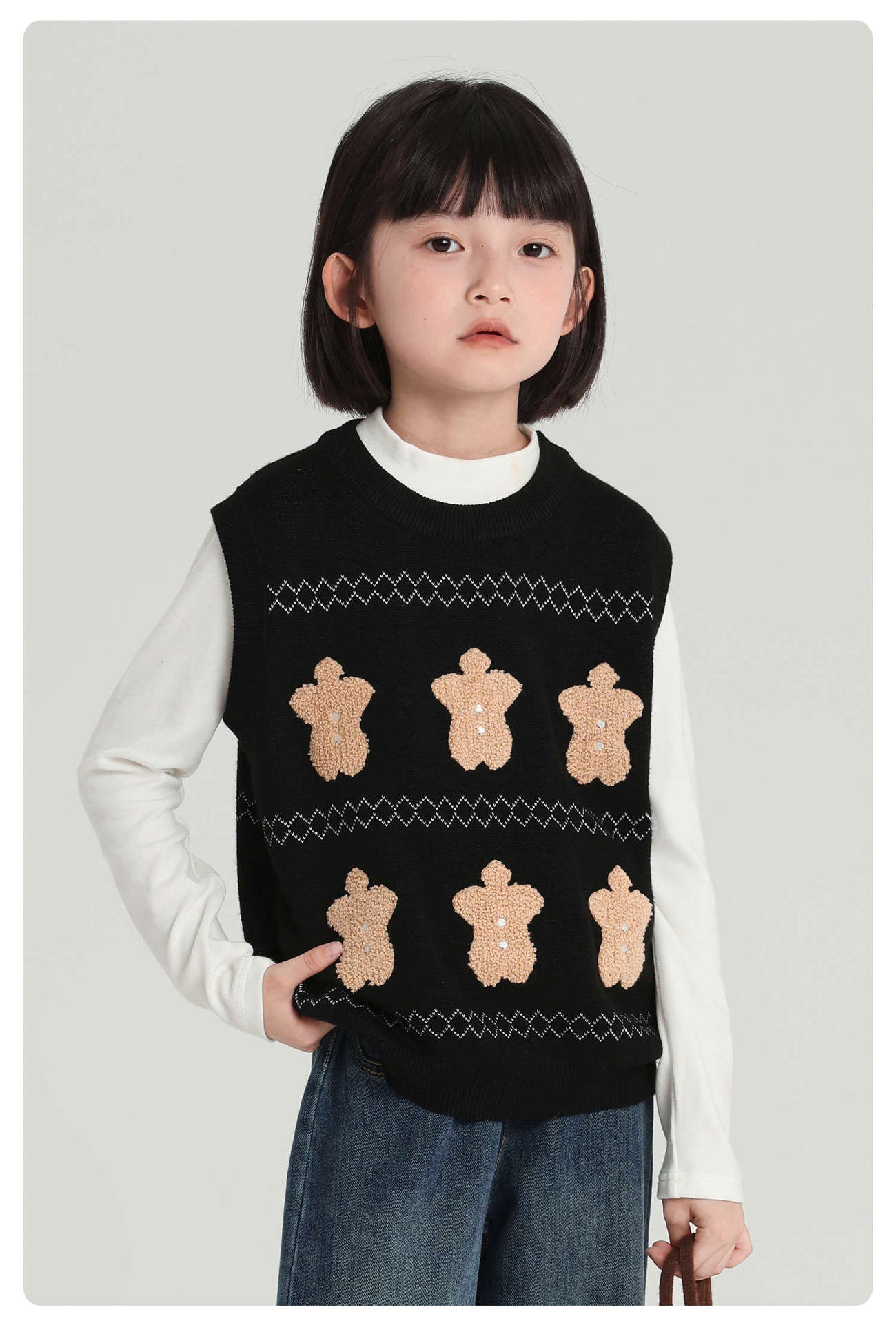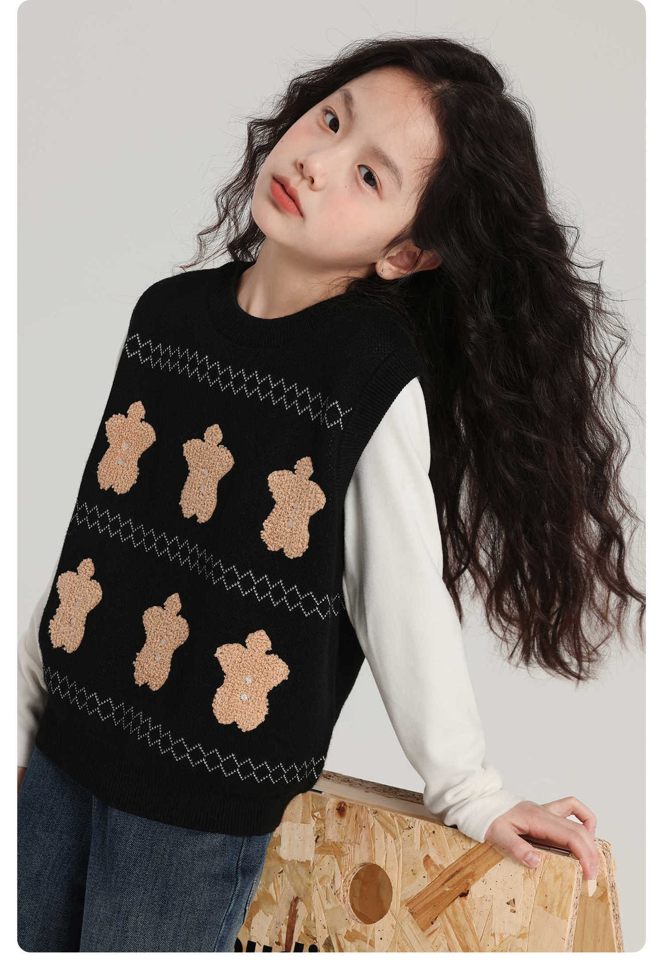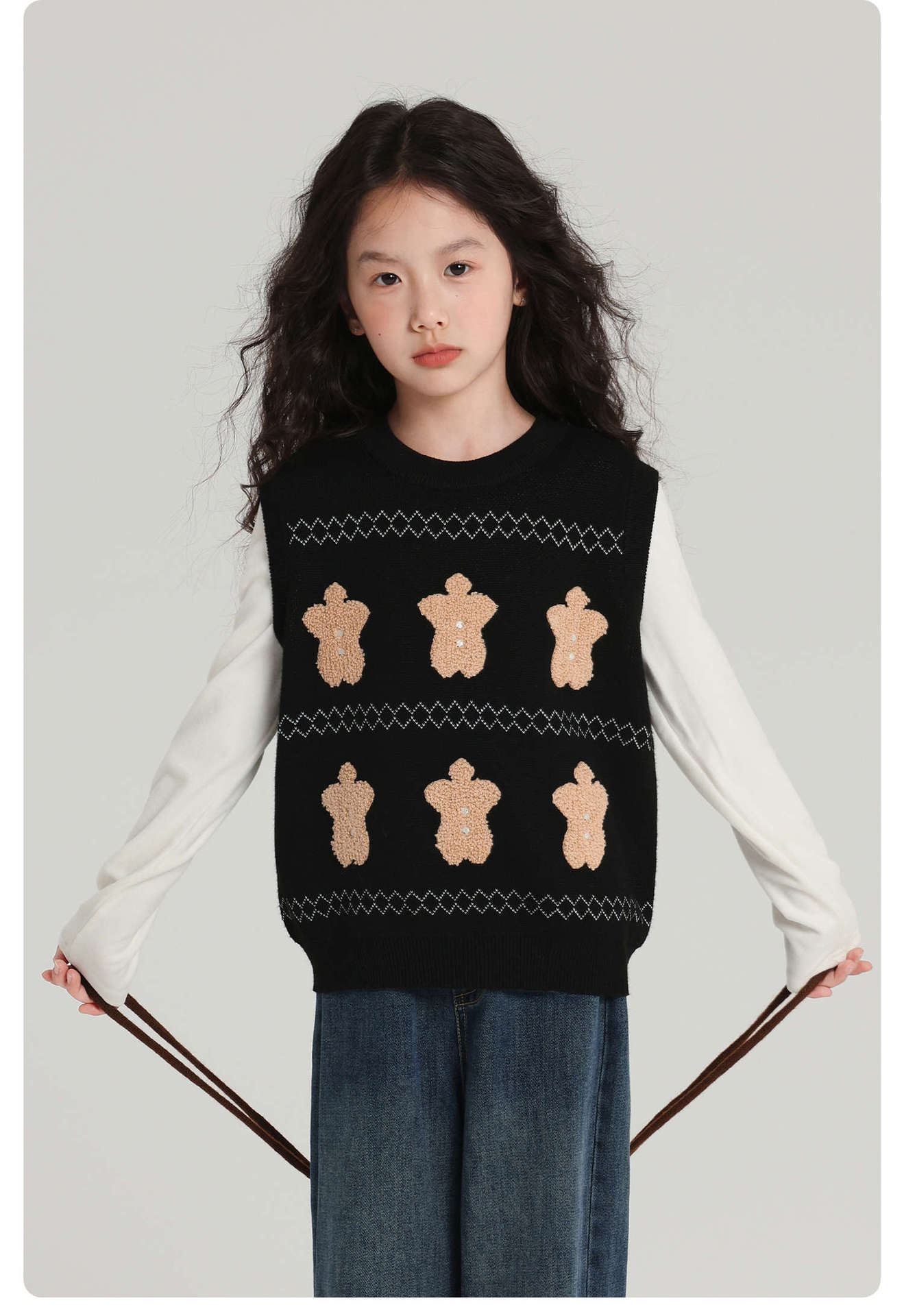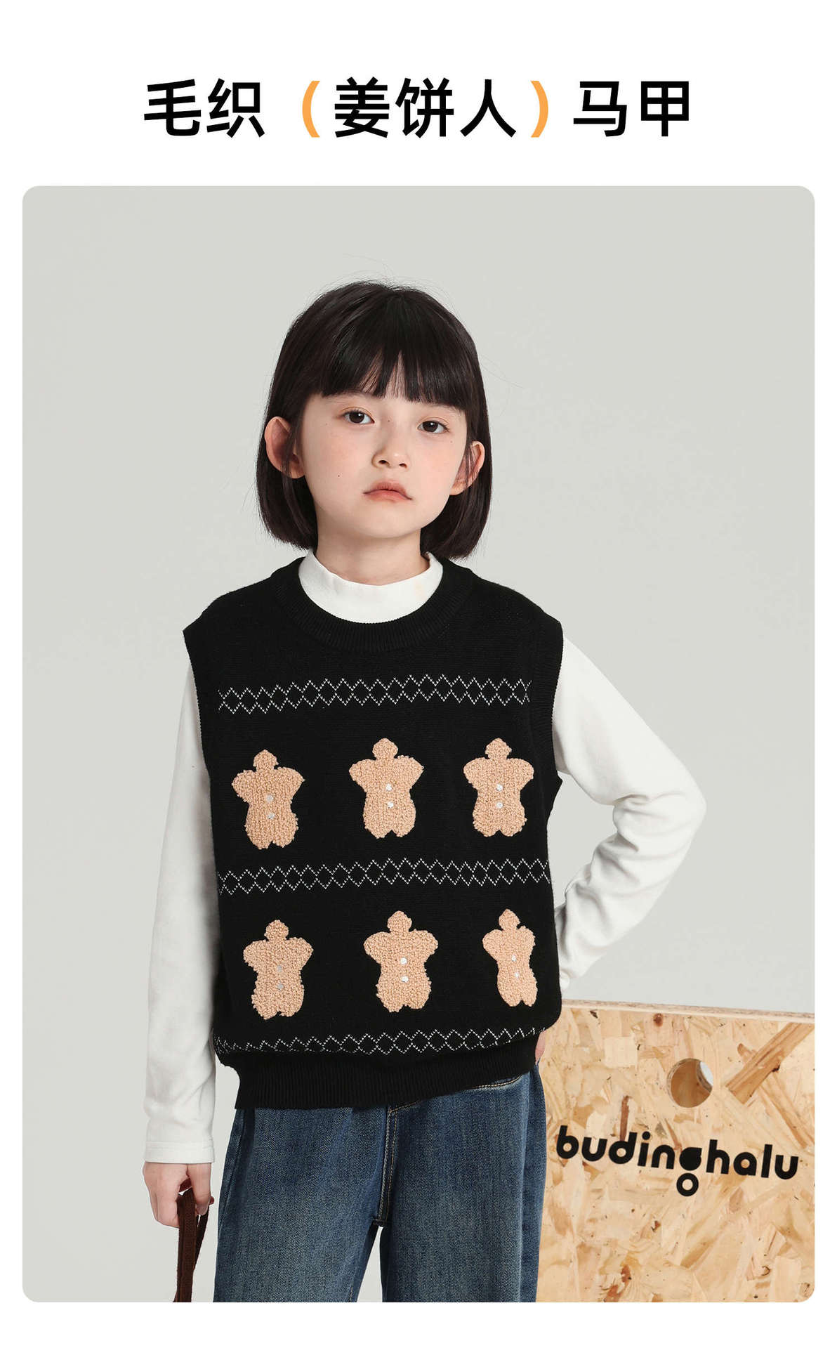푸딩 하루 소녀 조끼 스웨터 2025 가을 새로운 어린이 다목적 모직 대비 색상 진저 브레드 맨 조끼스토어 가기