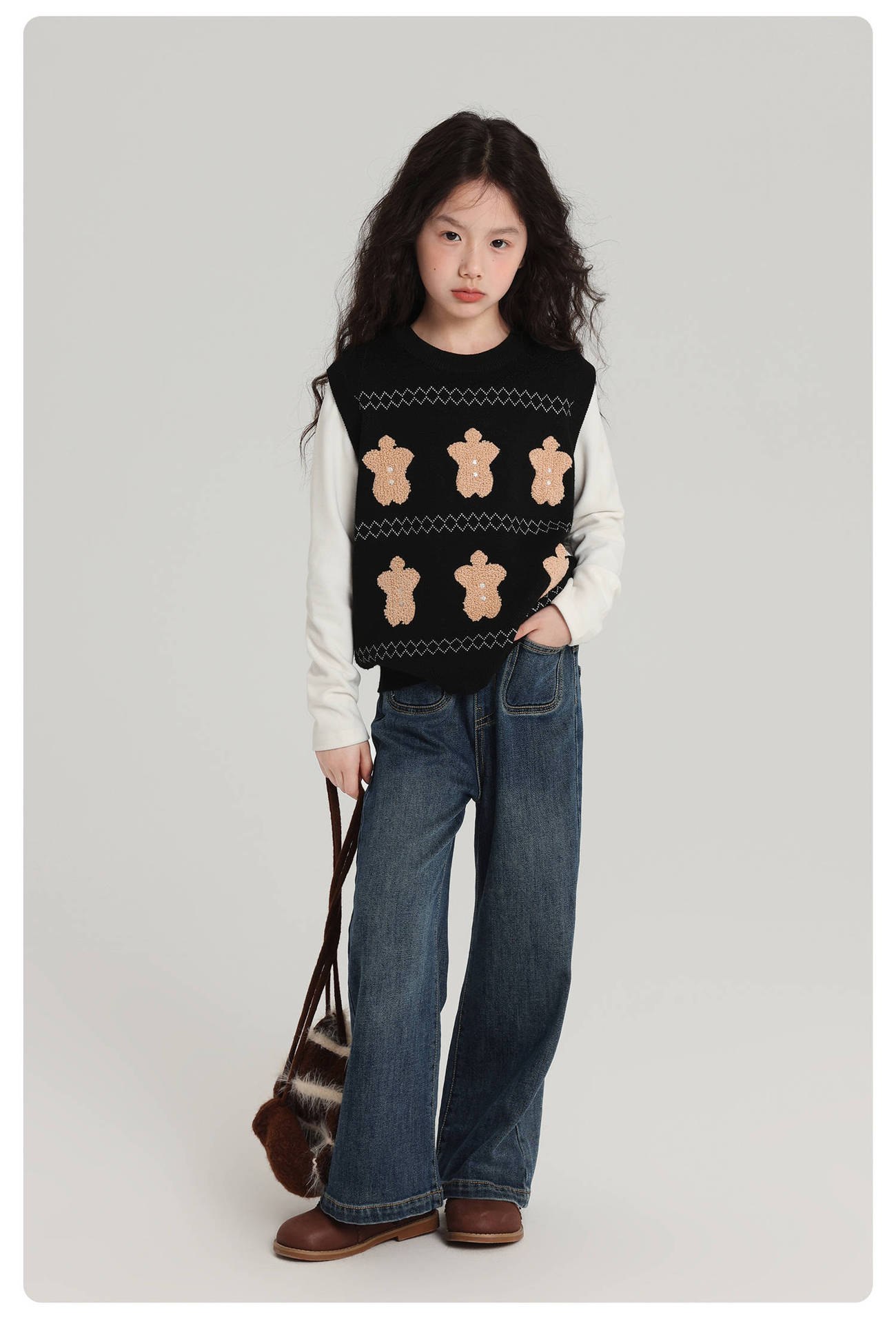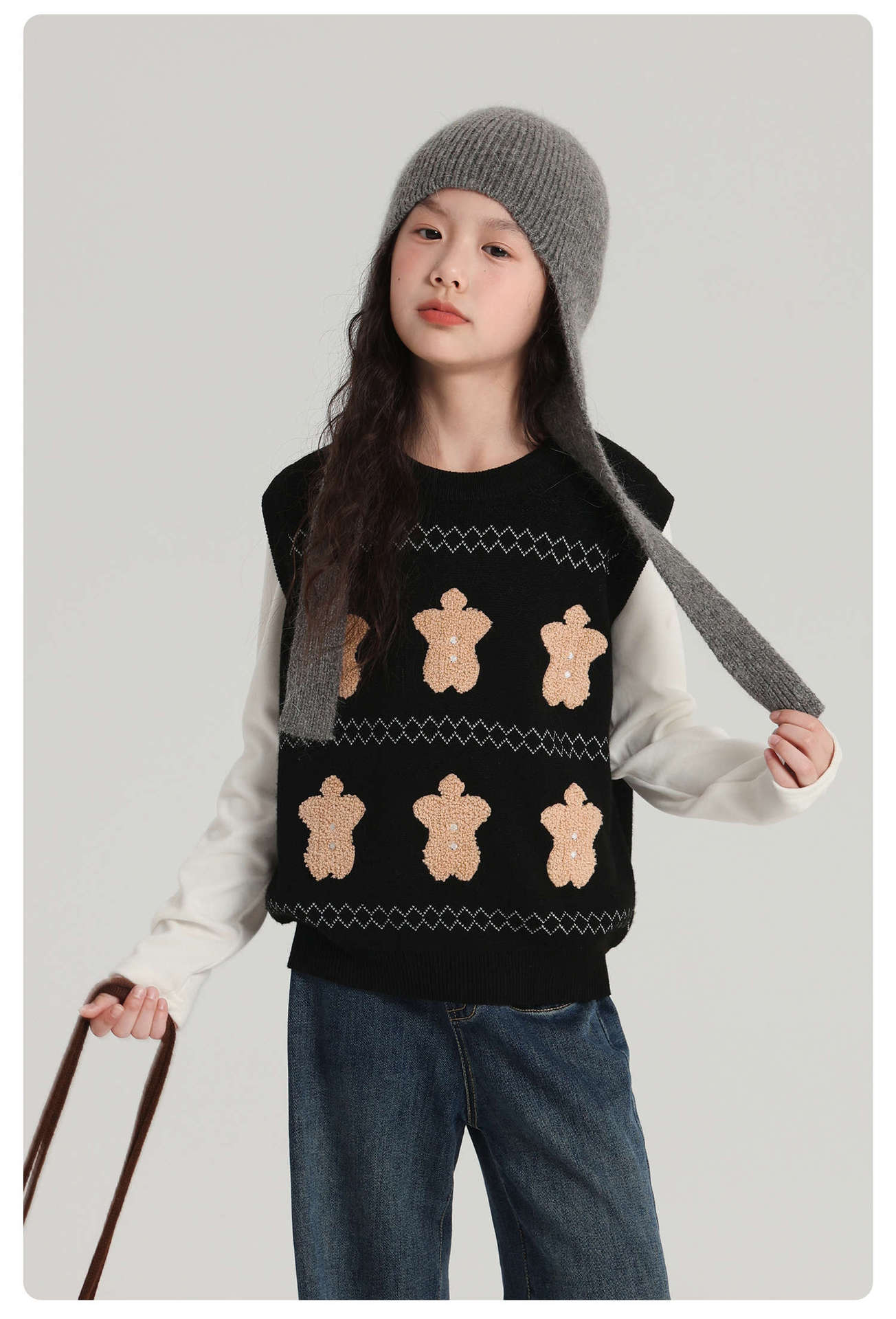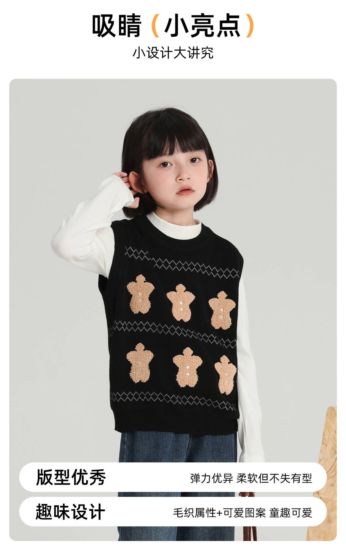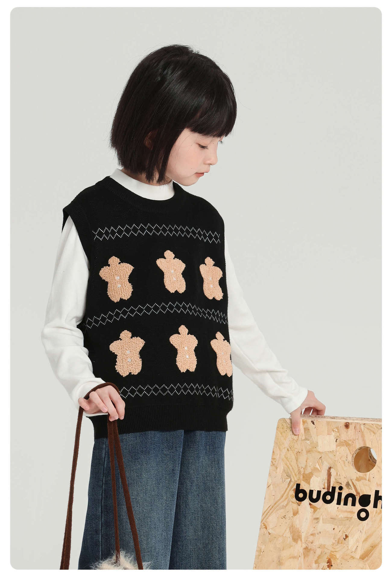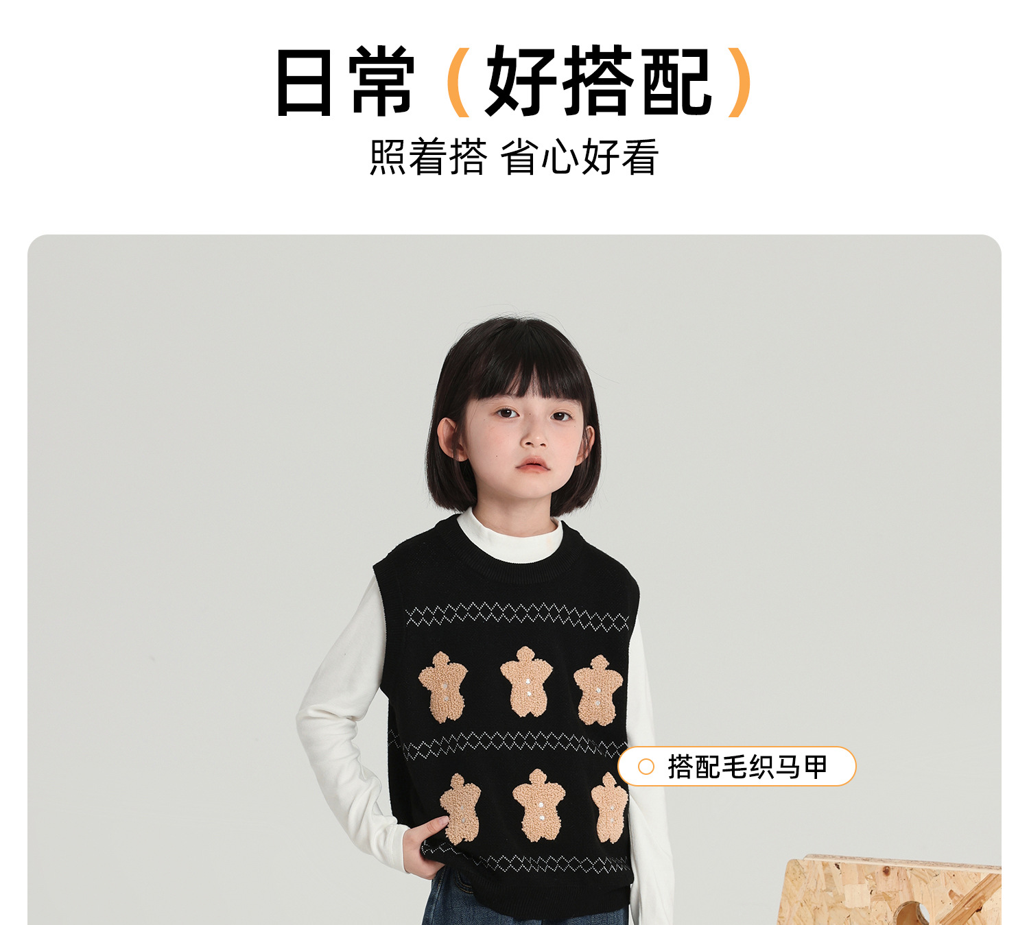 푸딩 하루 소녀 조끼 스웨터 2025 가을 새로운 어린이 다목적 모직 대비 색상 진저 브레드 맨 조끼스토어 가기