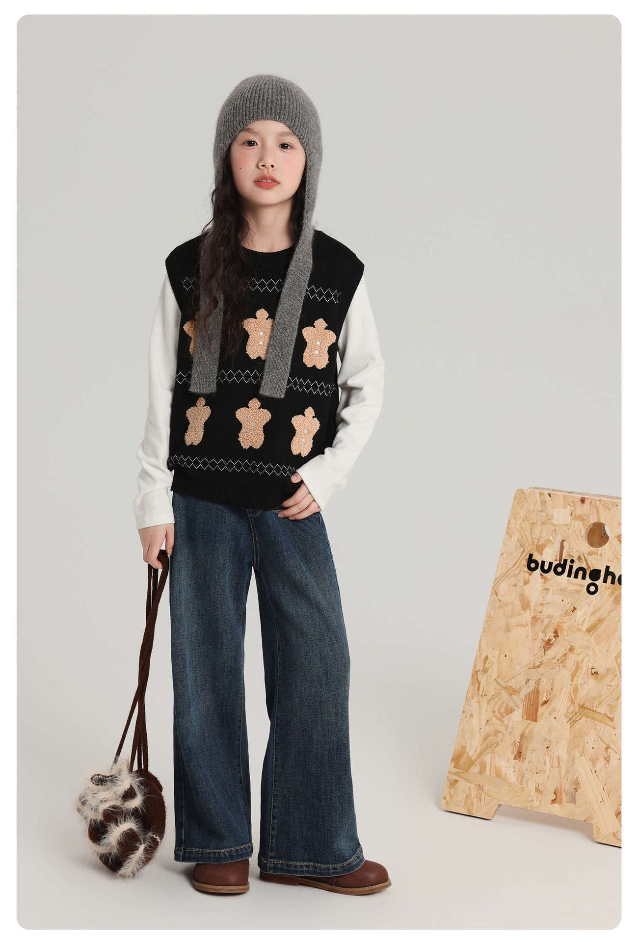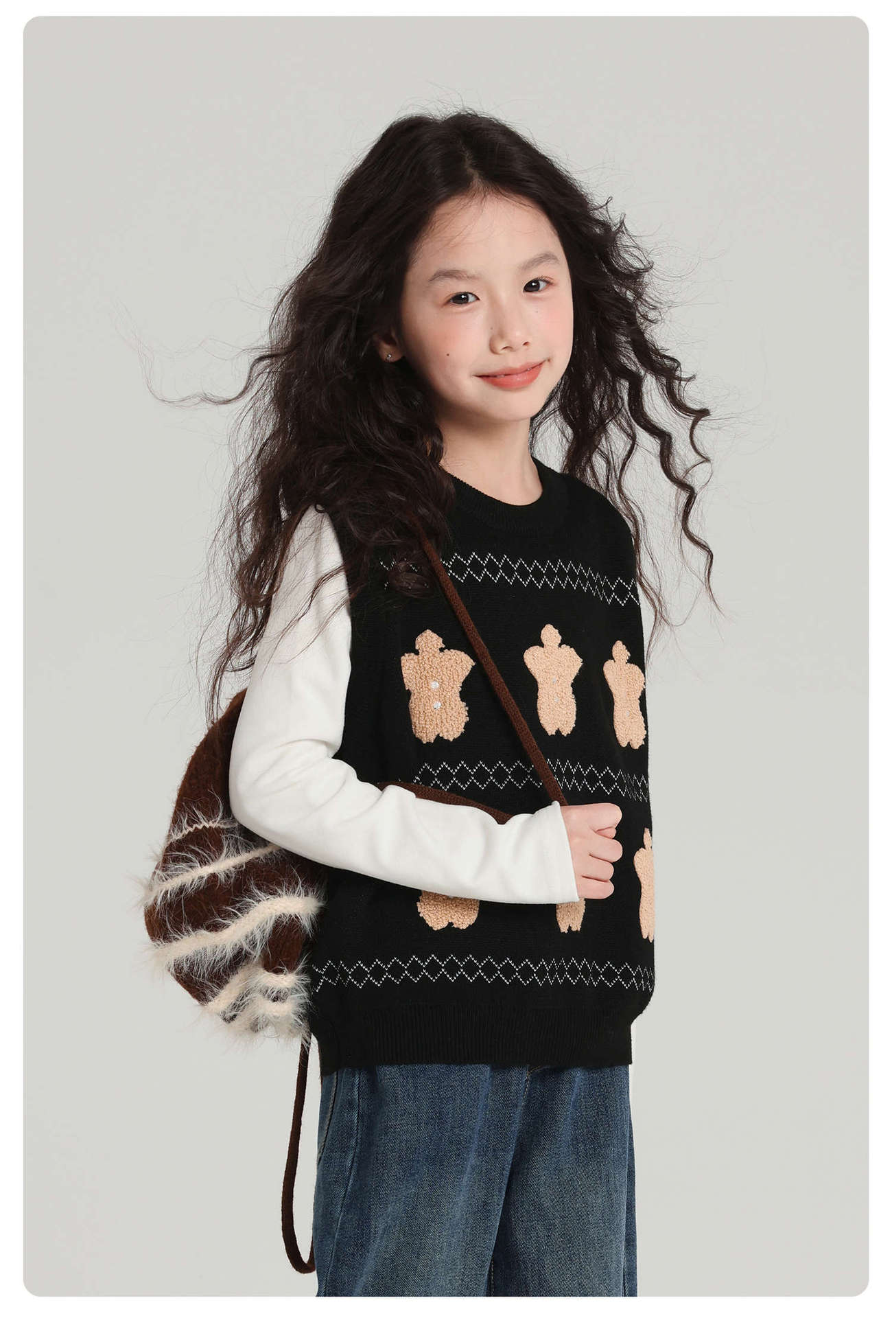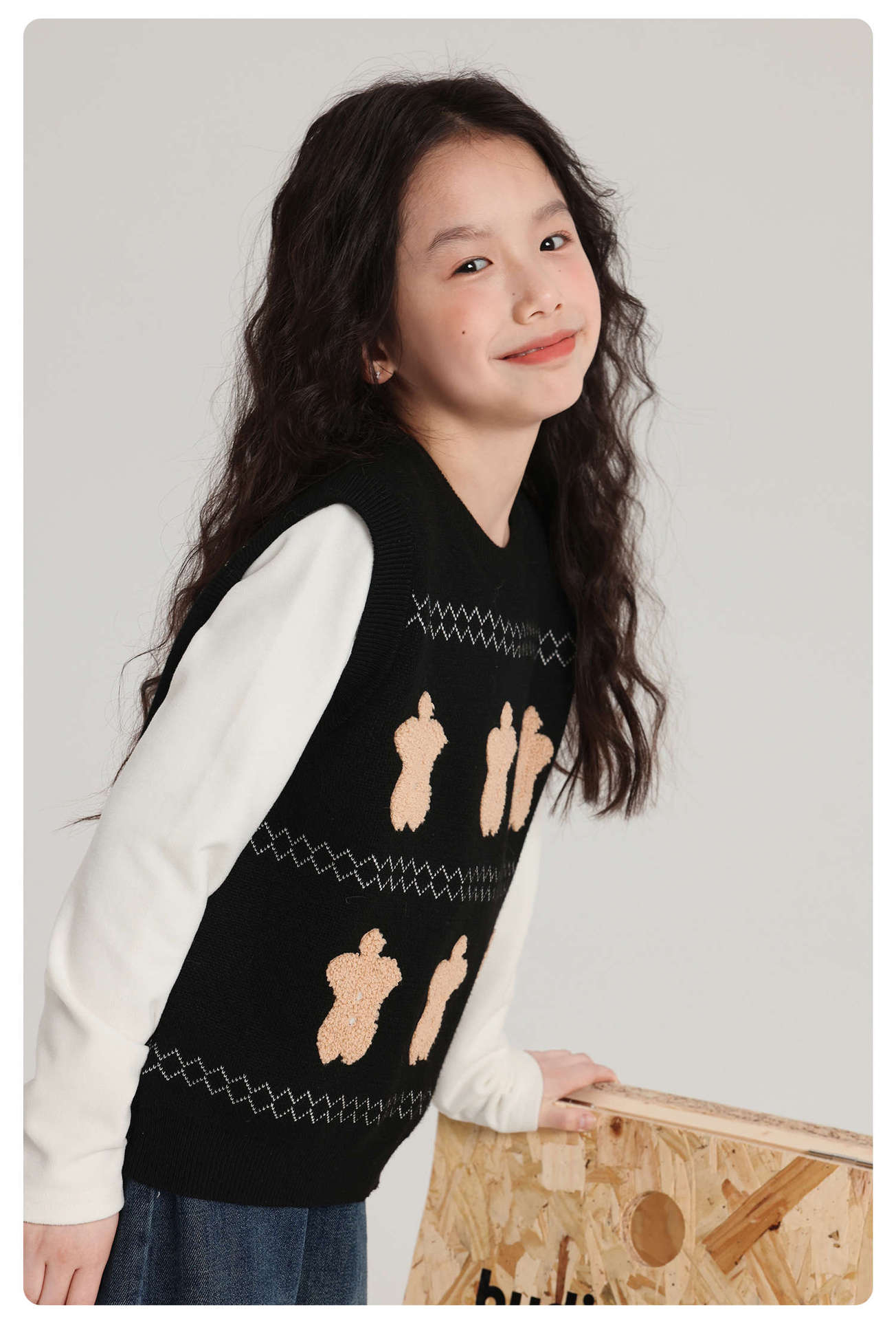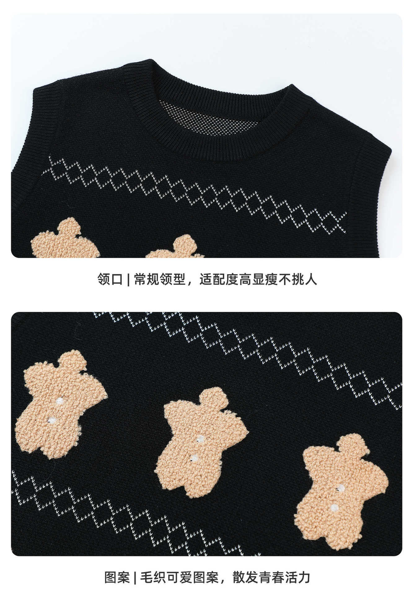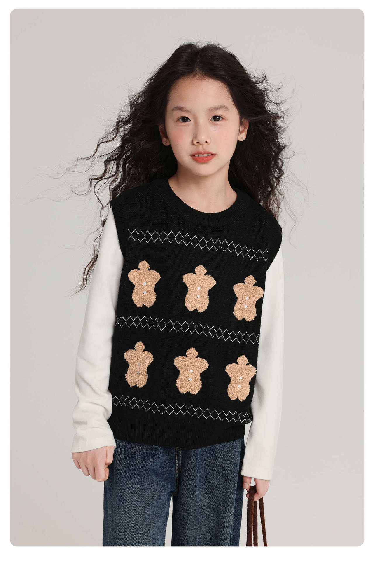푸딩 하루 소녀 조끼 스웨터 2025 가을 새로운 어린이 다목적 모직 대비 색상 진저 브레드 맨 조끼스토어 가기