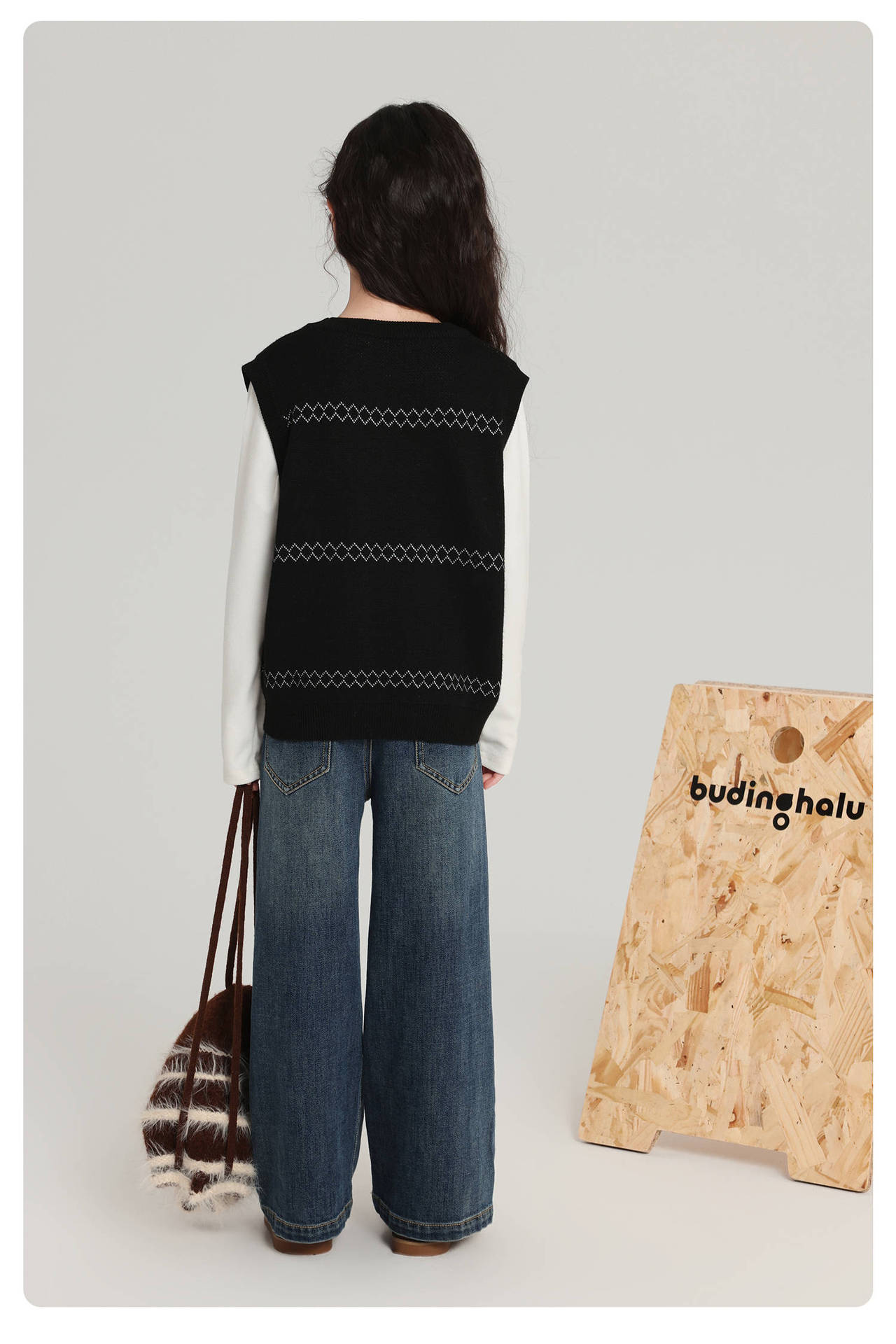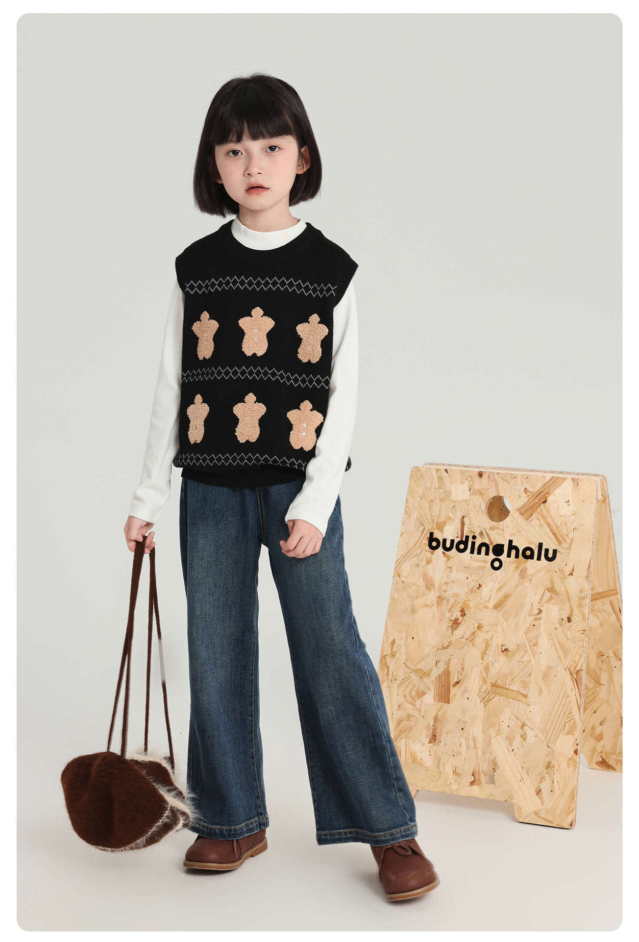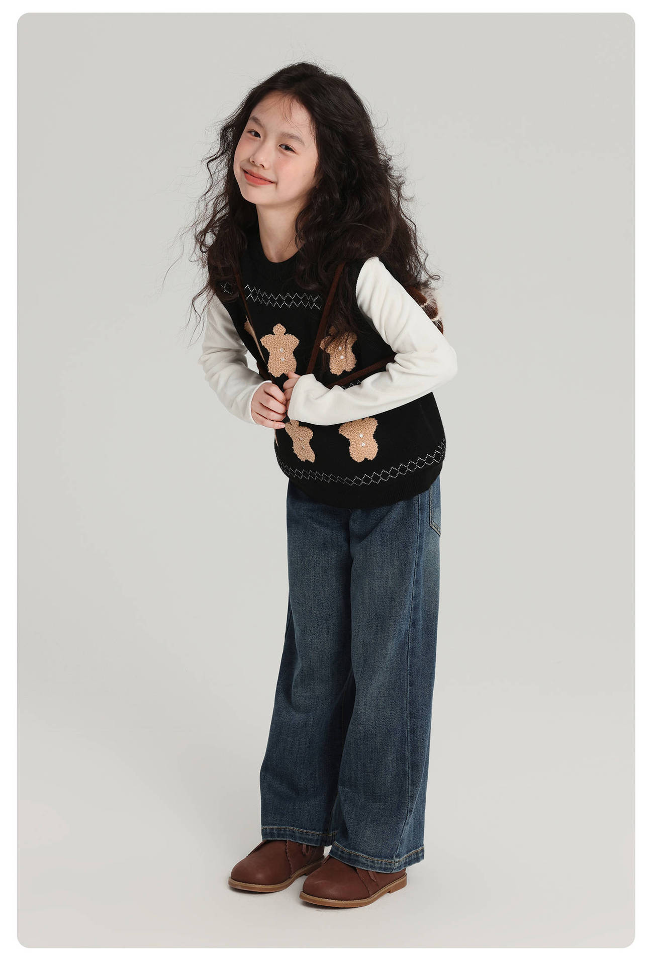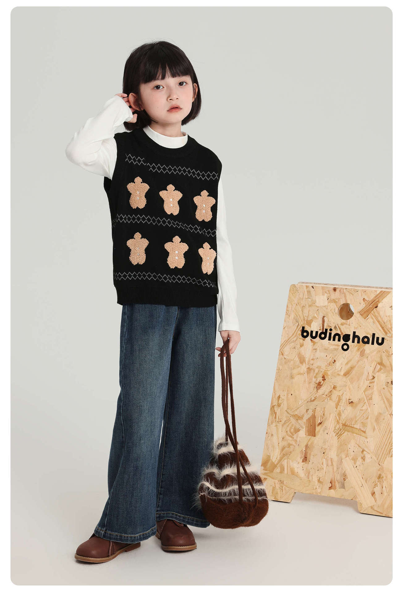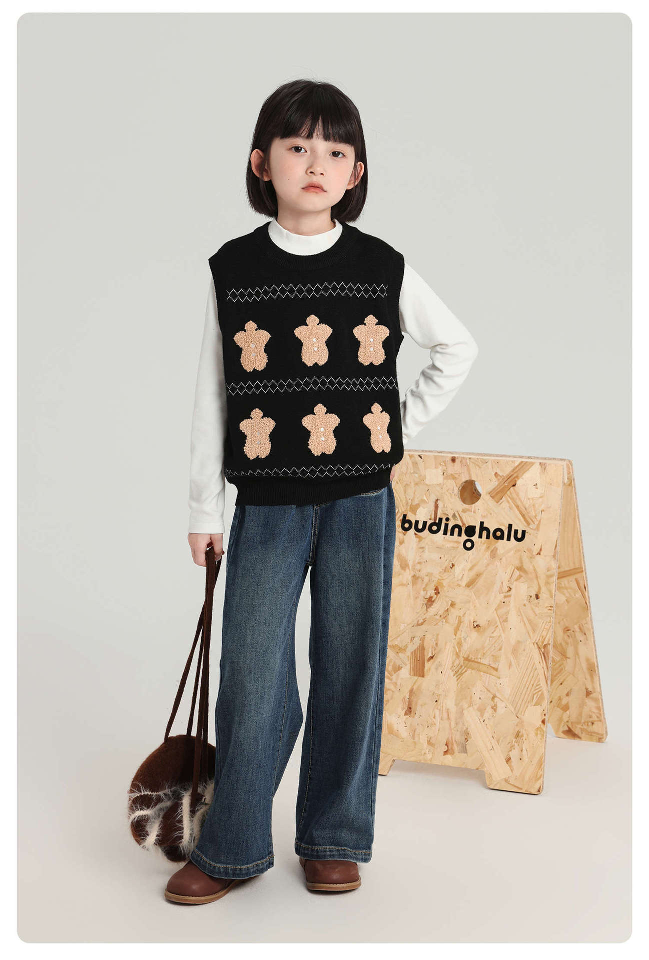 푸딩 하루 소녀 조끼 스웨터 2025 가을 새로운 어린이 다목적 모직 대비 색상 진저 브레드 맨 조끼스토어 가기