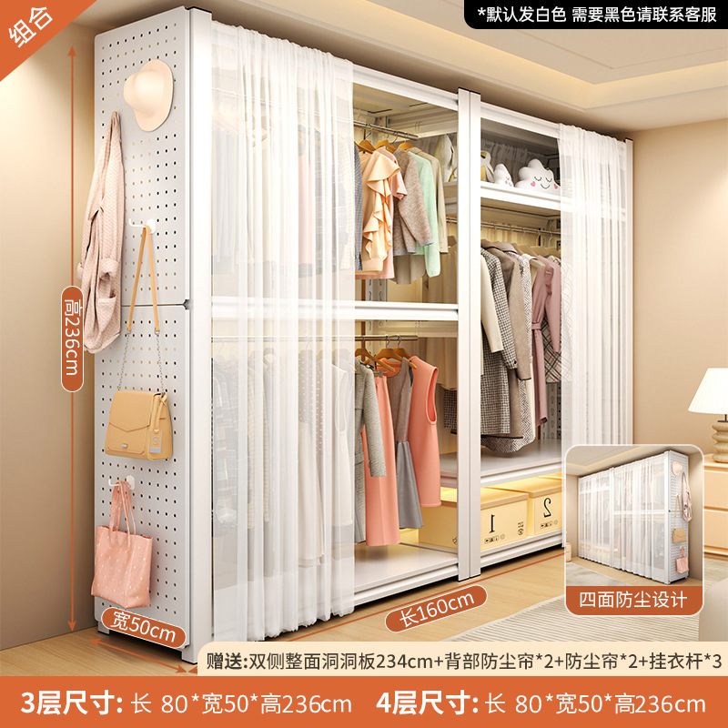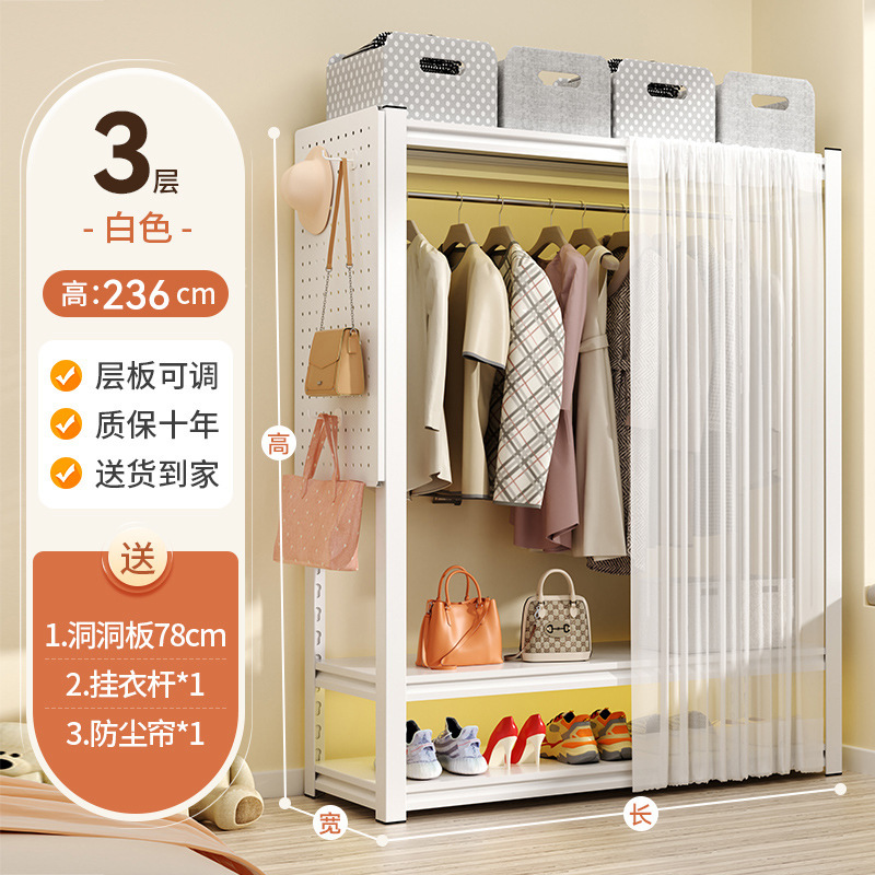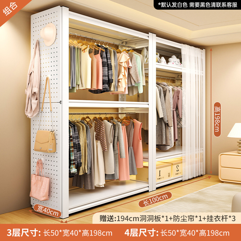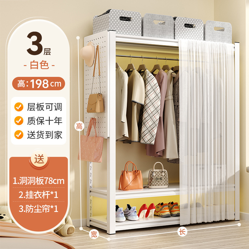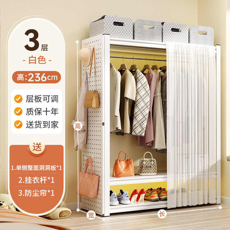 선반 옷장 홈 침실 임대 의류 보관 간단한 조립 바닥 구멍 보드 금속 코너 강철 옷걸이