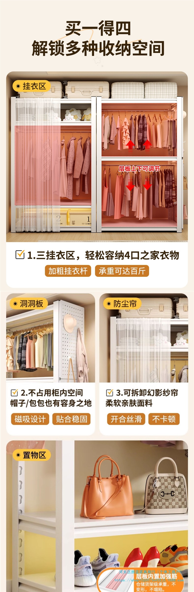 • ️모델️: 4겹, 길이 150cm, 깊이 50cm, 높이 236cm [천공판 + 옷장레일 + 방진커튼 포함]