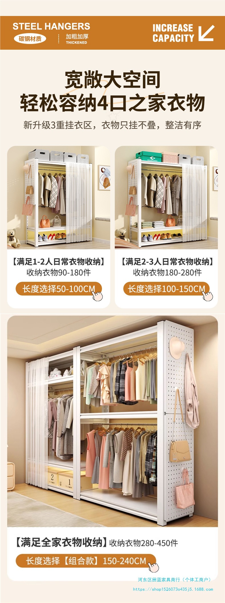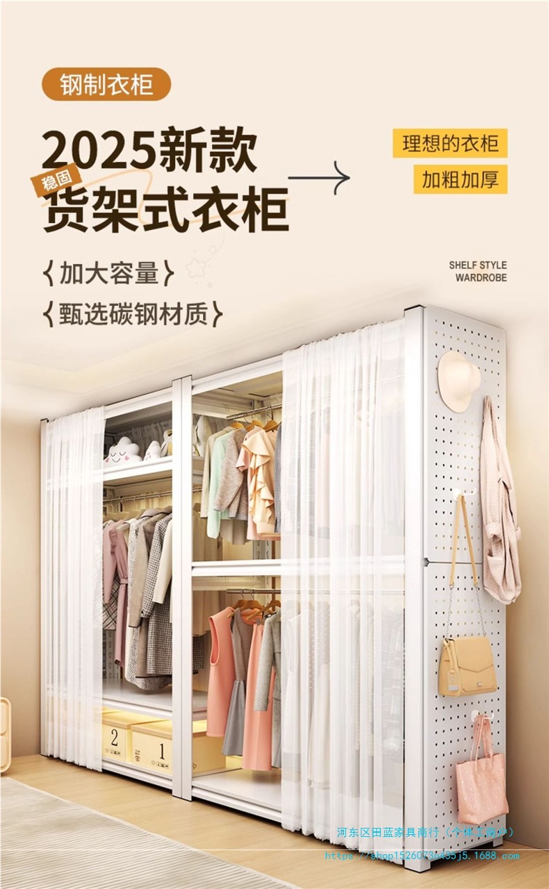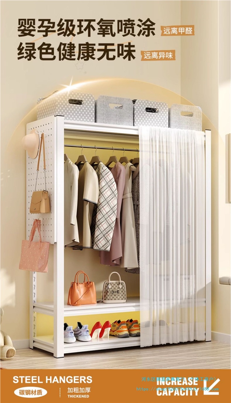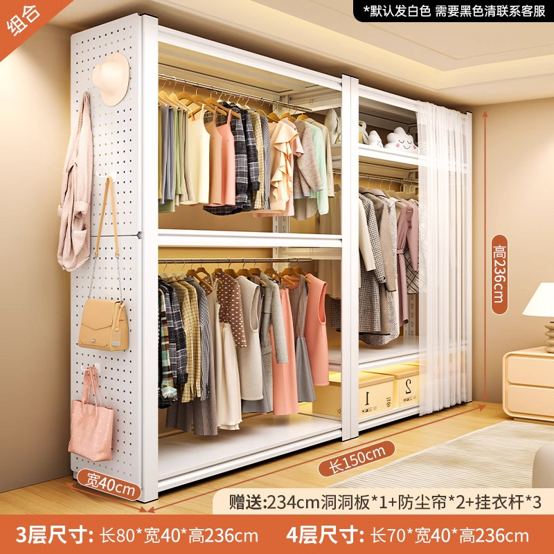 • ️모델️: 더블 레이어 걸이옷 길이 150cm 깊이 50cm 높이 198cm [무료 천공판 + 옷장레일*2 + 방진커튼]
