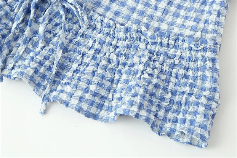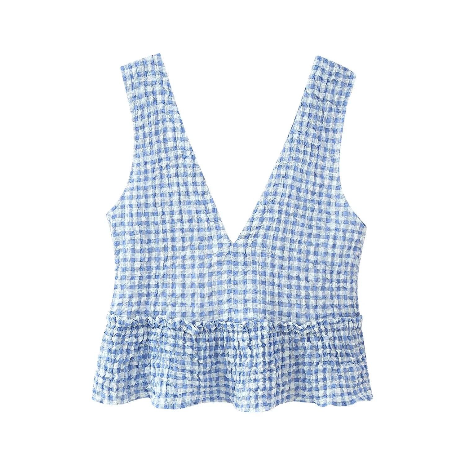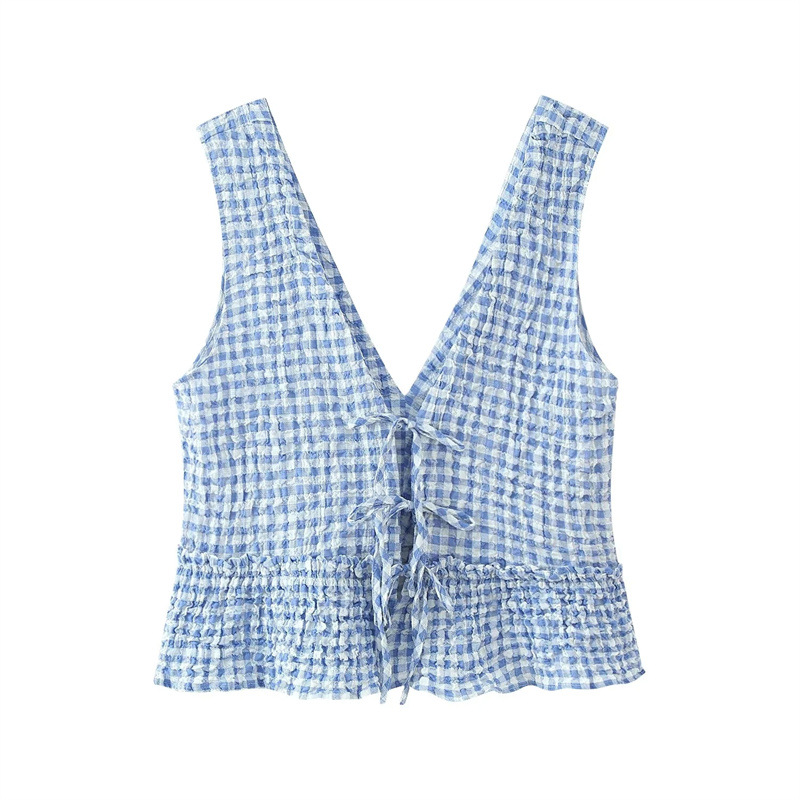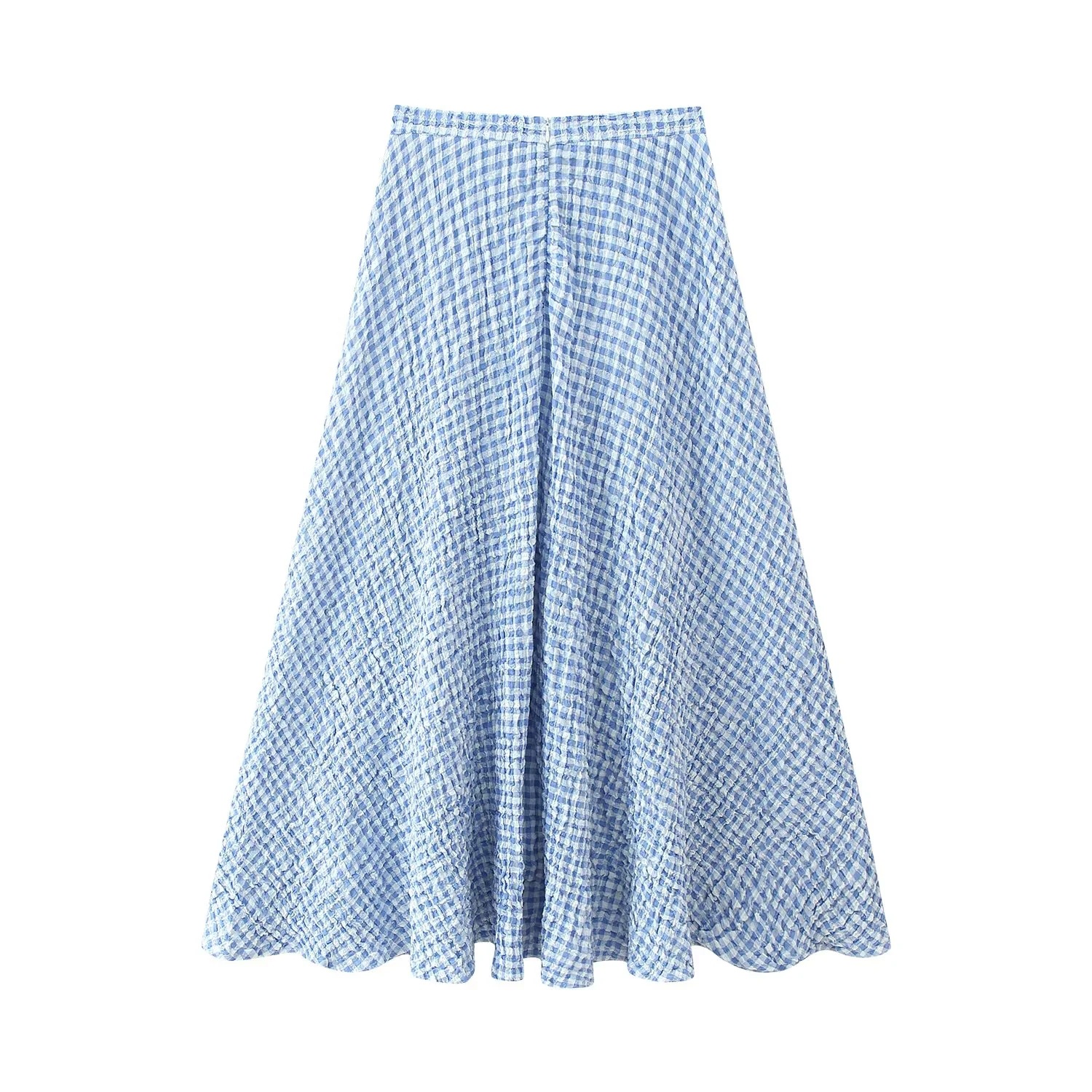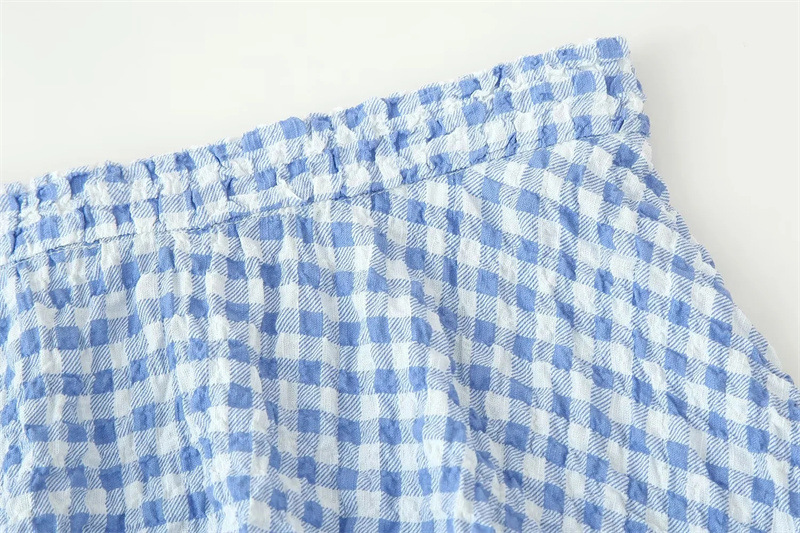 여름 신상 여성 유럽풍 민소매 상의 8741094 체크무늬 케이프 스타일 스커트 8741804