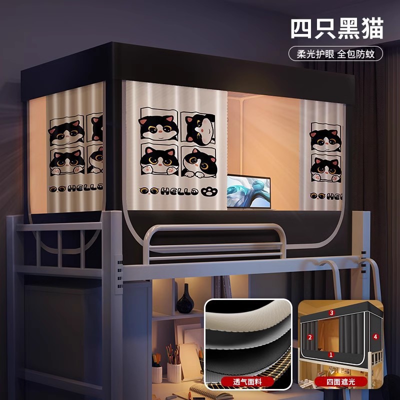 학생 기숙사 이층 침대용 일체형 침대 커튼 모기장, 범용 완전 밀폐형 차광 상단 침대, 모든 항목을 포함하는 대학스토어 가기
