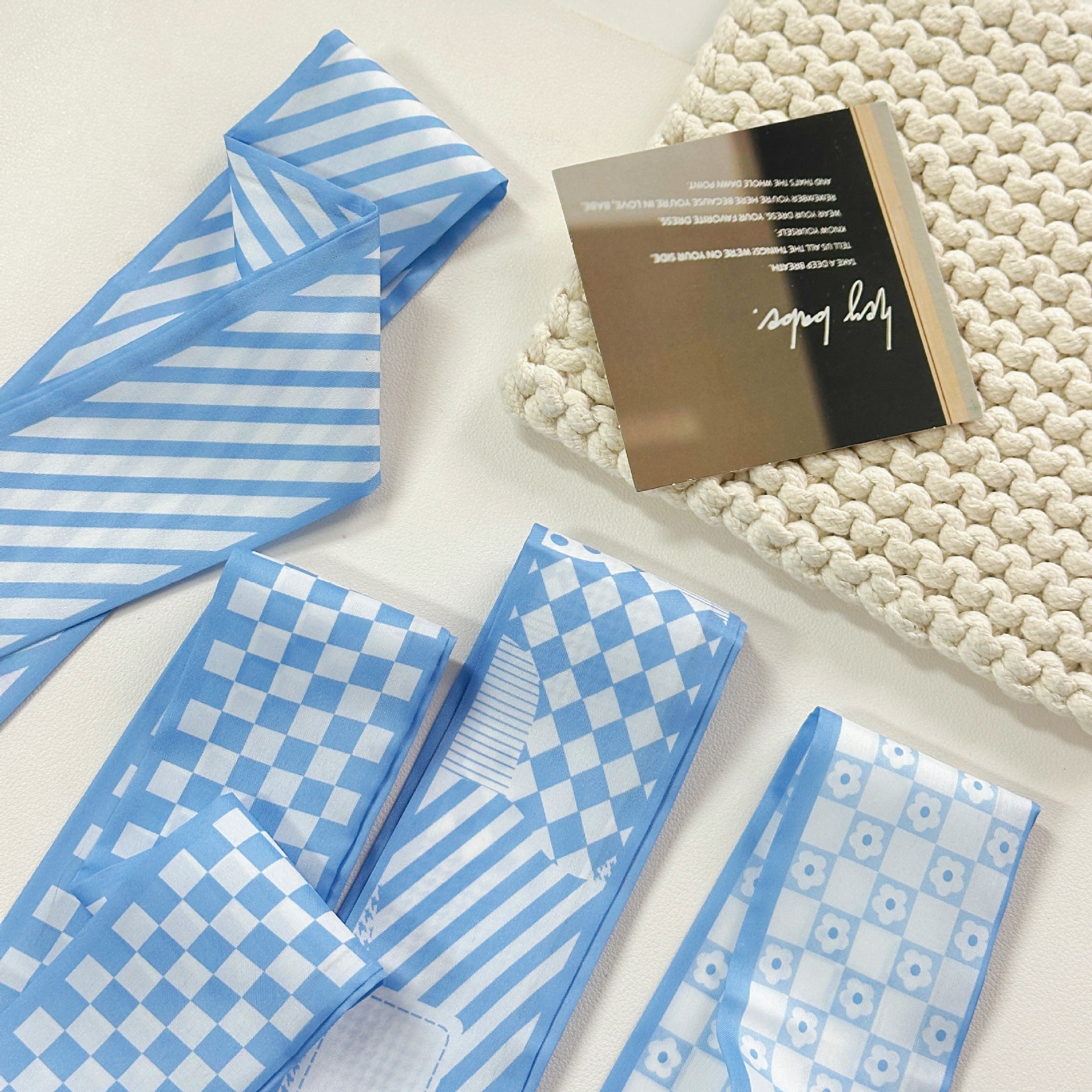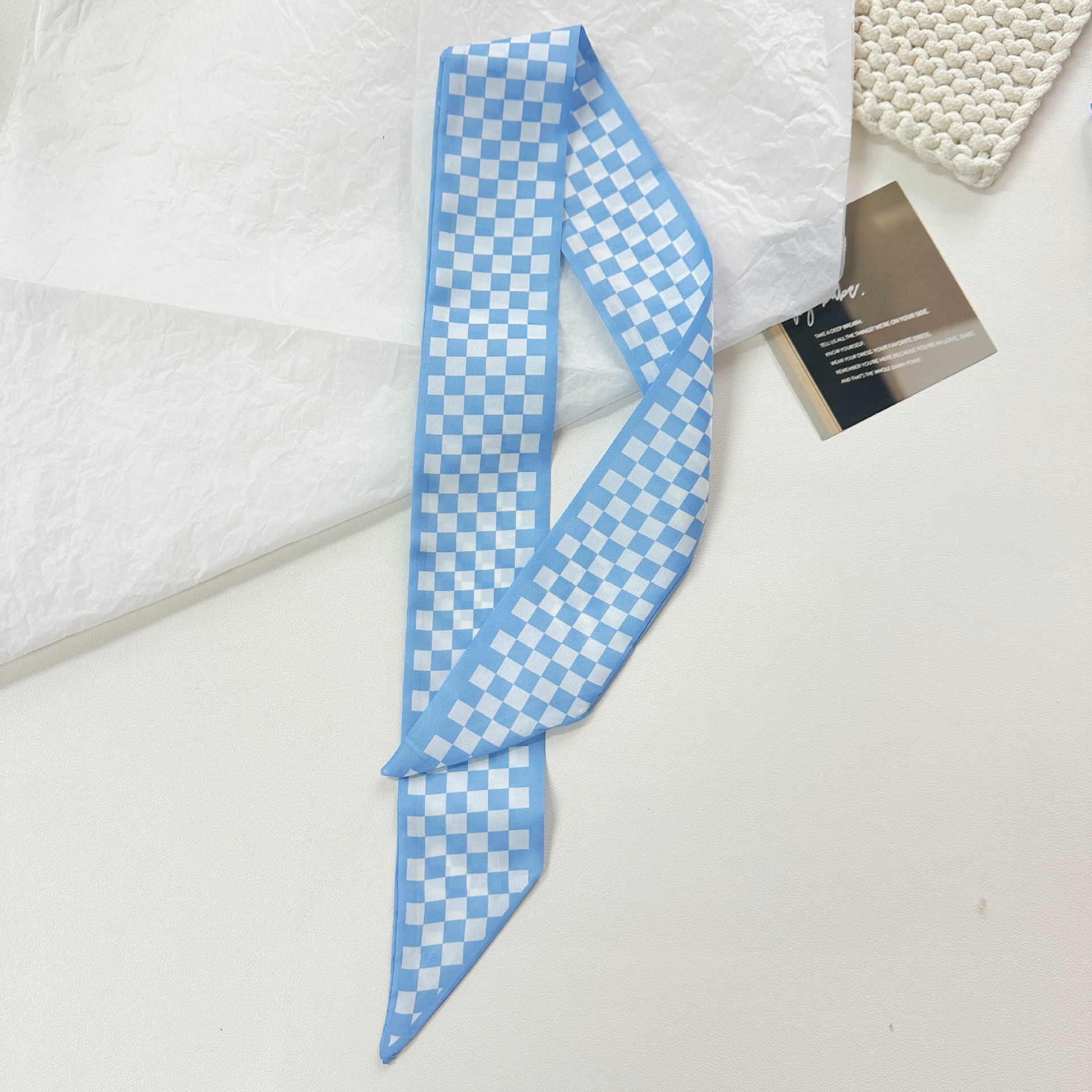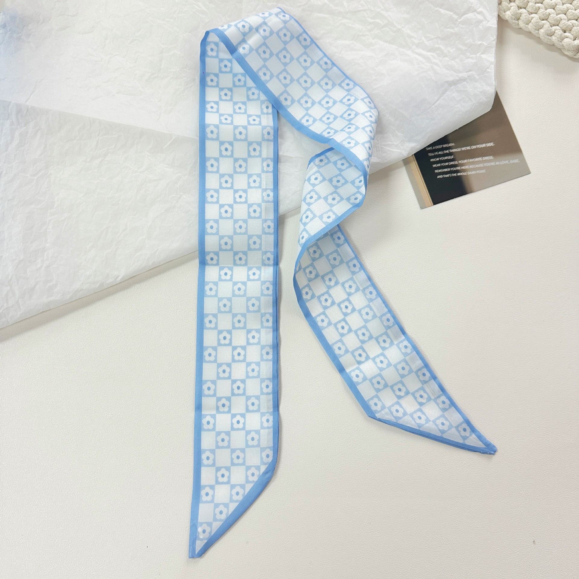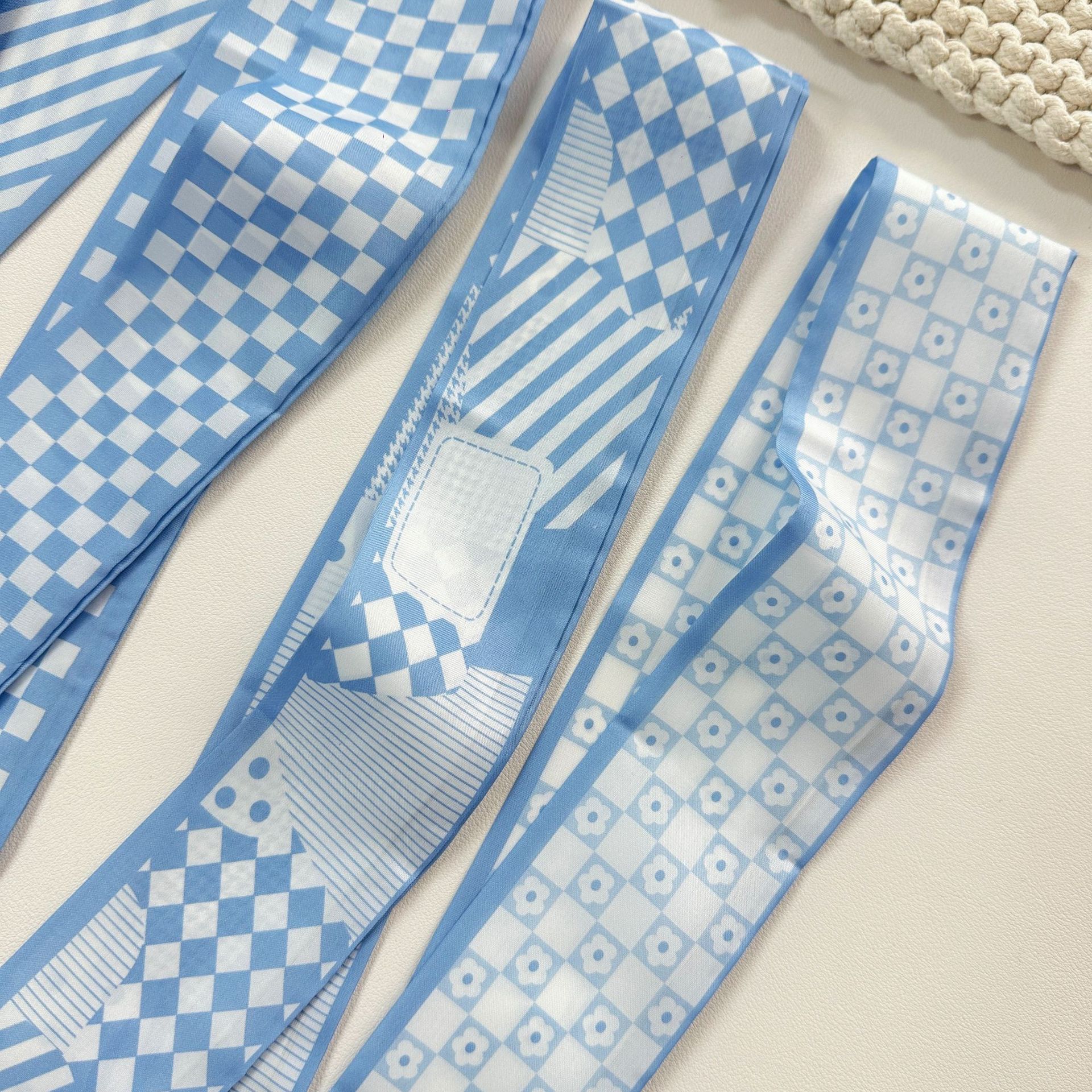 블루 심플하고 패셔너블한 실크 스카프와 셔츠, 출퇴근용 스카프, 장식용 긴 머리끈, 가방 리본 액세서리