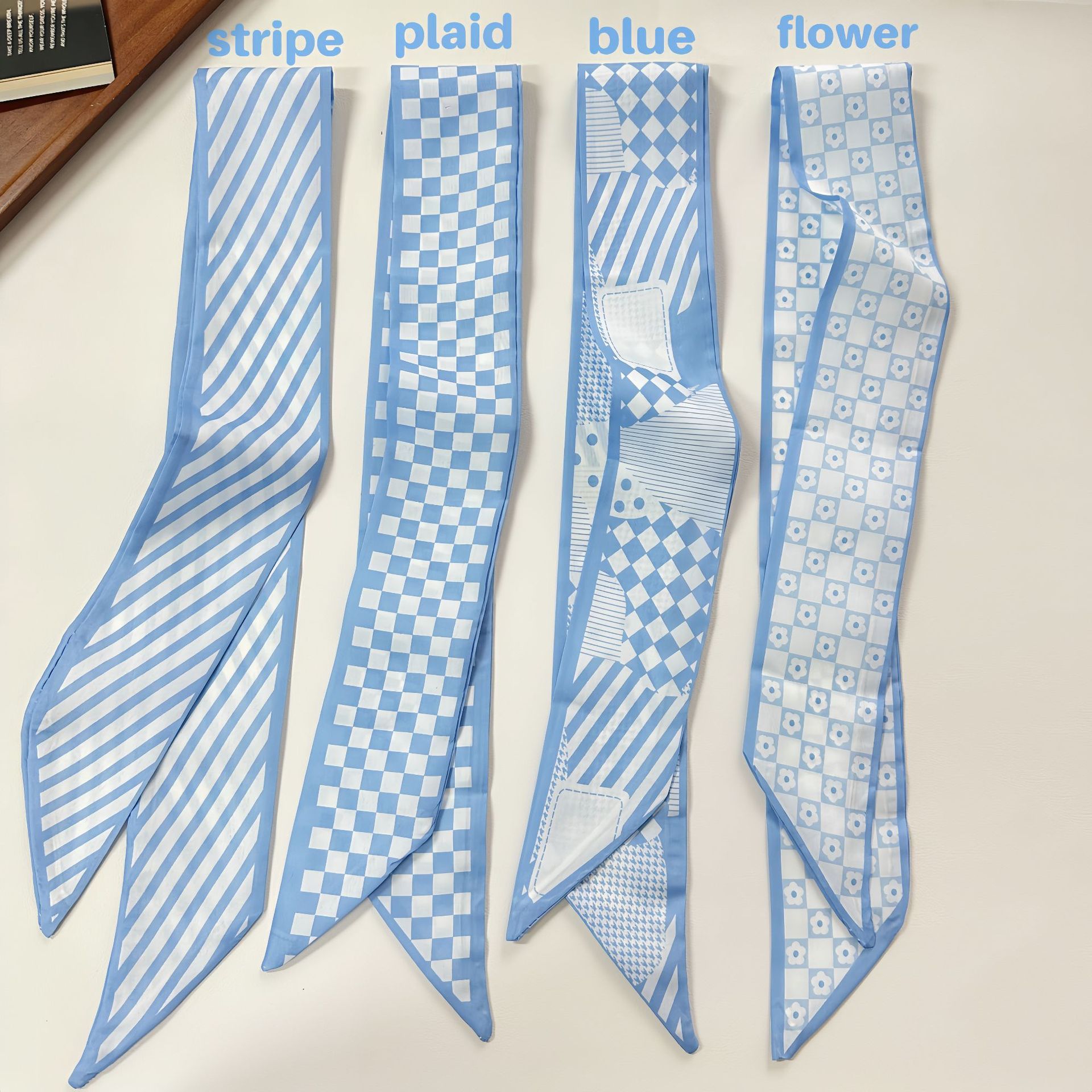 블루 심플하고 패셔너블한 실크 스카프와 셔츠, 출퇴근용 스카프, 장식용 긴 머리끈, 가방 리본 액세서리스토어 가기