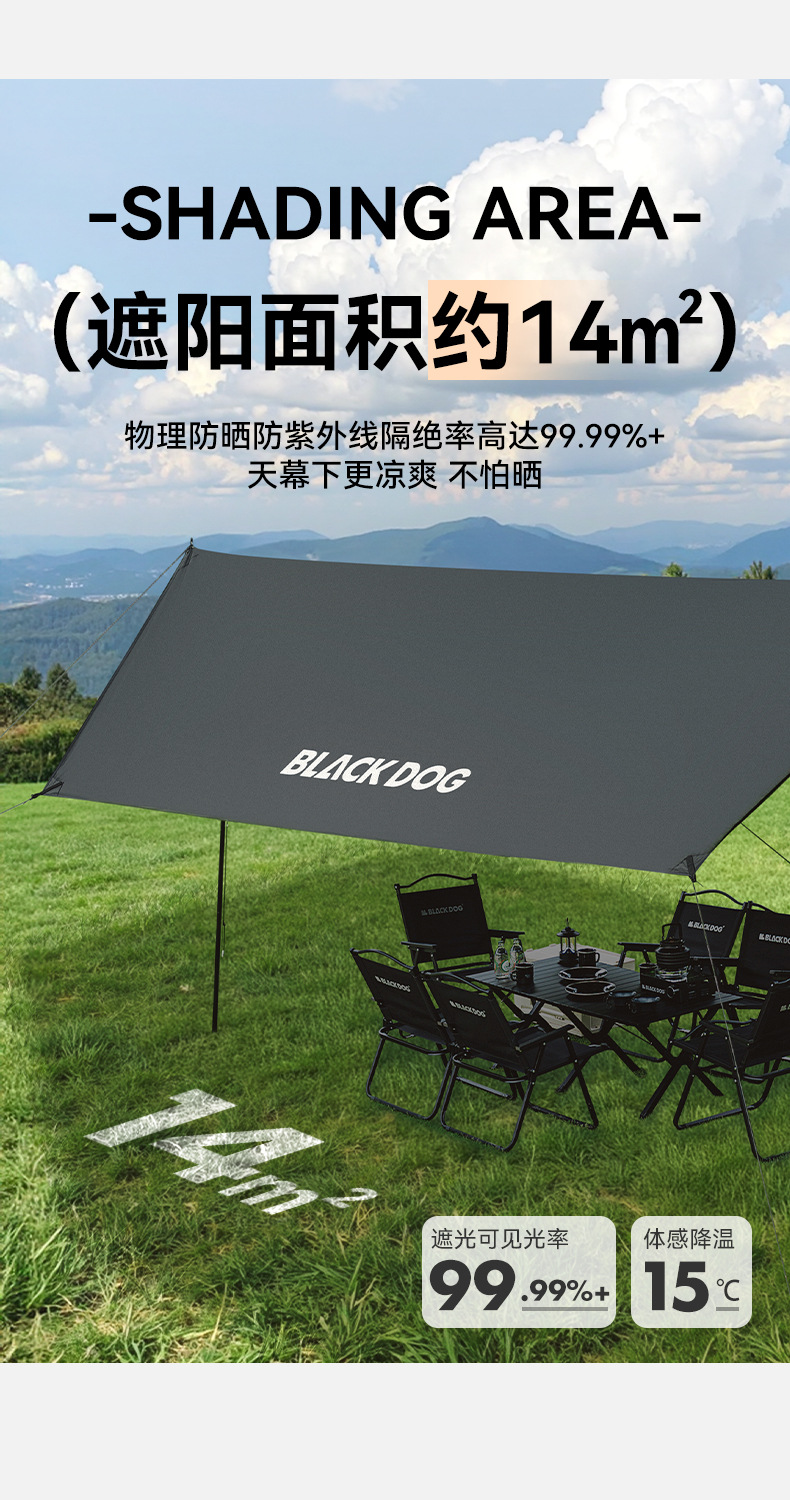 Blackdog 야외 비닐 캐노피 텐트 캠핑 양산 휴대용 태양 보호 코팅 캠핑 방수