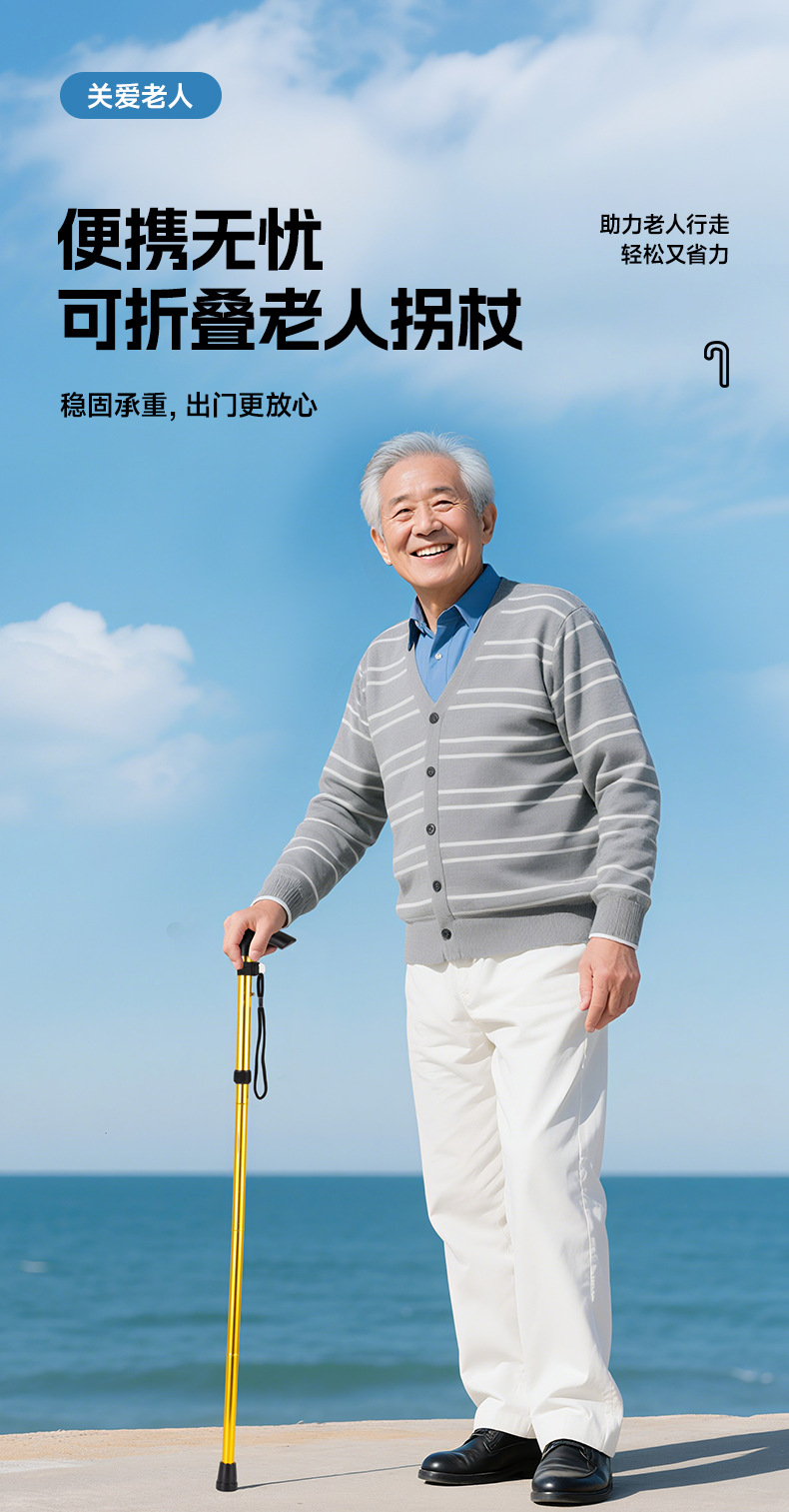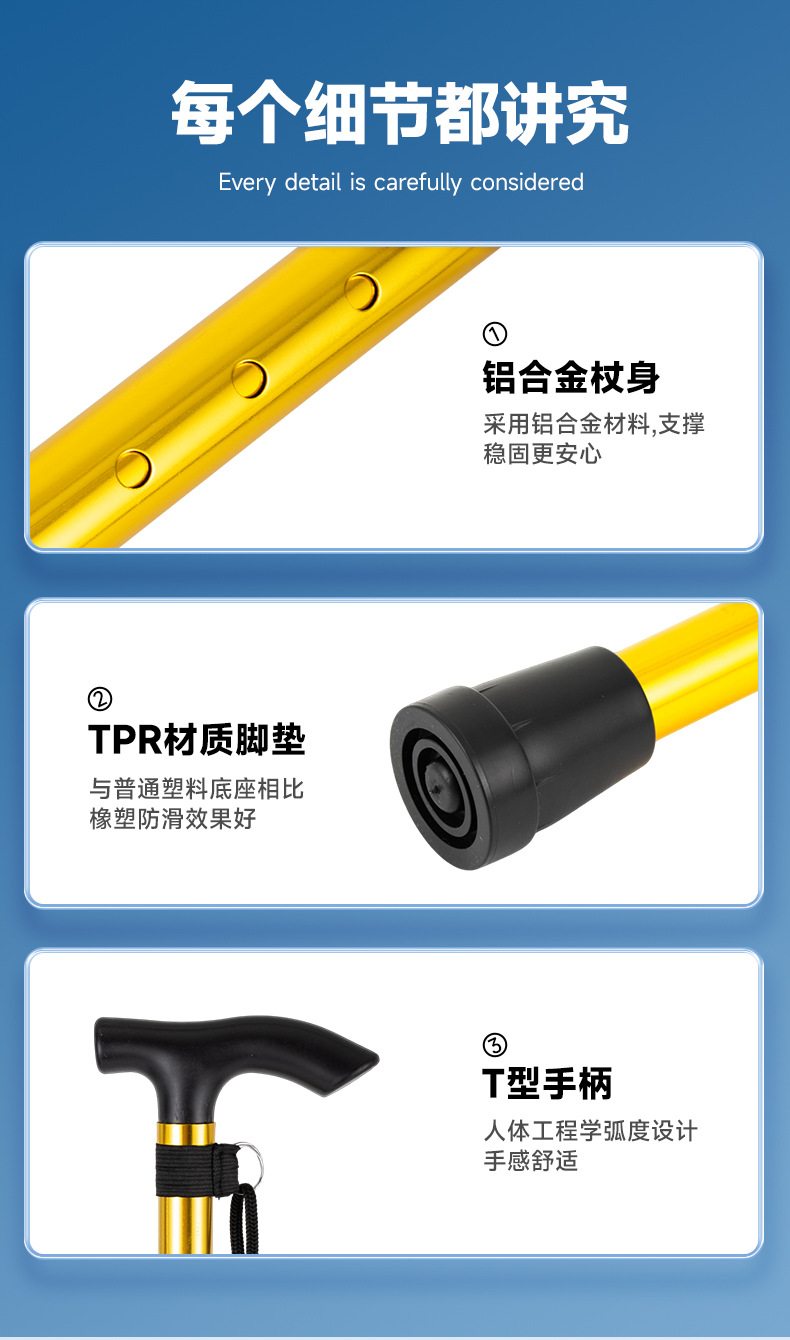 국경 간 접이식 지팡이 알루미늄 합금 등산 지팡이 5단 조절식 미끄럼 방지 노인 지팡이 보행 보조 장치스토어 가기
