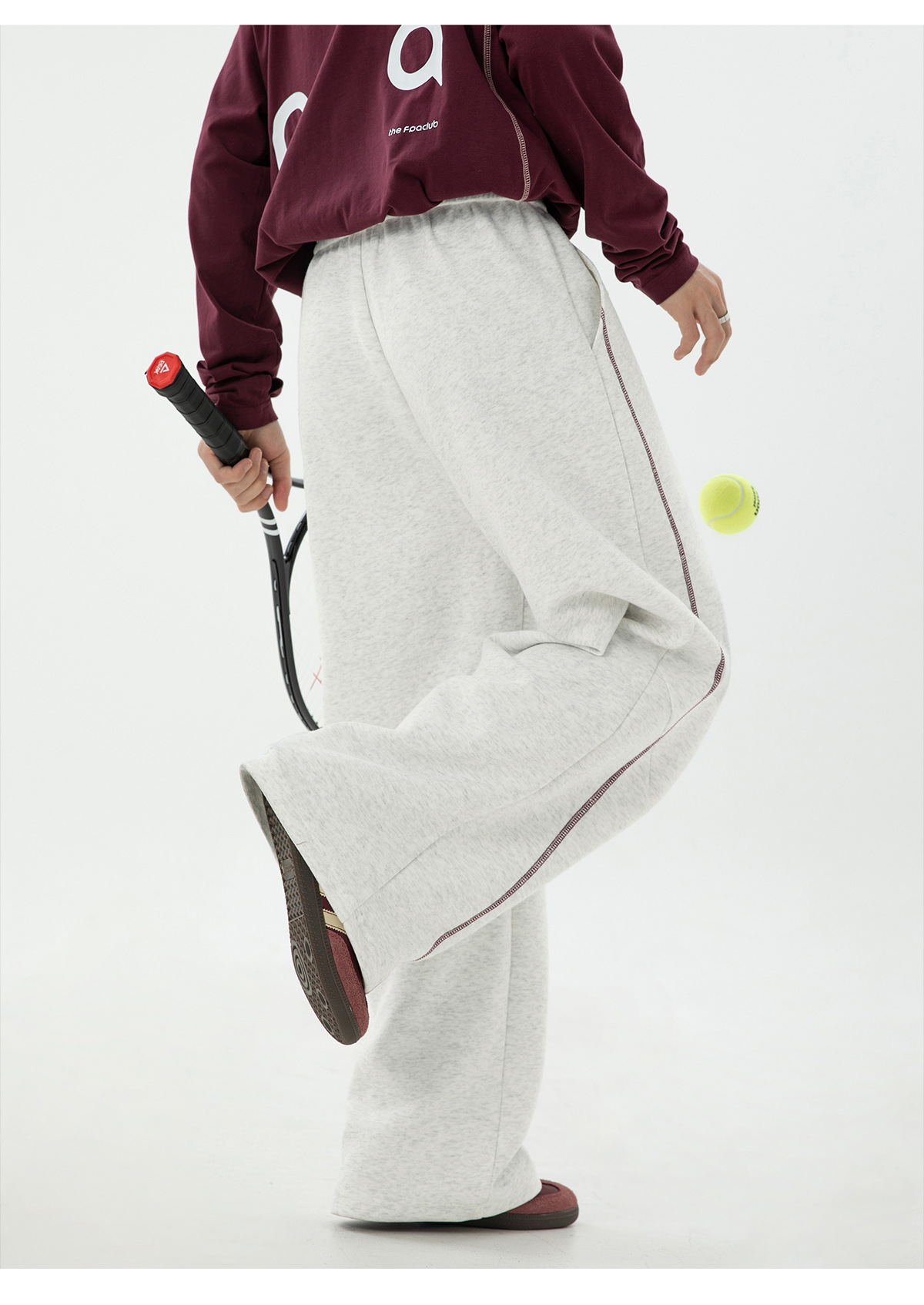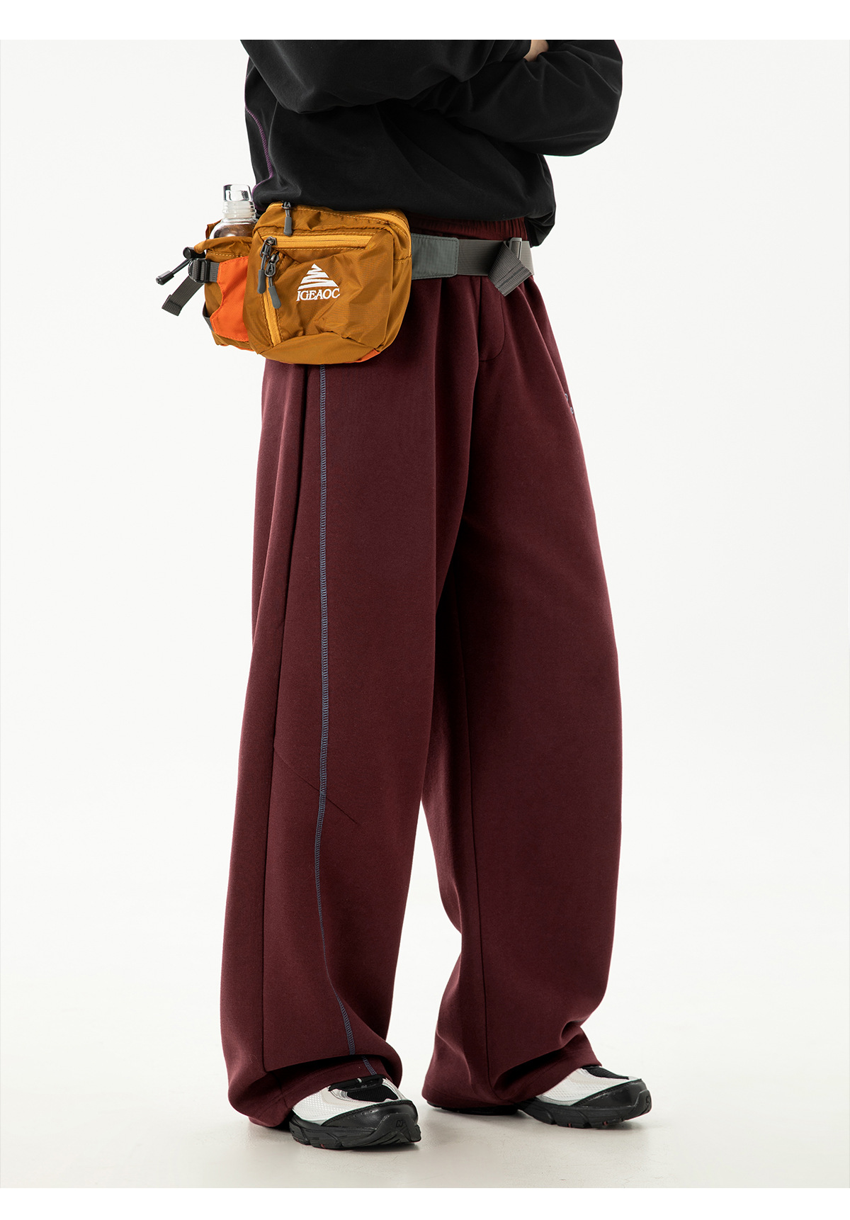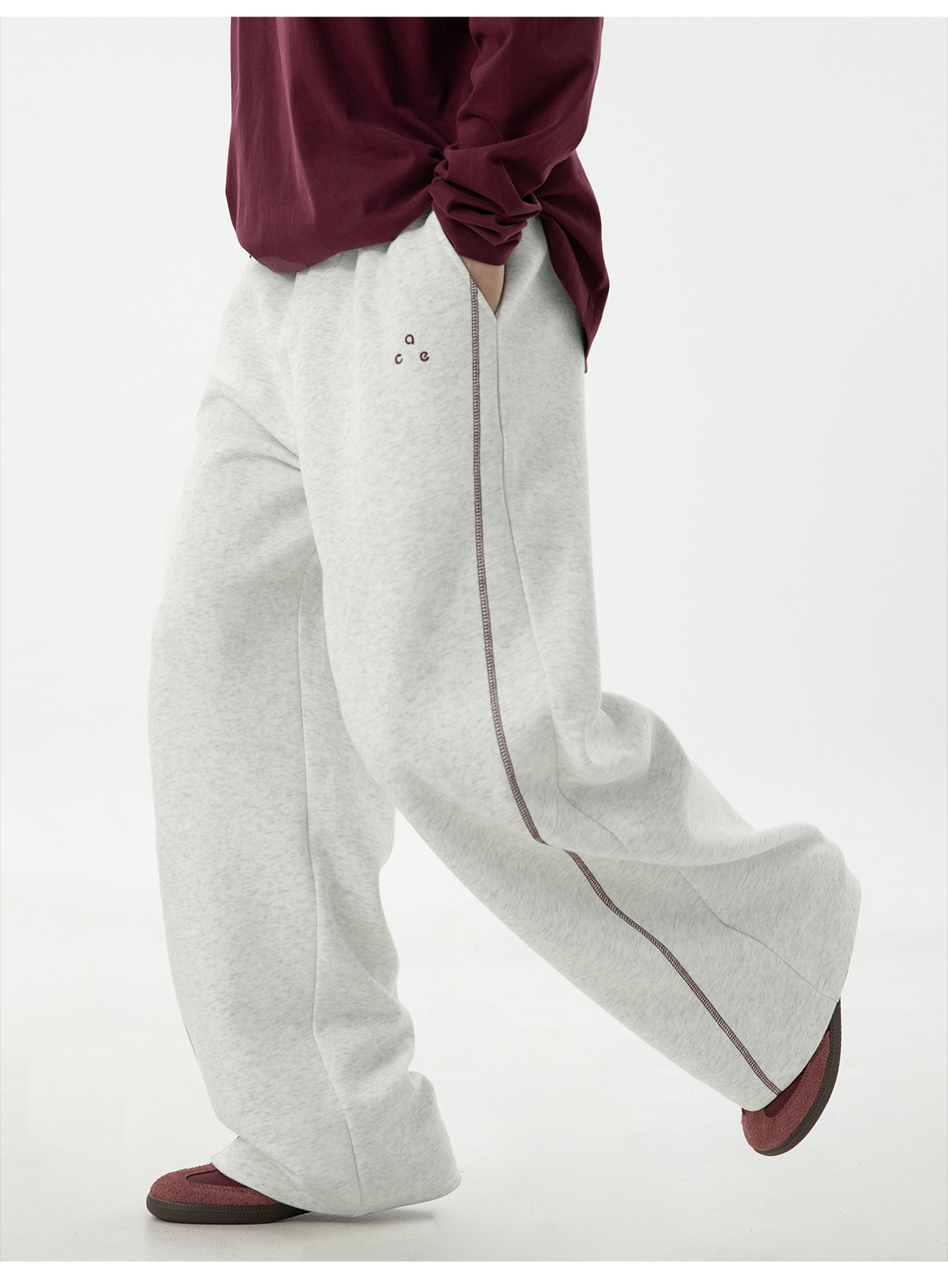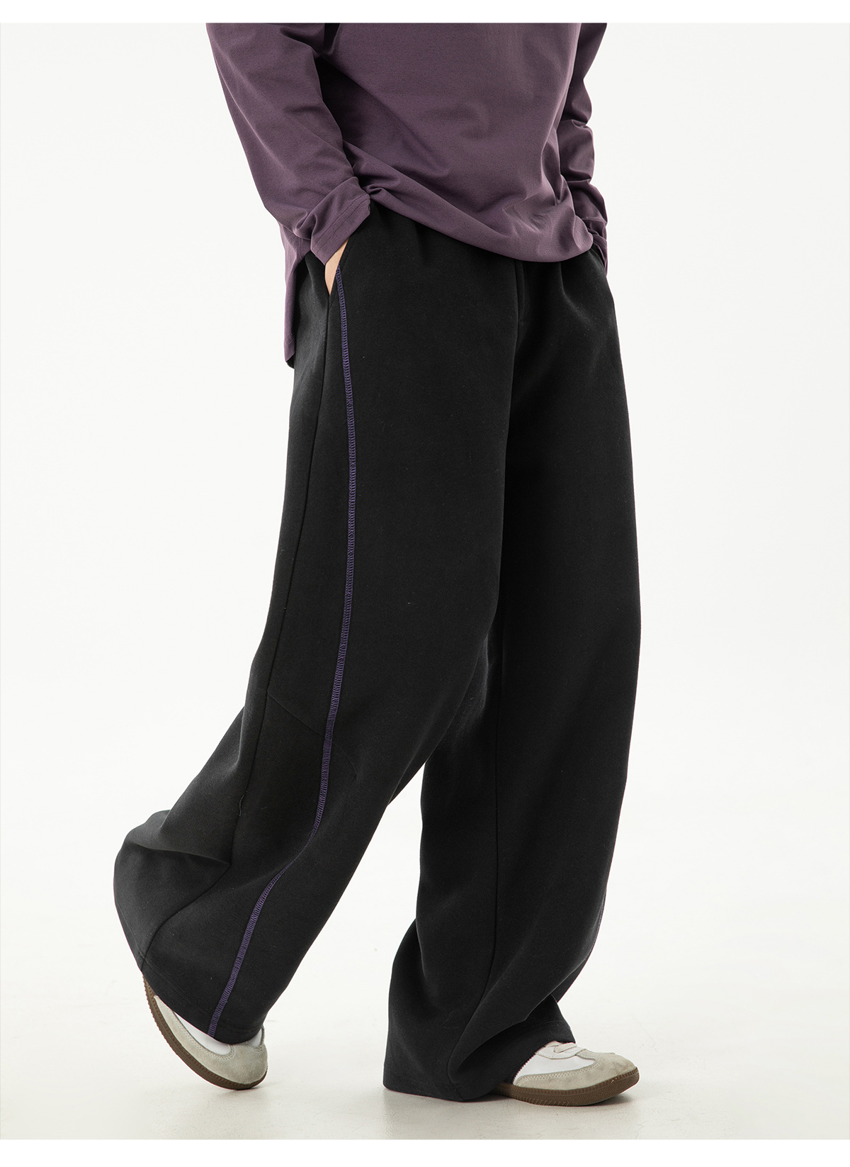 가을 남성용 헤비웨이트 콘트라스트 컬러 탑스티치 캐주얼 팬츠, 스트레이트 레그 루즈한 질감의 롱 팬츠, 트렌디한 스포츠 팬츠