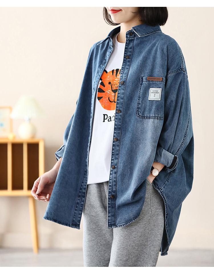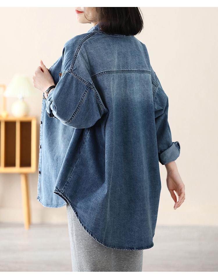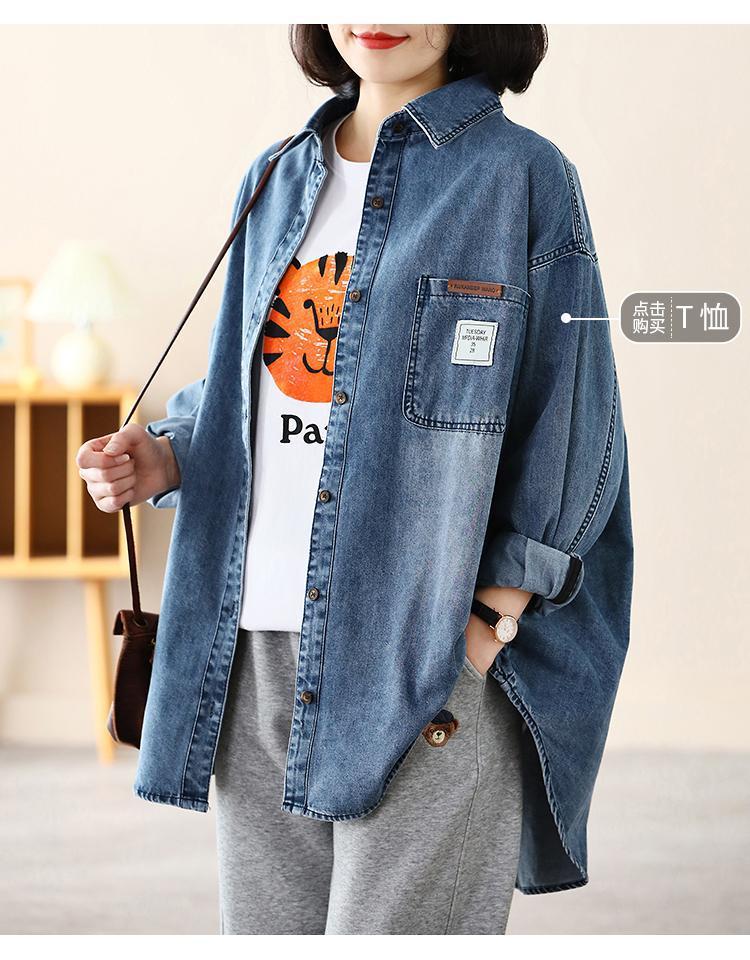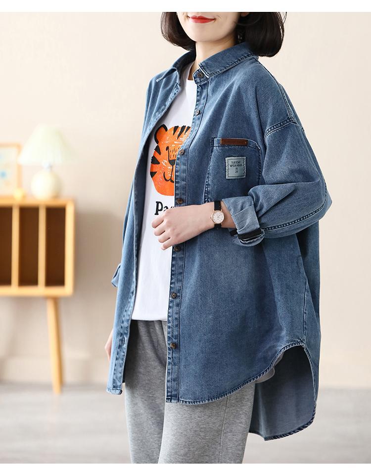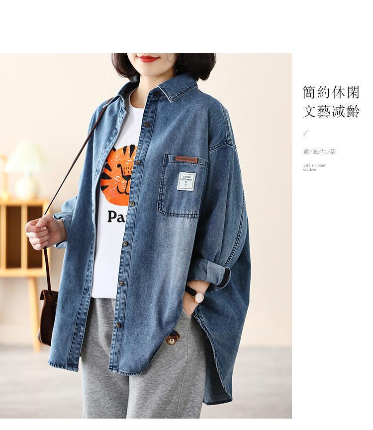 중년 및 노인 여성 셔츠 여성 봄, 가을 캐주얼 루즈한 뚱뚱한 대형 데님 셔츠 재킷 탑