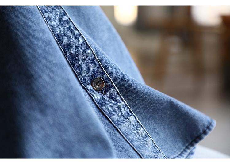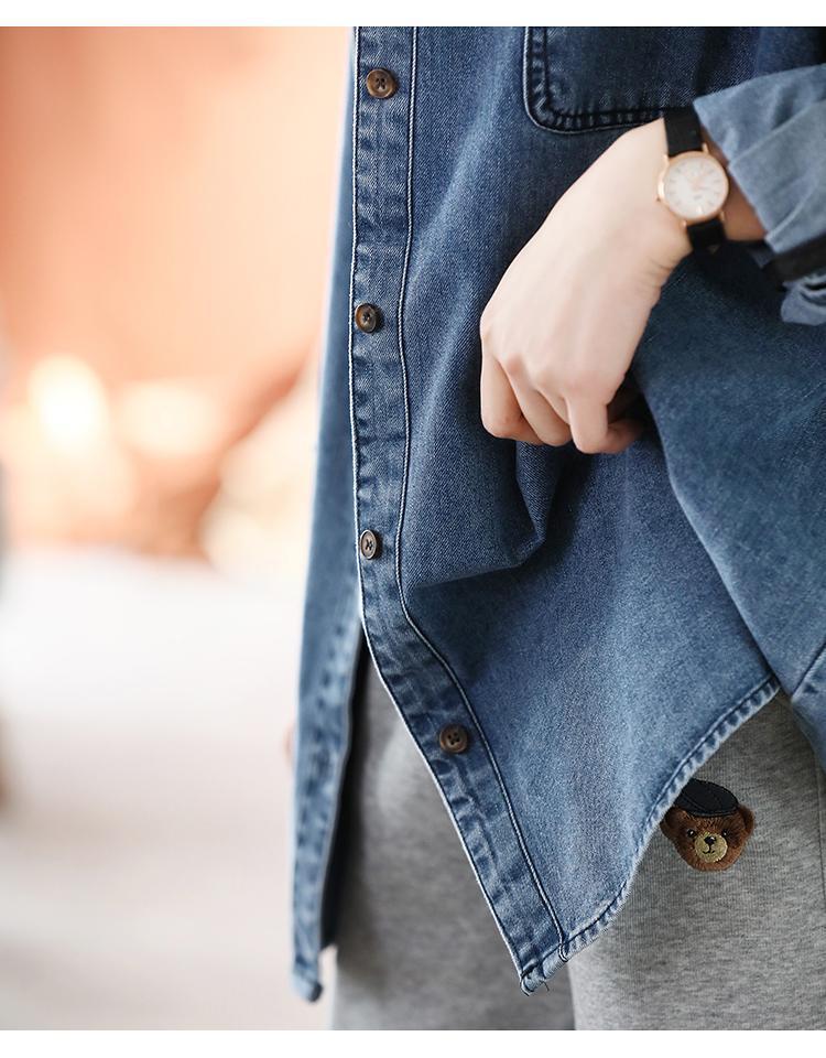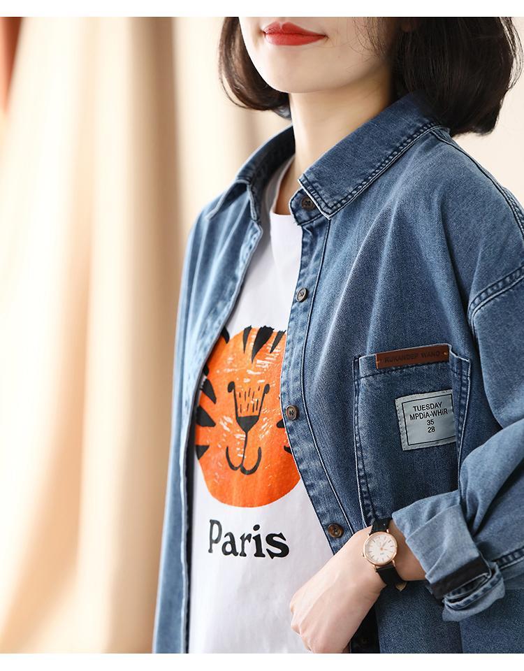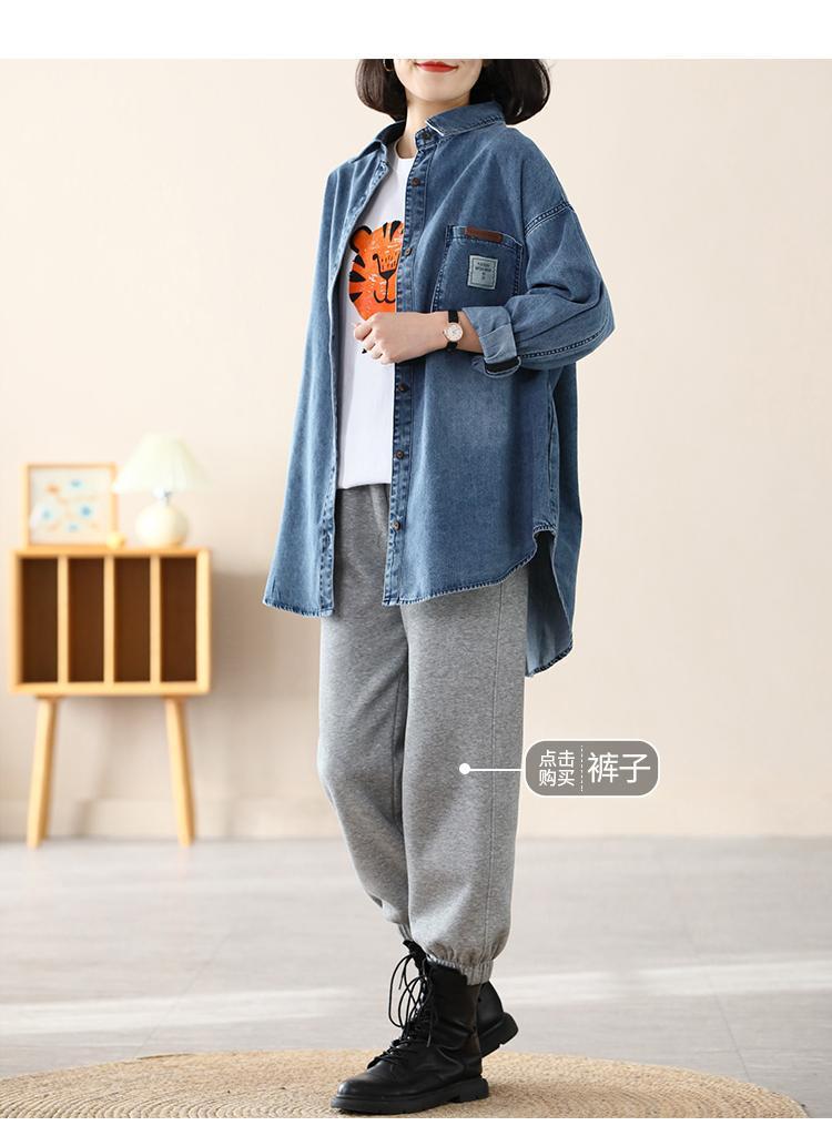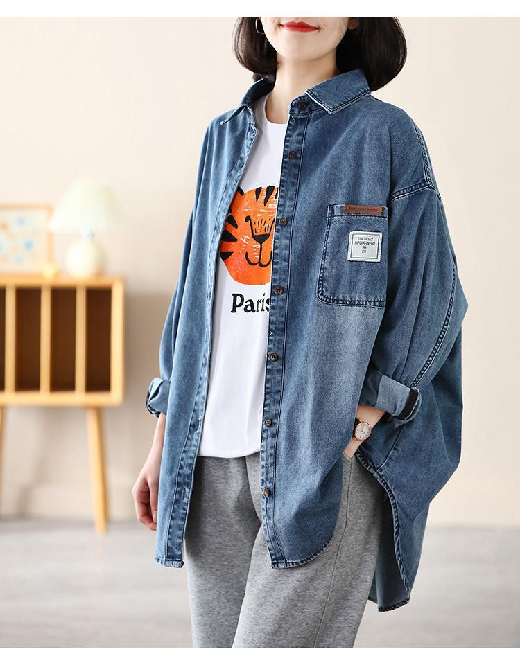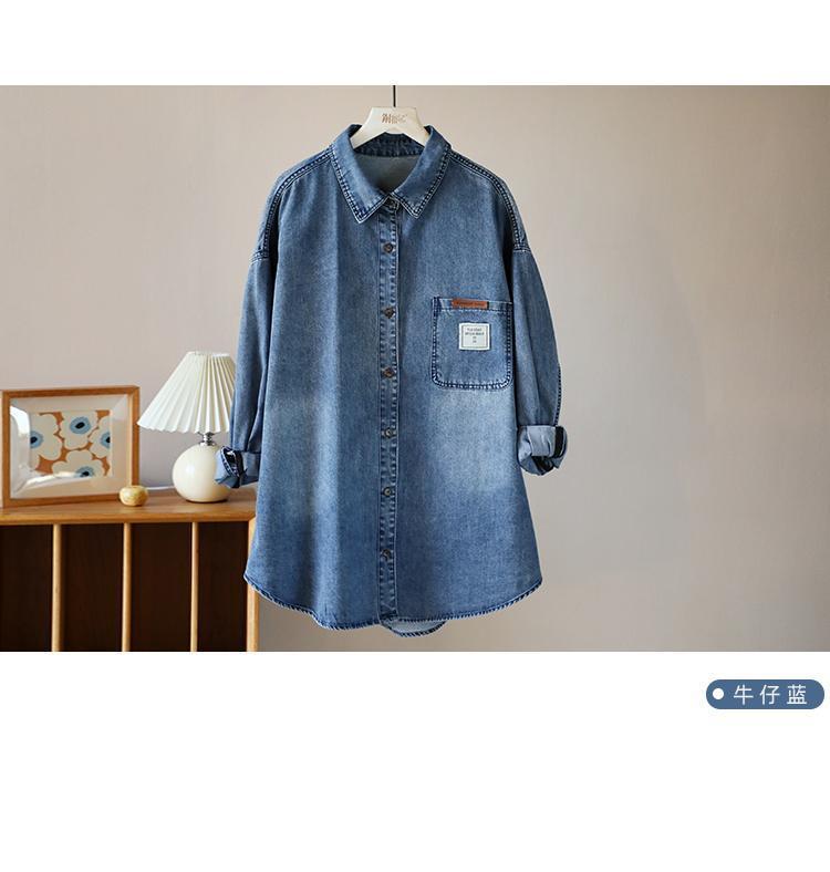 중년 및 노인 여성 셔츠 여성 봄, 가을 캐주얼 루즈한 뚱뚱한 대형 데님 셔츠 재킷 탑