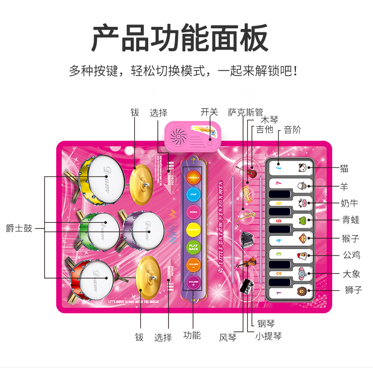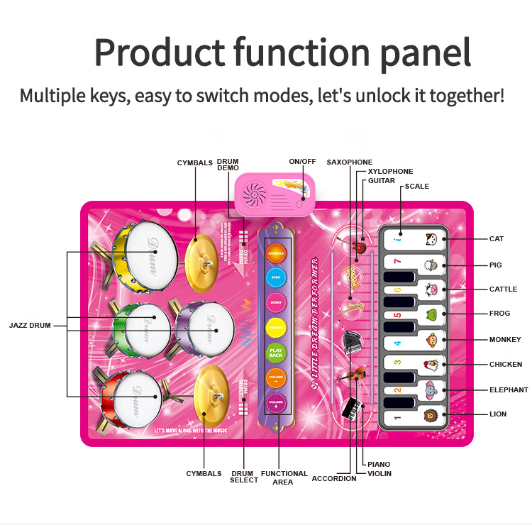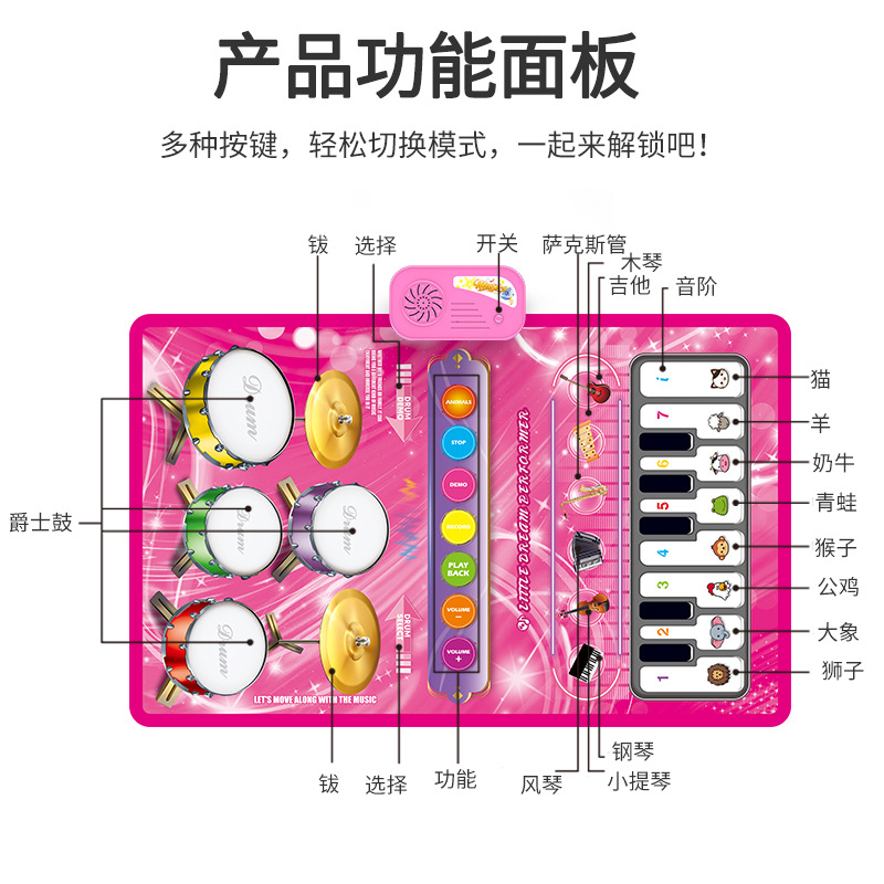 • 3-in-1 피아노 패드 - (6개 악기 전환, 재즈 드럼, 동물 소리) 2222-1