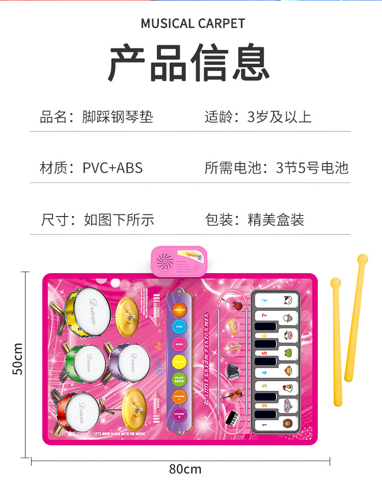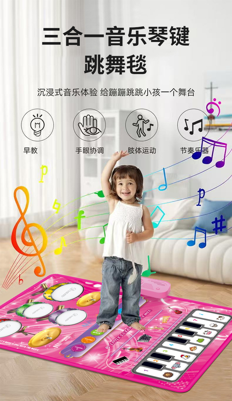 새로운 3-in-one 다기능 키 댄스 매트 어린이 게임 매트 페달 전자 키보드 매트 라이트 음악 장난감스토어 가기