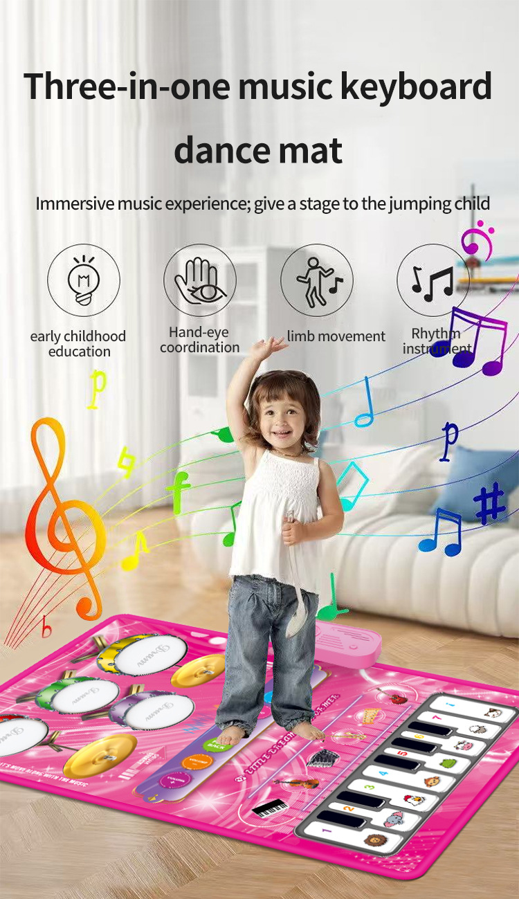 새로운 3-in-one 다기능 키 댄스 매트 어린이 게임 매트 페달 전자 키보드 매트 라이트 음악 장난감