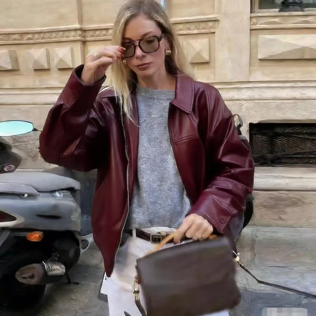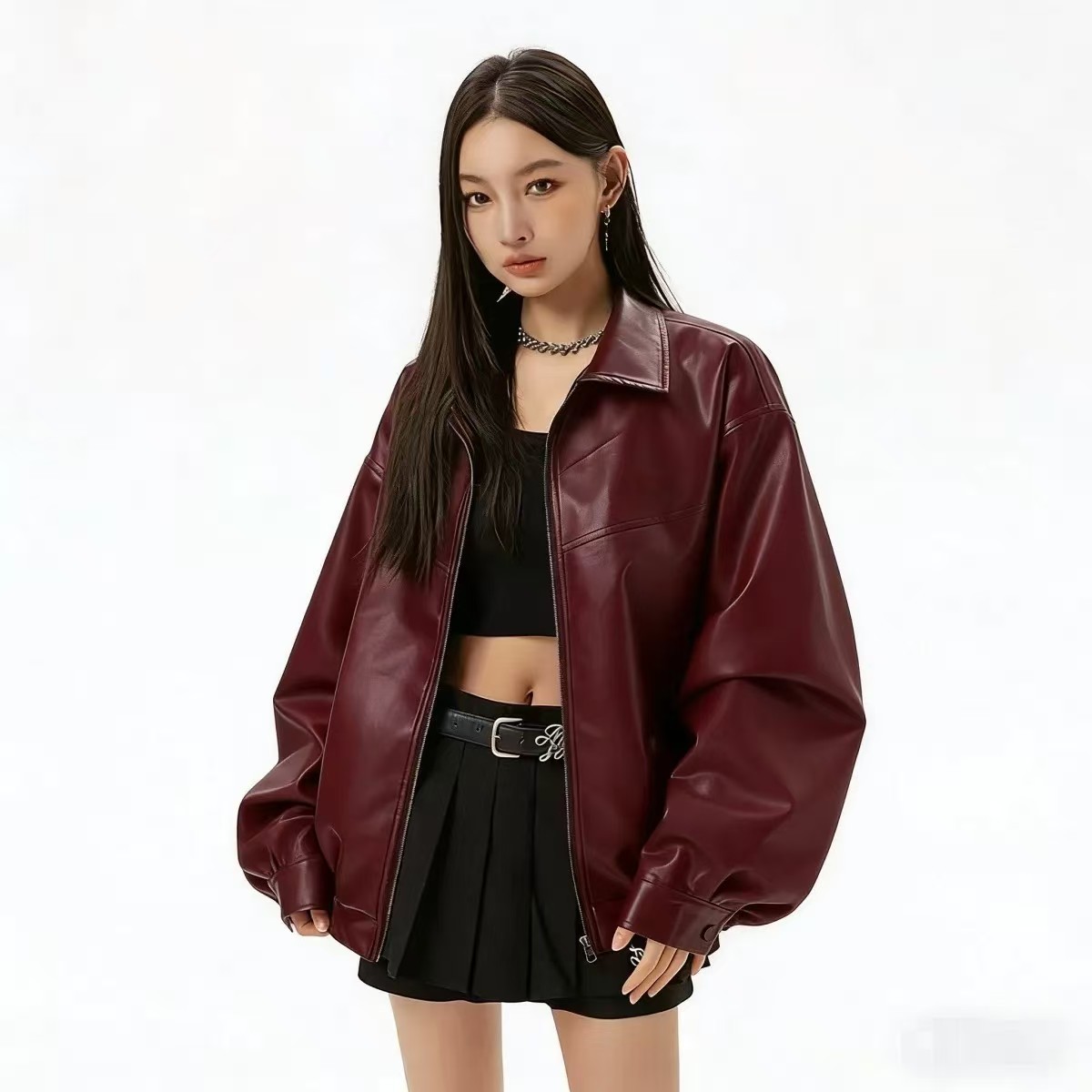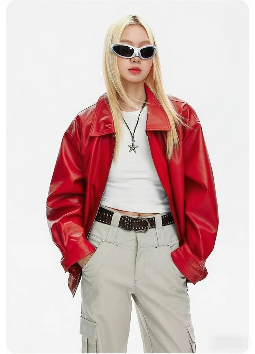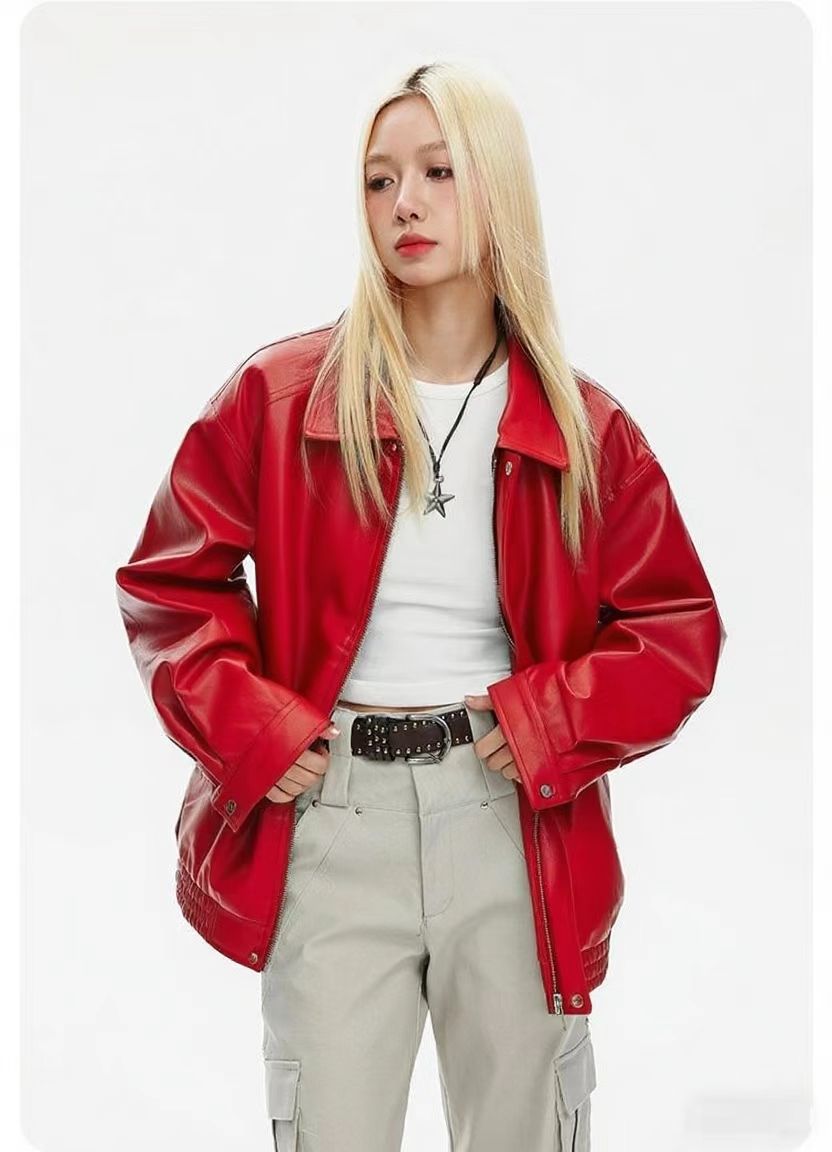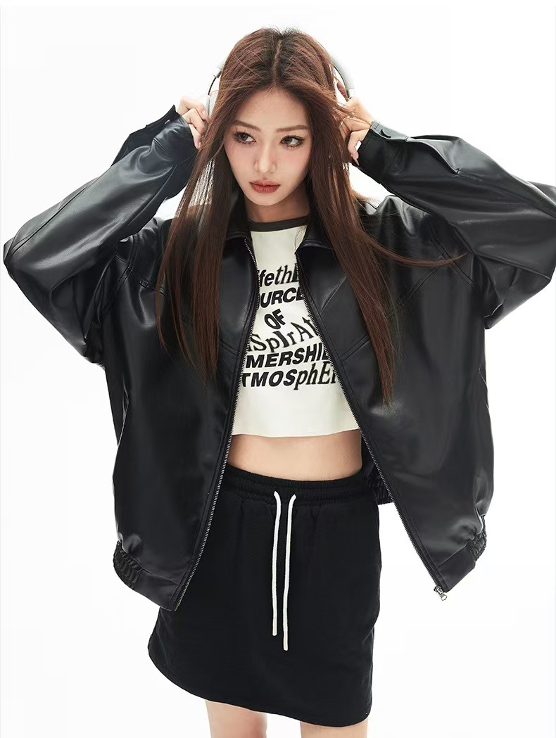 2025 봄 패션 트렌드 루즈한 젊은 여성 재킷 일본 복고풍 다용도 라펠 대형 여성 가죽 재킷