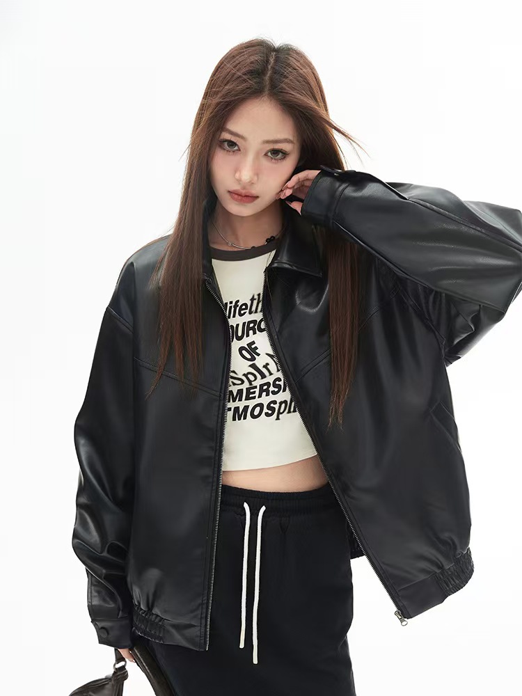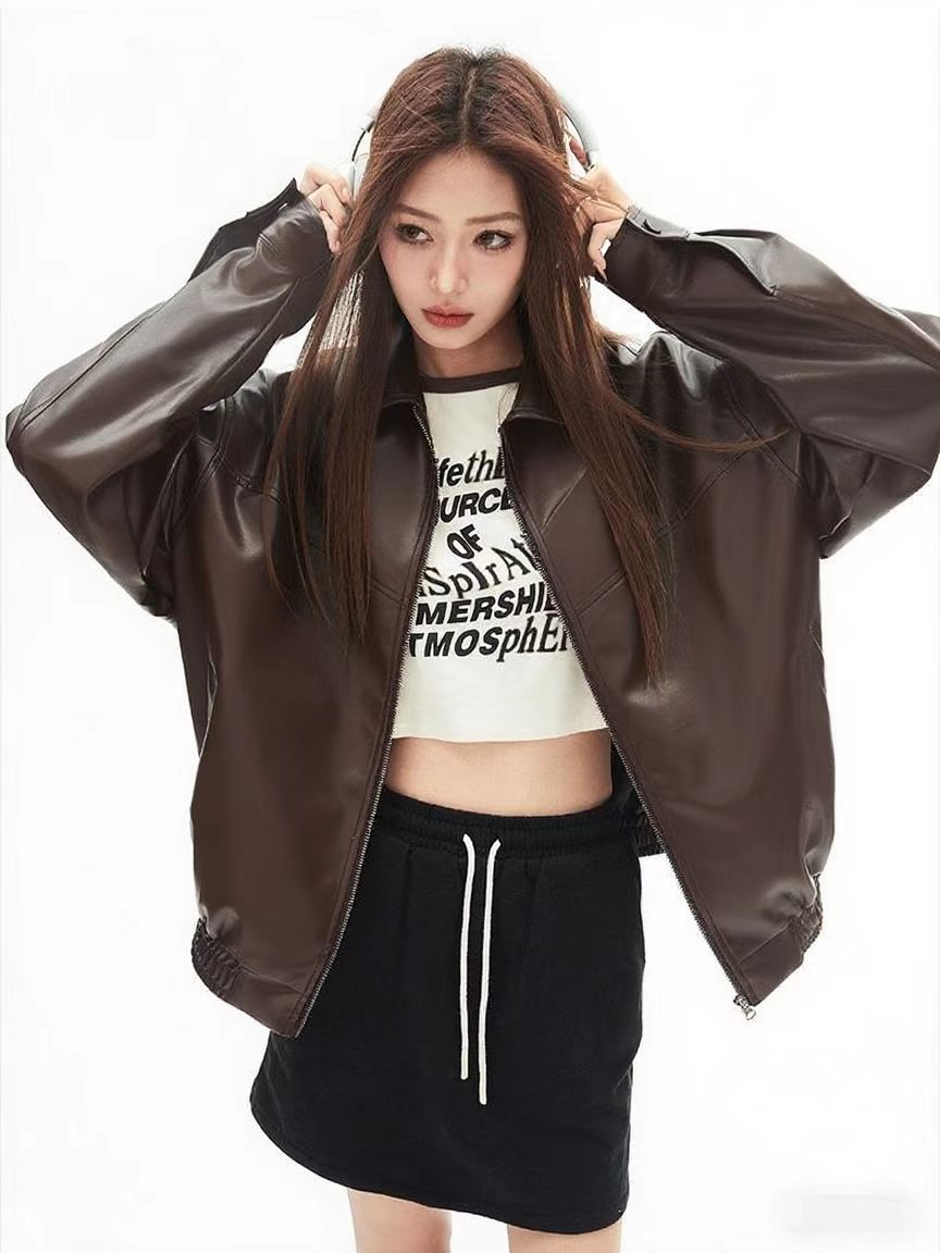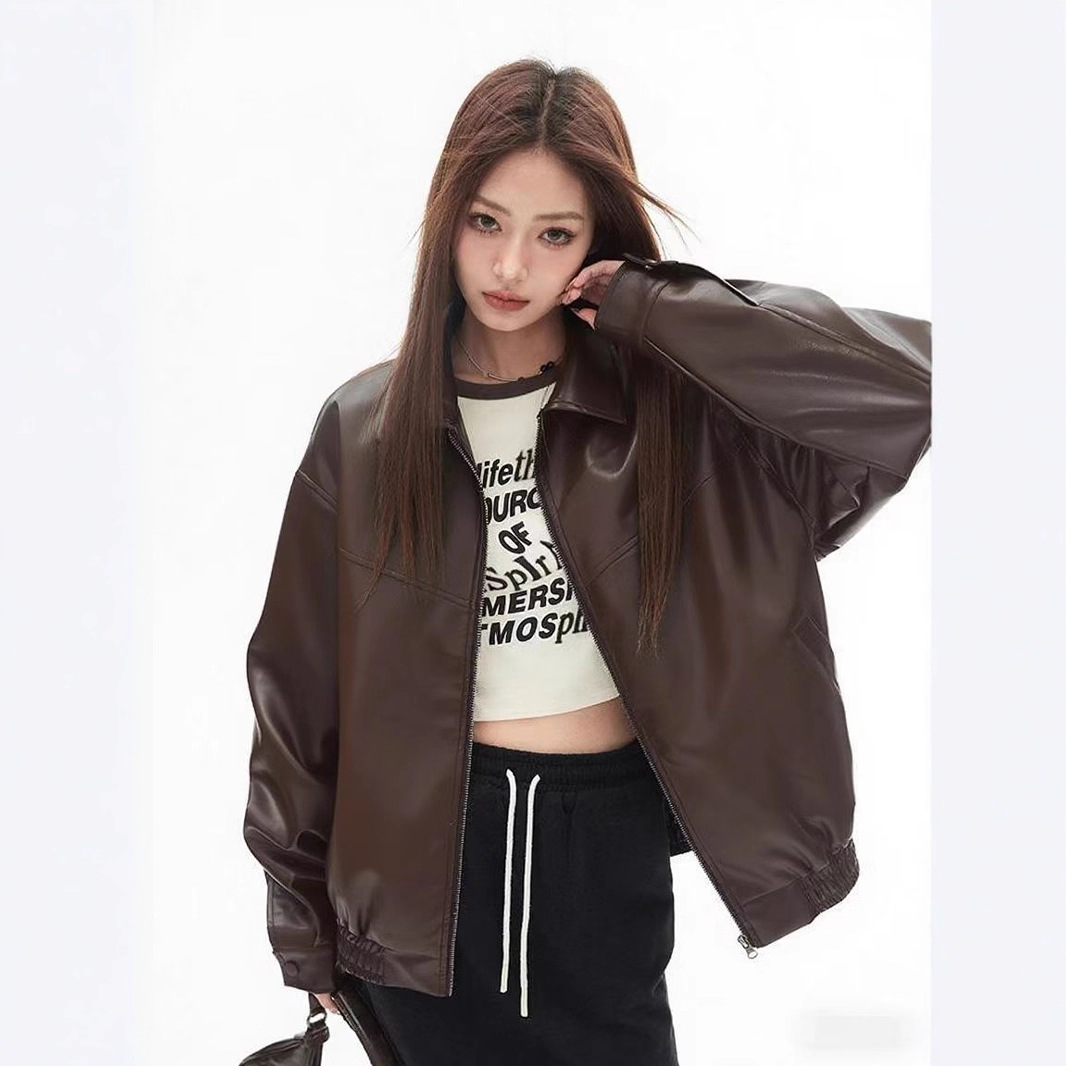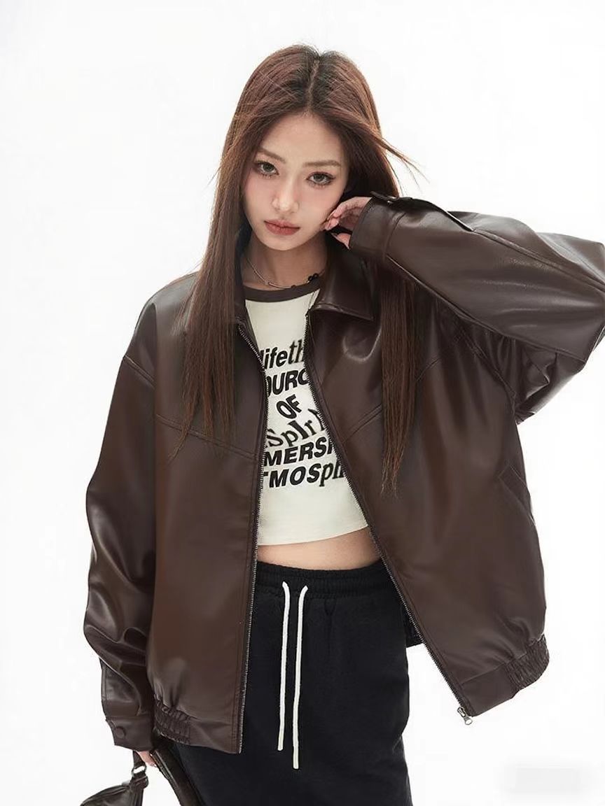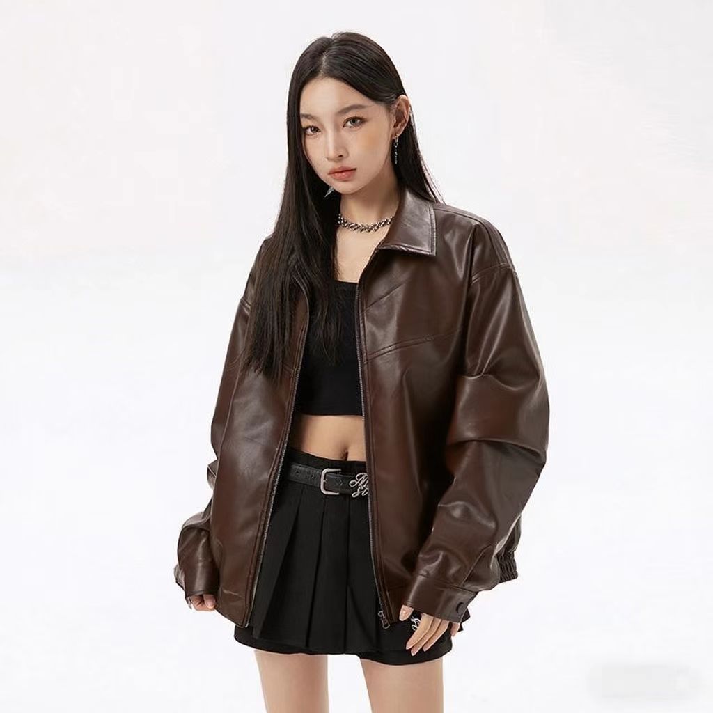 2025 봄 패션 트렌드 루즈한 젊은 여성 재킷 일본 복고풍 다용도 라펠 대형 여성 가죽 재킷스토어 가기