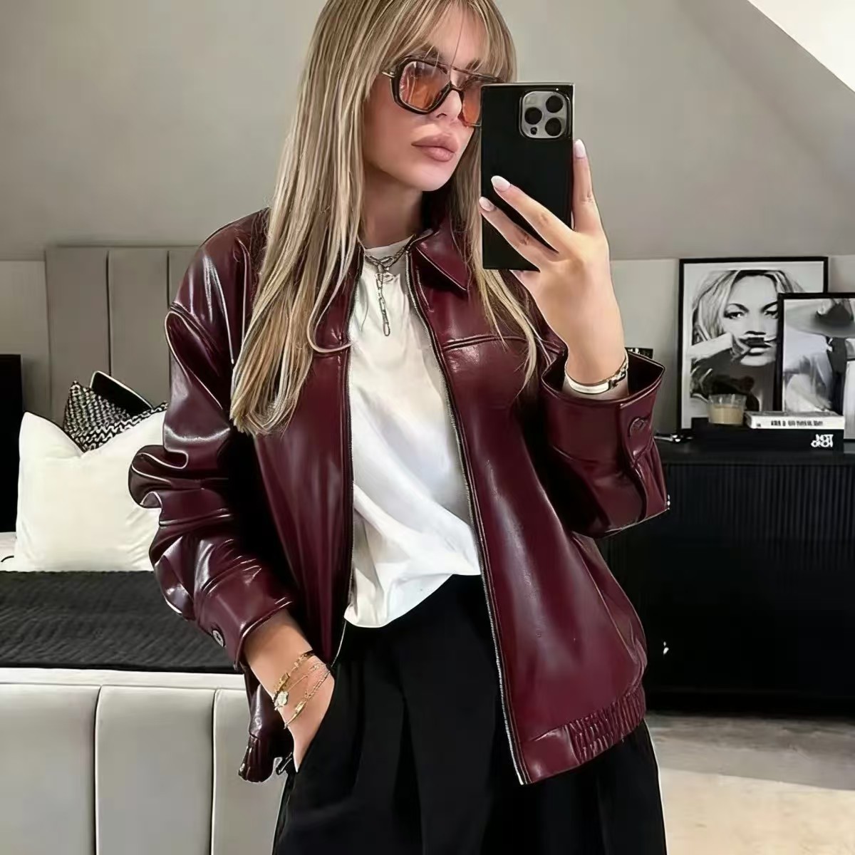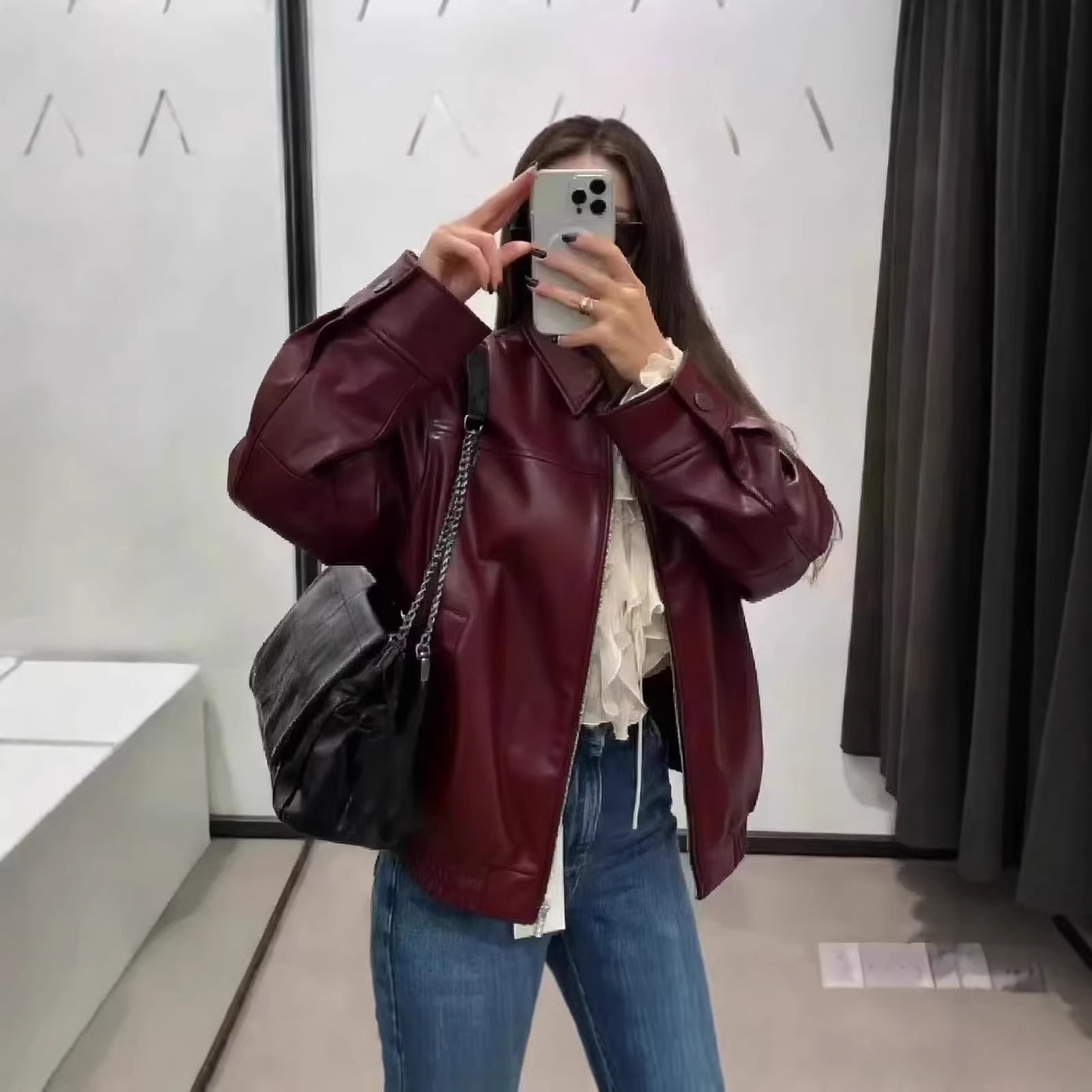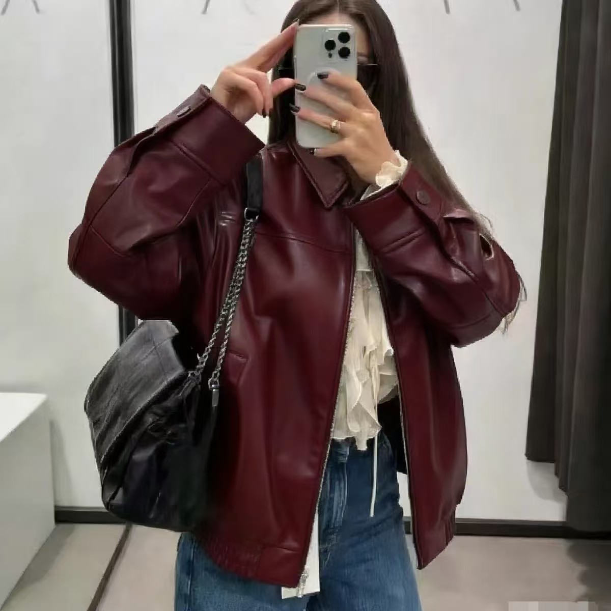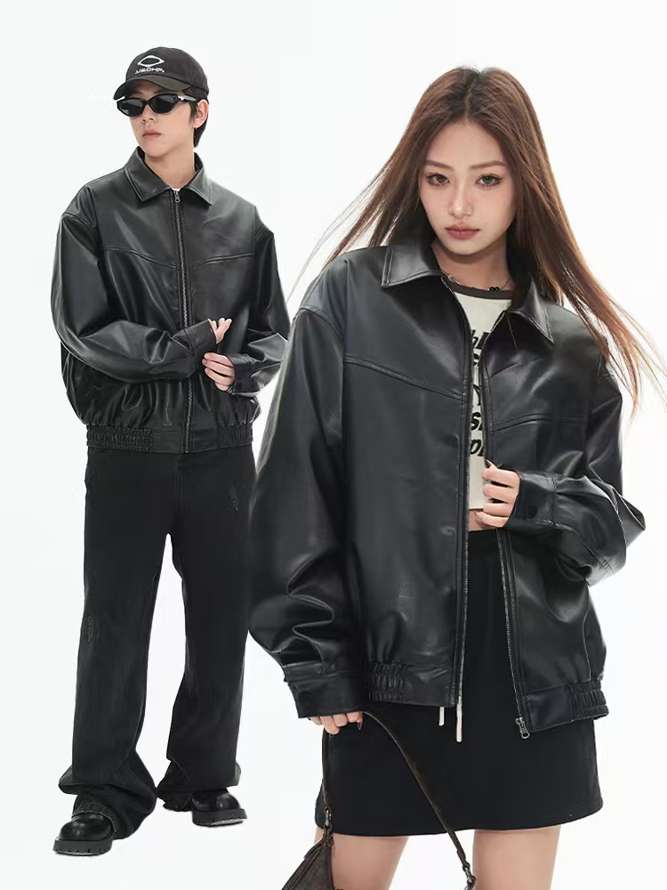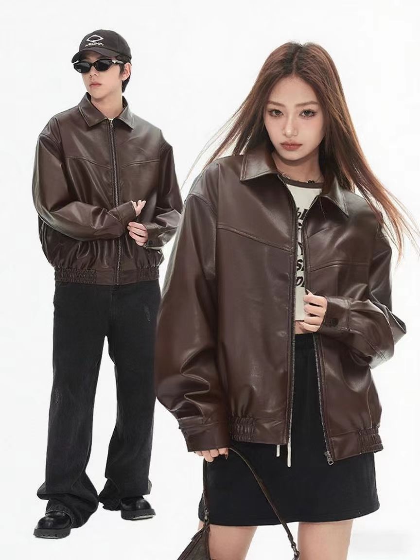 2025 봄 패션 트렌드 루즈한 젊은 여성 재킷 일본 복고풍 다용도 라펠 대형 여성 가죽 재킷스토어 가기