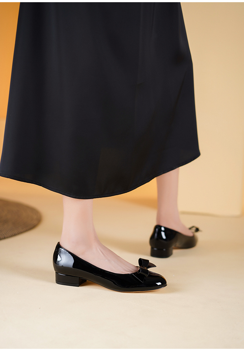 발이 피곤하지 않은 여성용 누드 하이힐 2025 신형 내부 높이 조절 낮은 굽 두꺼운 굽 둥근 발가락 리본매듭 여성용 펌프스