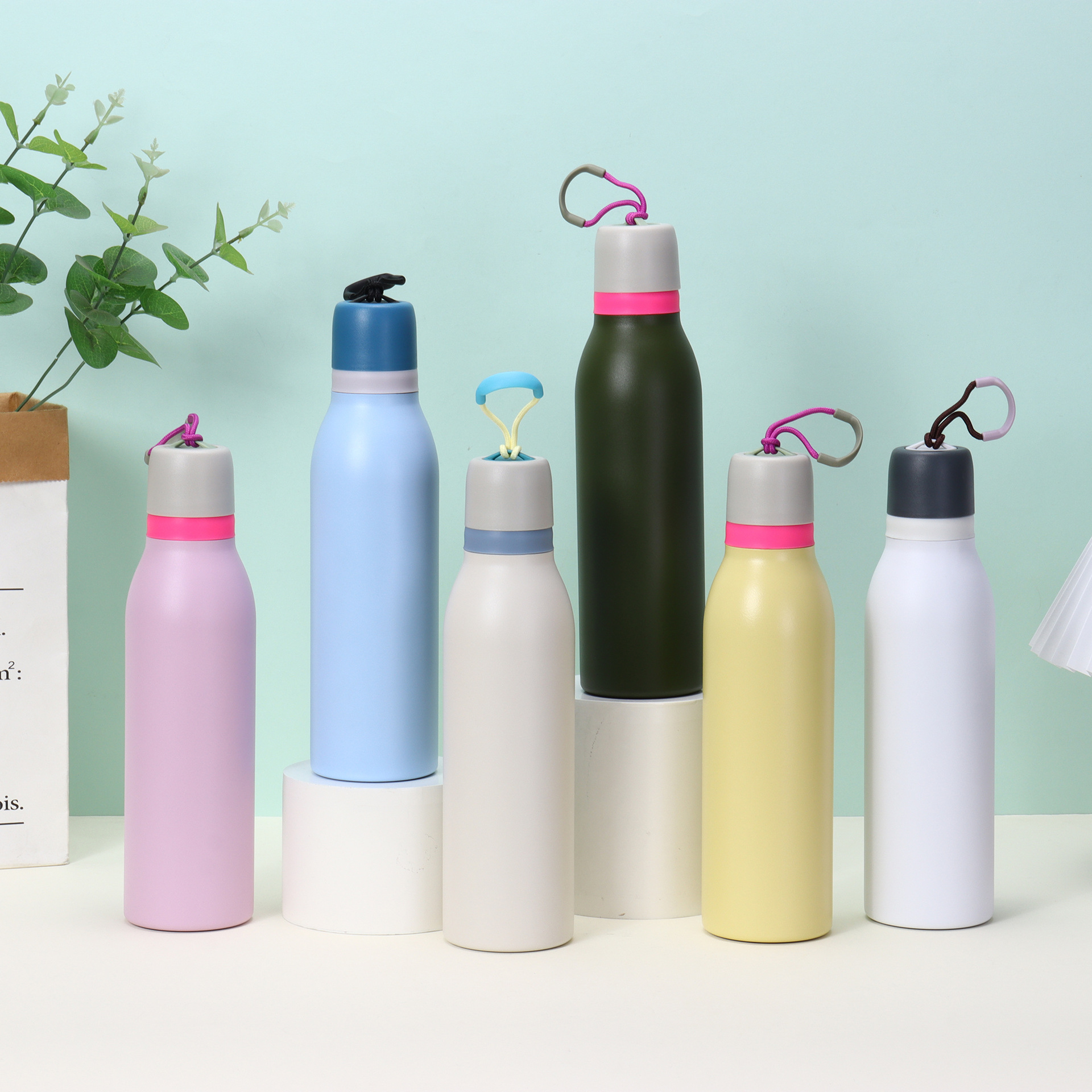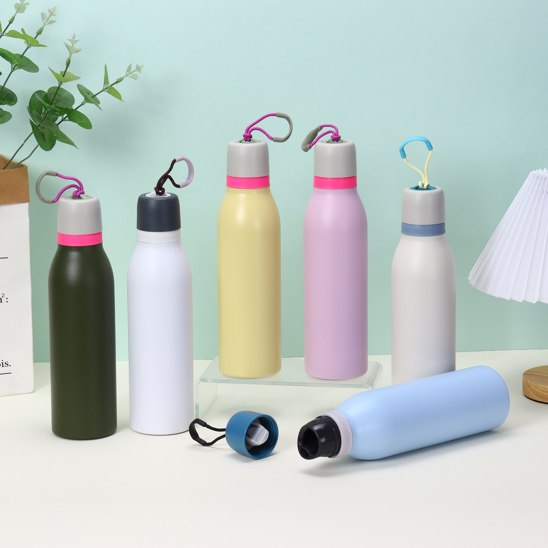 국경을 넘는 동일한 스타일의 보온병 304 스테인리스 손잡이 이중 음용 스포츠 물병 휴대용 등산 여행용 물병 도매