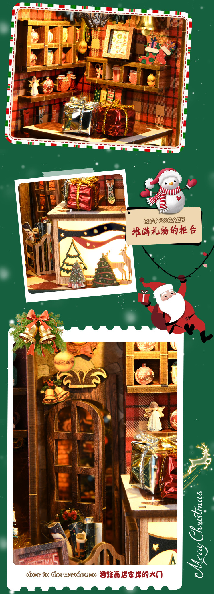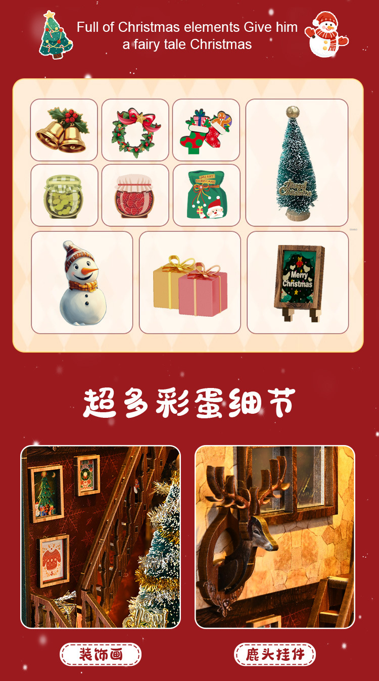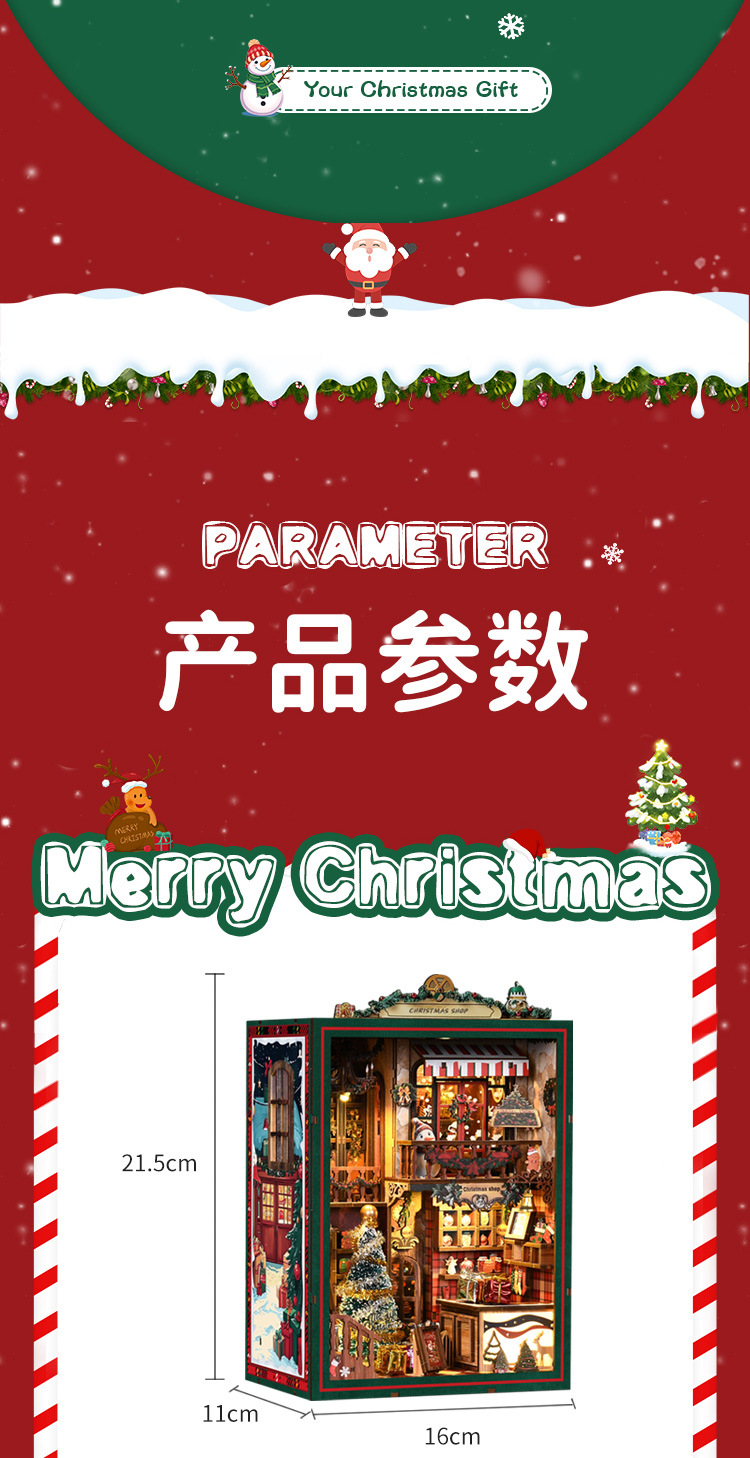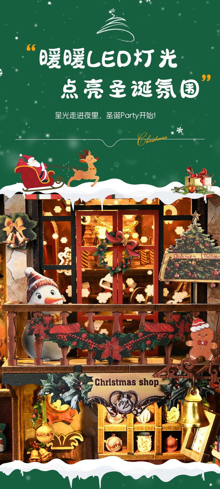 신제품 크리스마스 오두막 퍼즐 DIY 하우스 3D 입체 수제 조립 북엔드 미니어처 장면 장식 모델 하우스스토어 가기