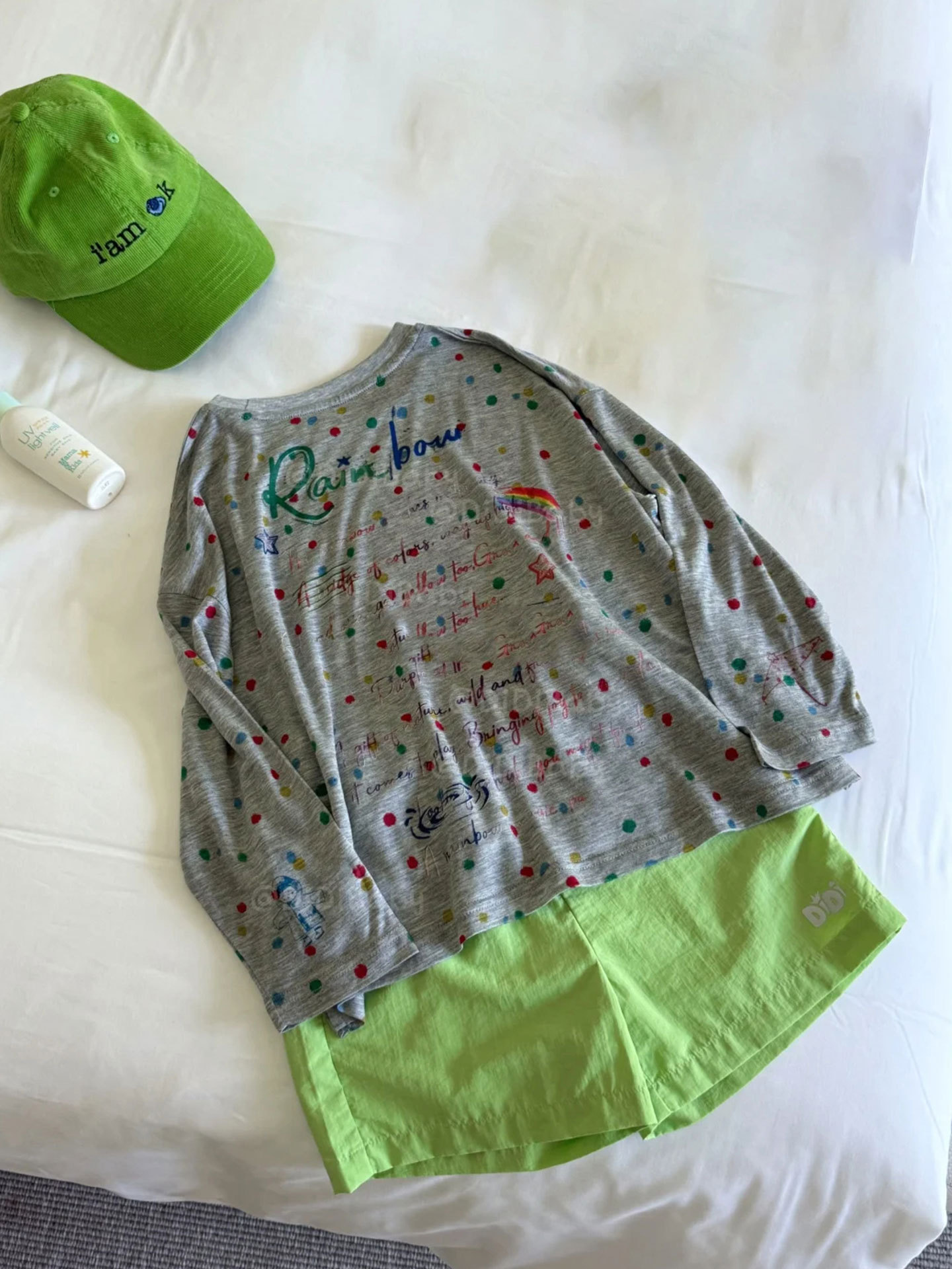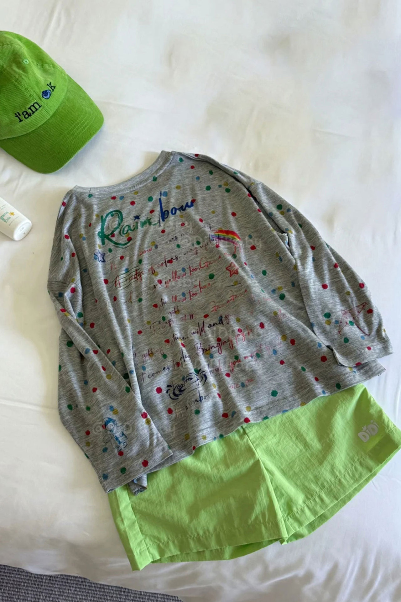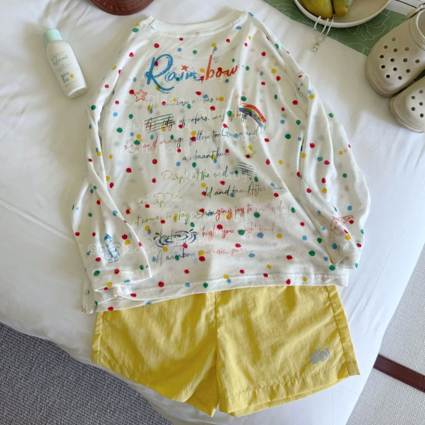 소년 긴팔 티셔츠 아동 여름 옷 2025 새로운 흰색 폴카 도트 코튼 탑 아기 소녀 태양 보호 의류 유행 3스토어 가기