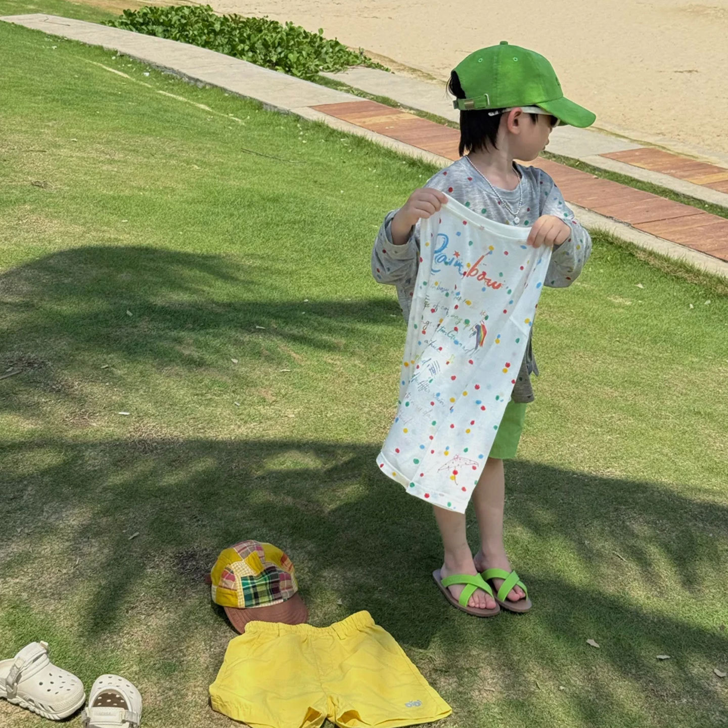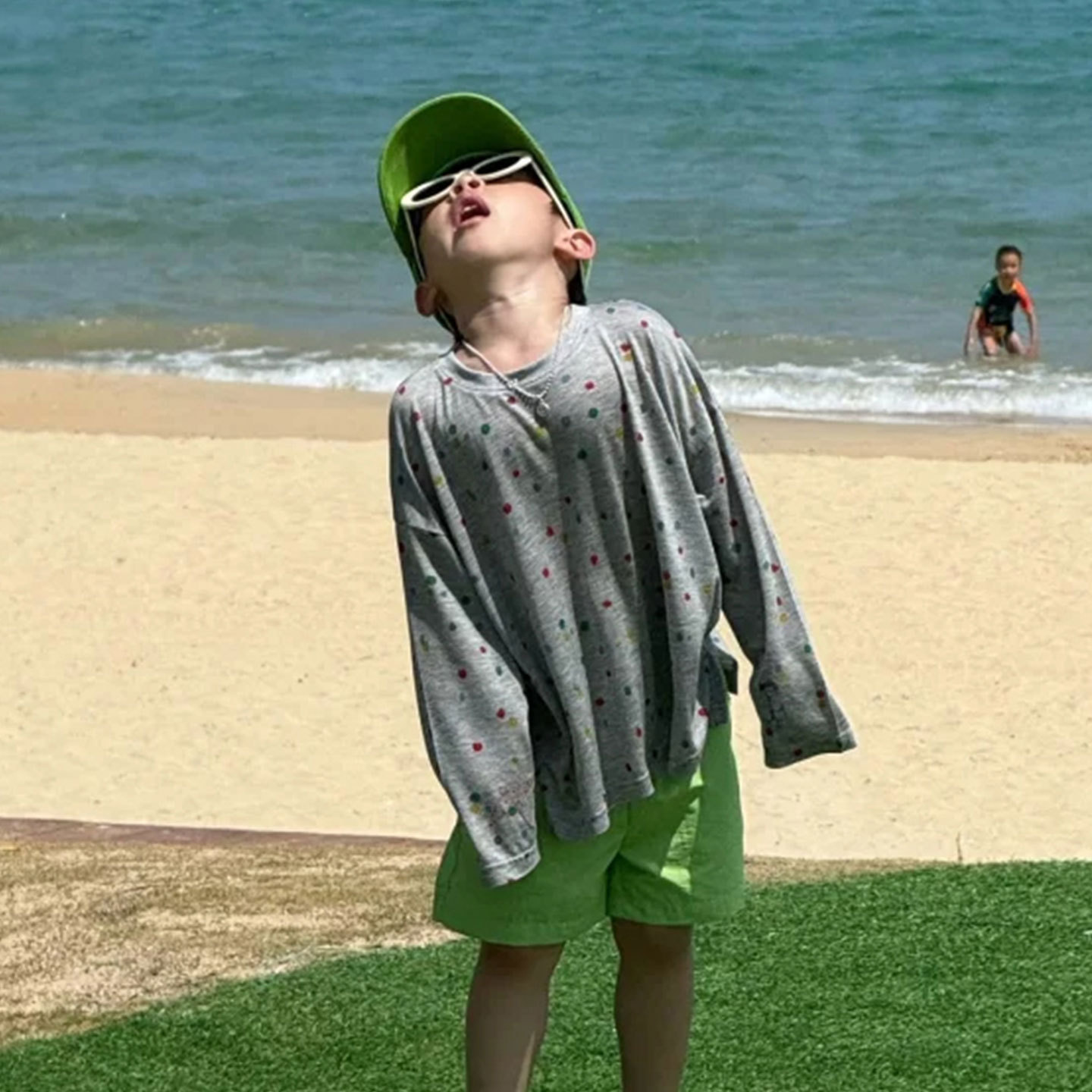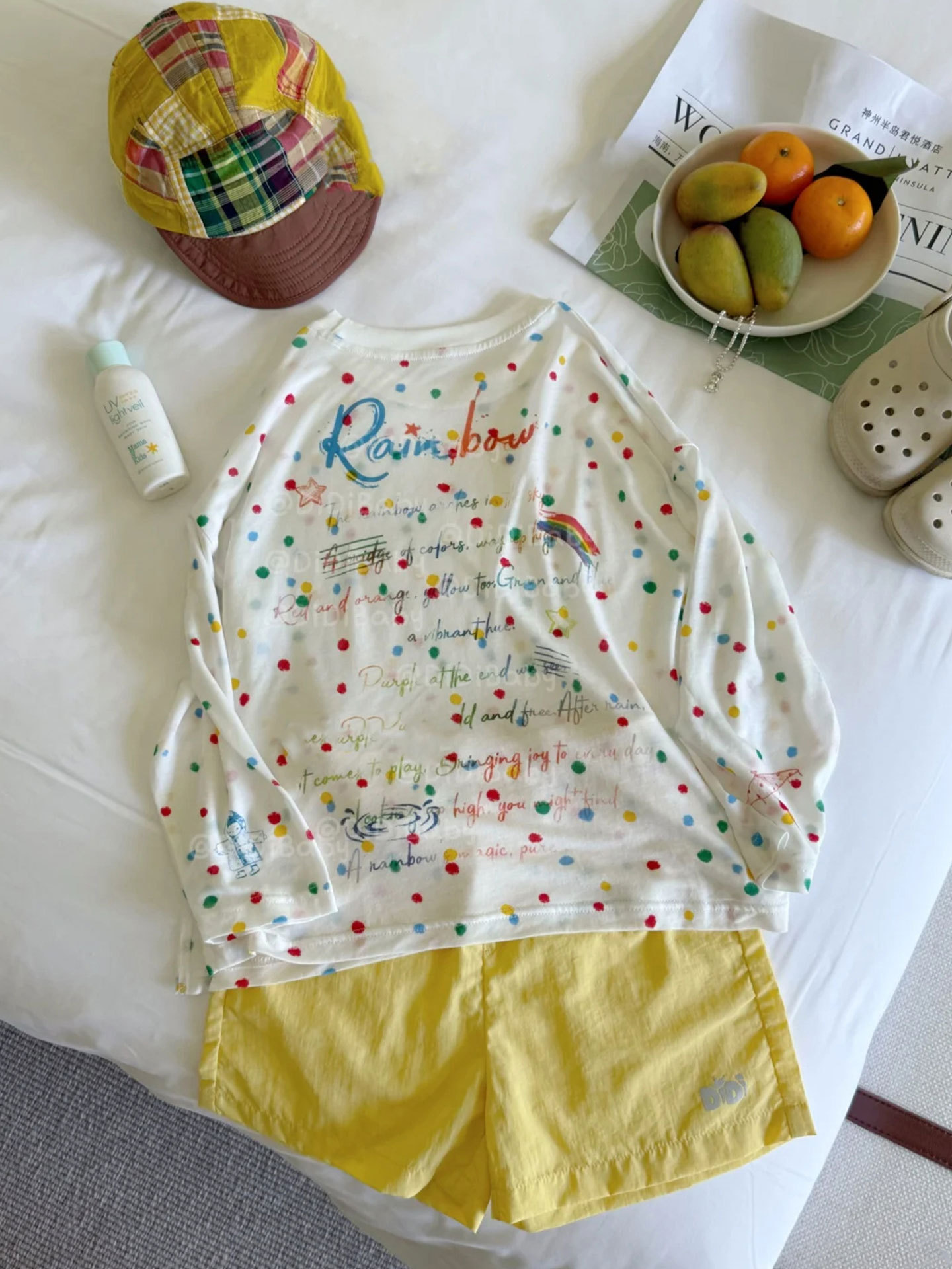 소년 긴팔 티셔츠 아동 여름 옷 2025 새로운 흰색 폴카 도트 코튼 탑 아기 소녀 태양 보호 의류 유행 3스토어 가기