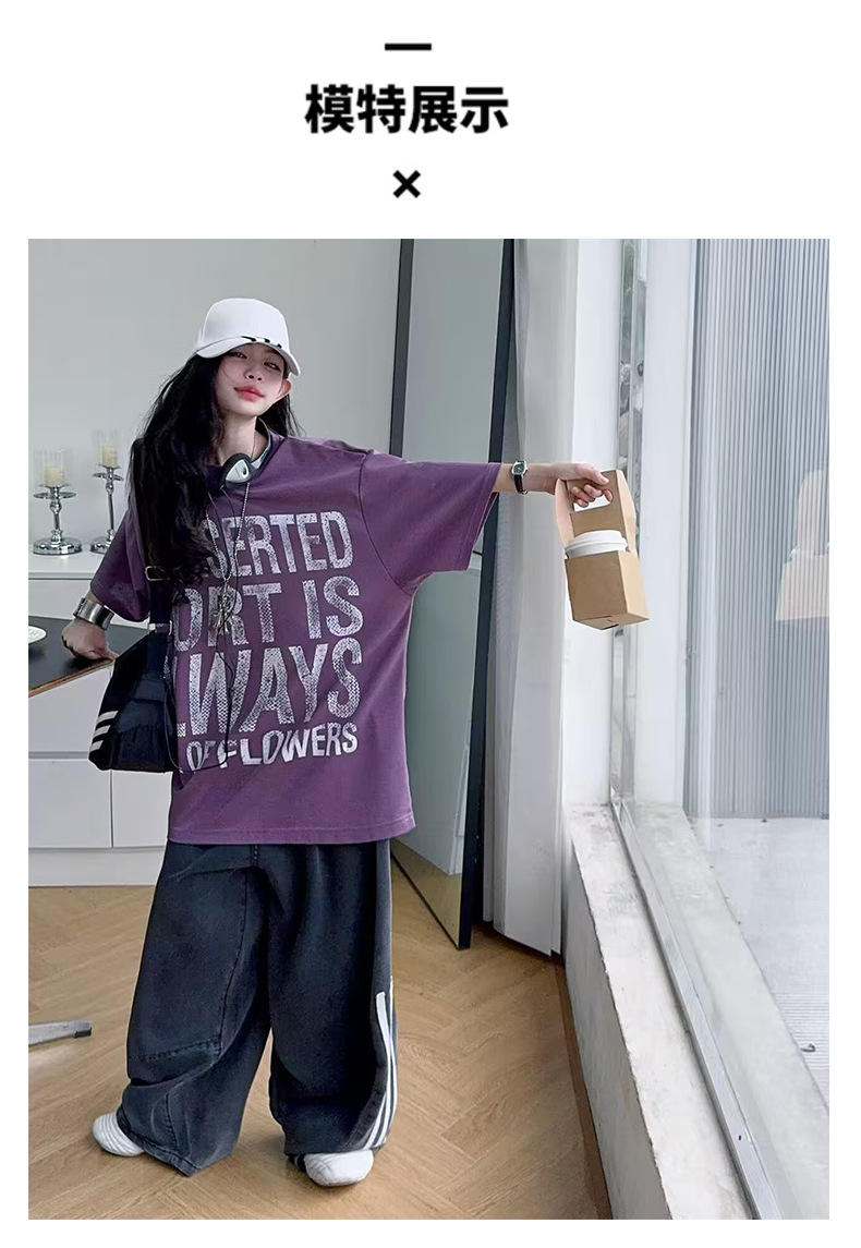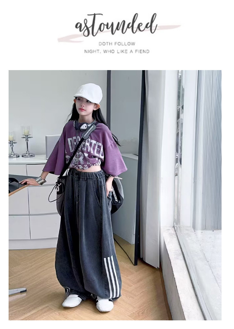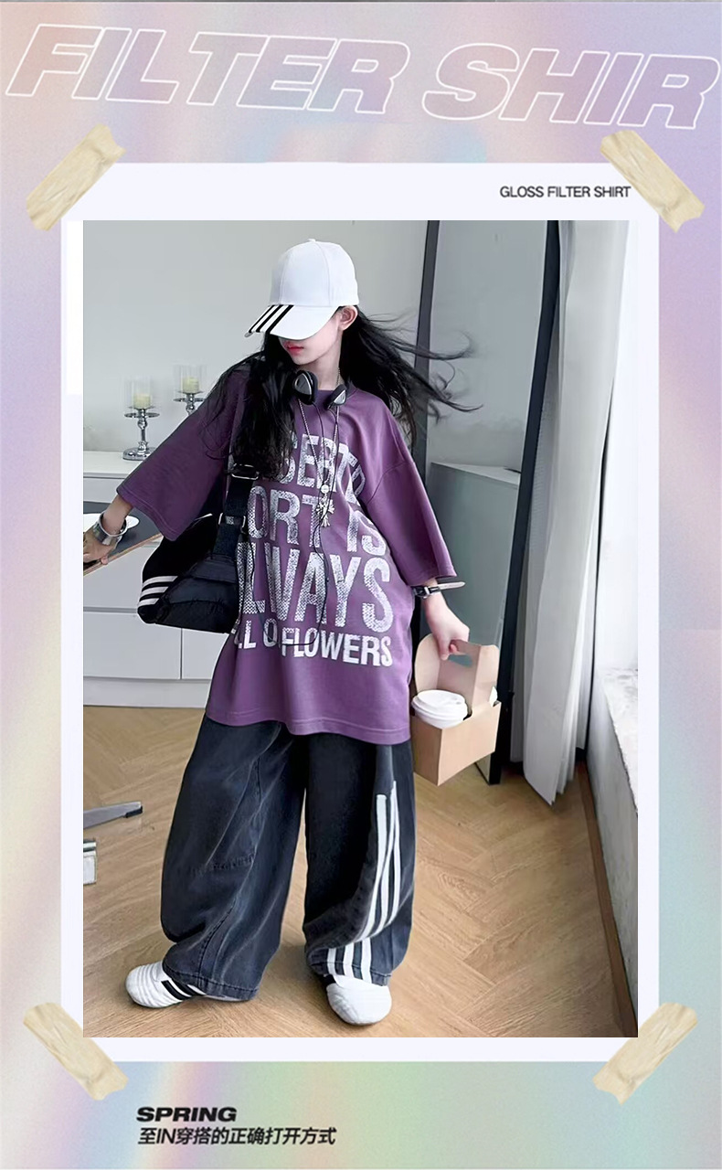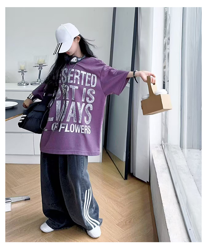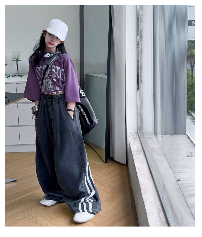 소녀들을 위한 재즈 댄스 의류 2025 새로운 여름 루즈한 레터 티셔츠 텐셀 하렘 팬츠 슈트, 큰 어린이를 위한 시원하고 멋진스토어 가기