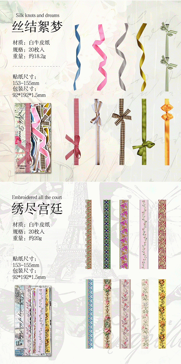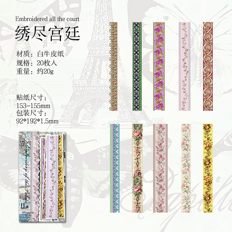 속이 빈 긴 레이스 소재 스티커, 흰색 크래프트 종이, 복고풍 레이스 핸드북 장식, 수제 하드 카드 스티커, 6가지 옵션