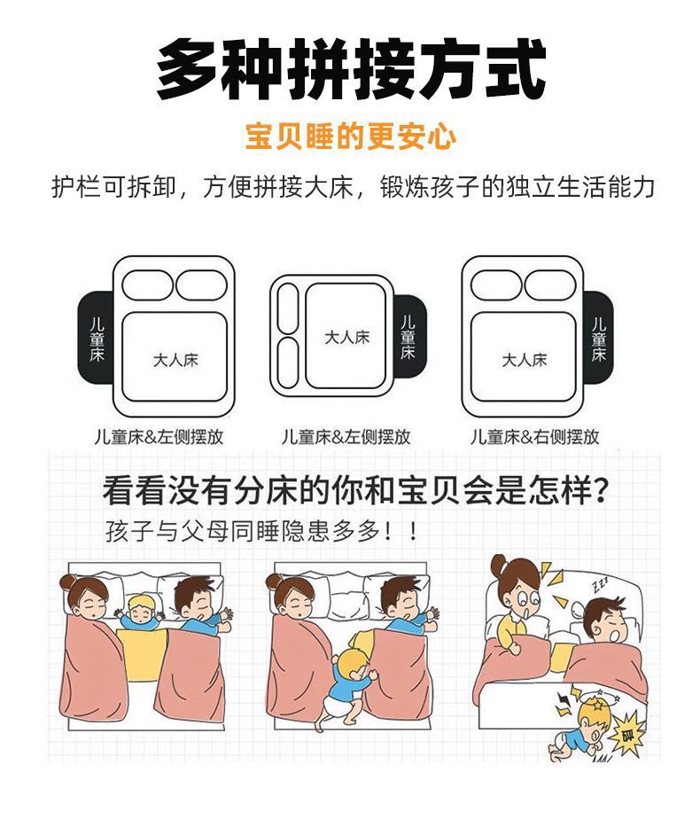 • A형 삼면 하이가드레일 + 베드사이드 + 5CM 코코넛팜 매트리스 [높이조절 36-50]