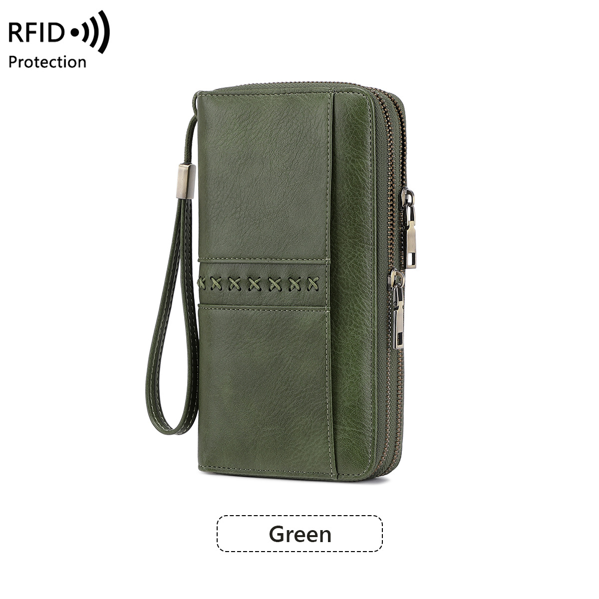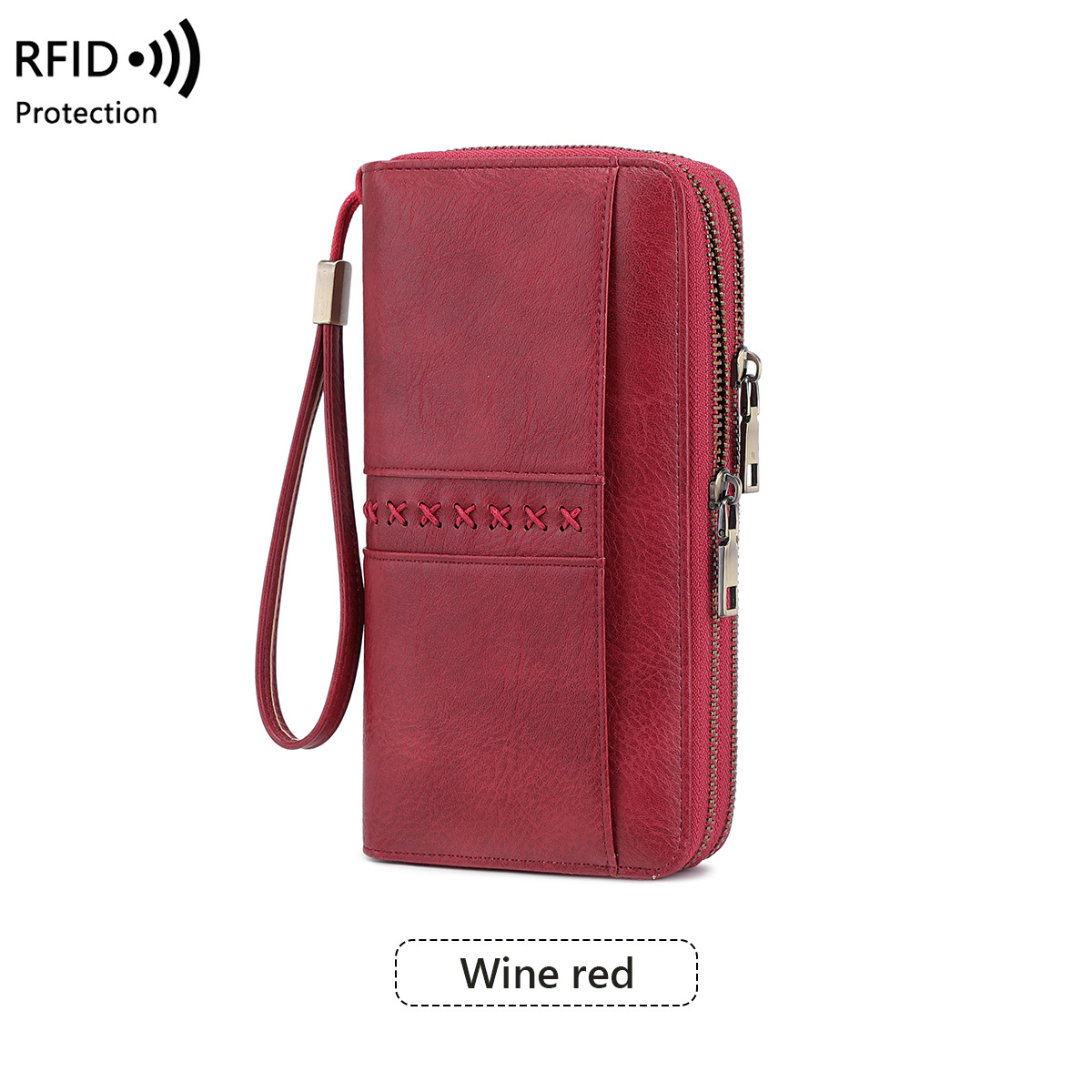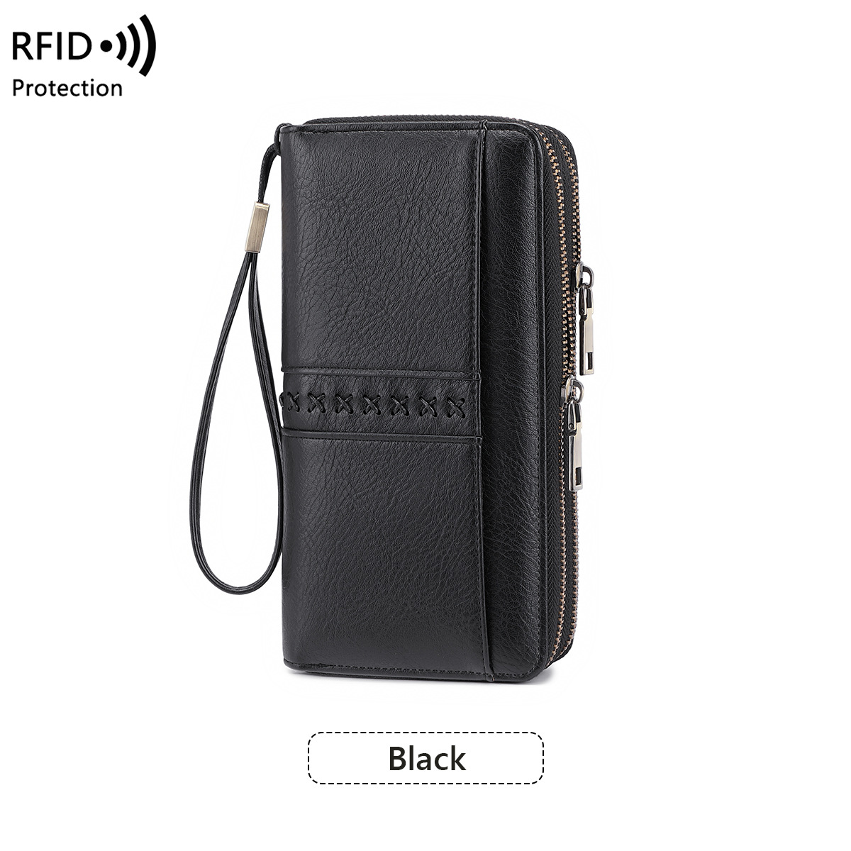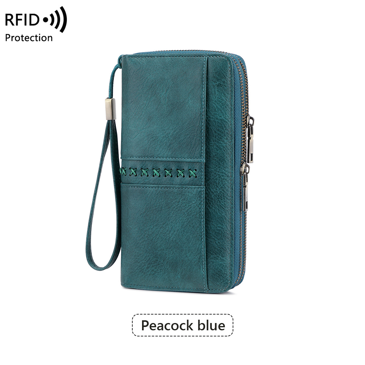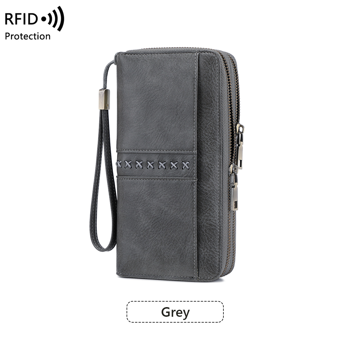 국경 간 새로운 RFID 여성용 지갑 더블 지퍼 대비 색상 긴 지갑 유럽과 미국의 복고풍 대용량 남성용 클러치 백스토어 가기