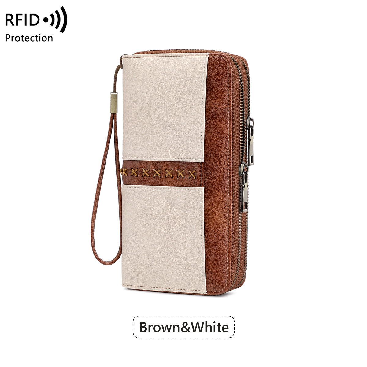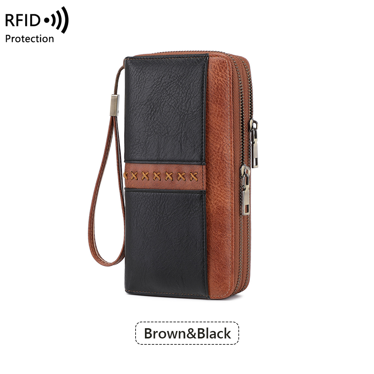 국경 간 새로운 RFID 여성용 지갑 더블 지퍼 대비 색상 긴 지갑 유럽과 미국의 복고풍 대용량 남성용 클러치 백
