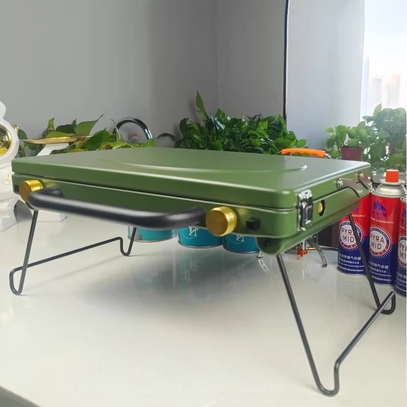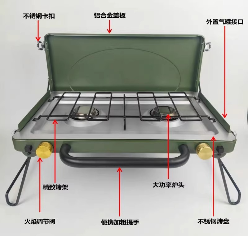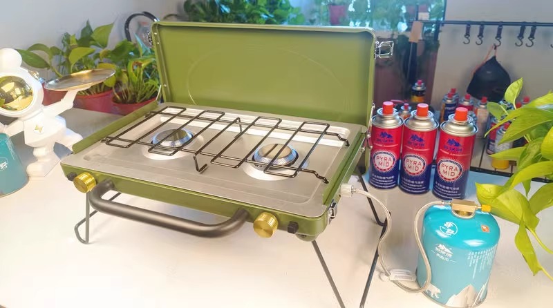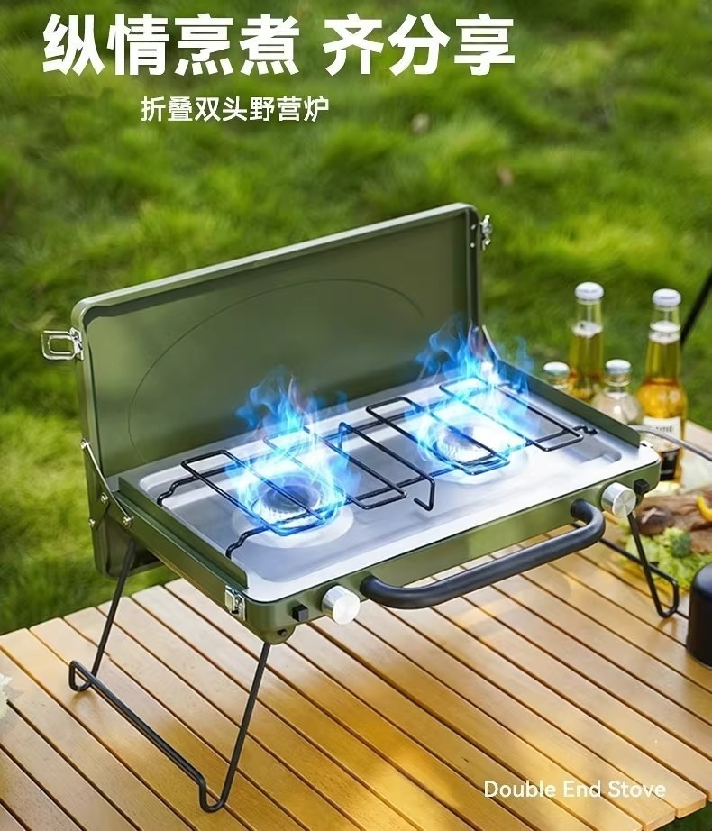 야외 가스 스토브 휴대용 가스 스토브 야외 캠핑 피크닉 쿠커 더블 헤드 스토브 바베큐 스토브 카세트 스토브