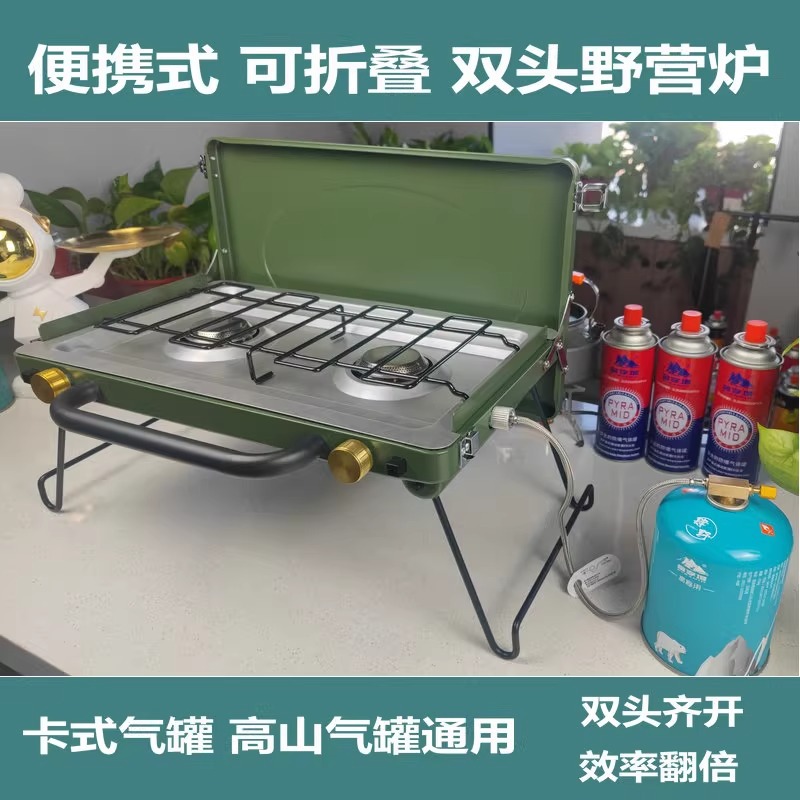 야외 가스 스토브 휴대용 가스 스토브 야외 캠핑 피크닉 쿠커 더블 헤드 스토브 바베큐 스토브 카세트 스토브스토어 가기