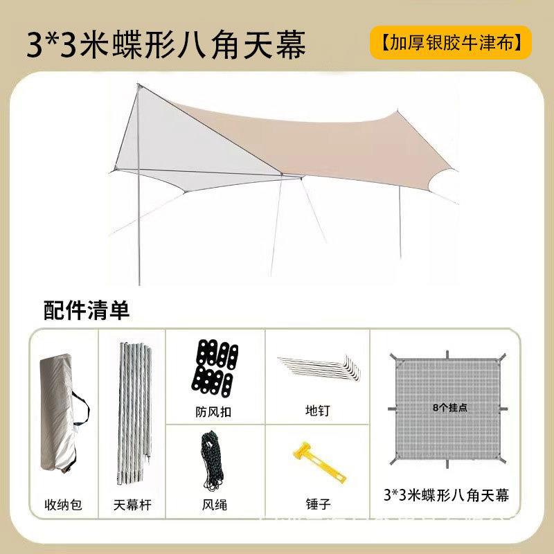 • 은풀 [나비 팔각형 3* 3m ] 바닥 못 + 방풍 로프 + 핸드백 + 망치 포함