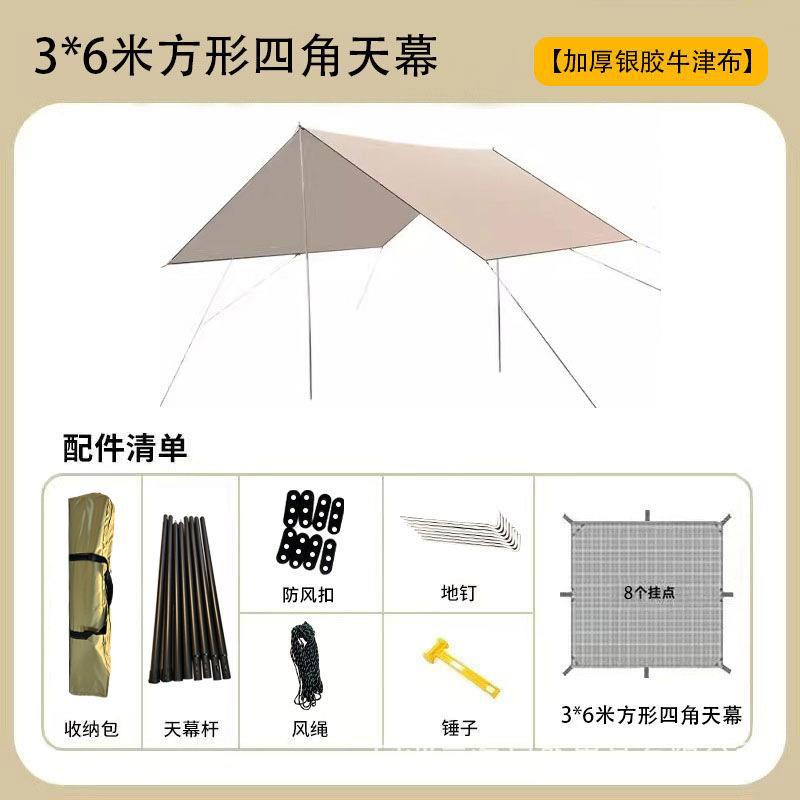 야외 대형 은색 코팅 천막, 휴대용 야외 자외선 차단제, 두꺼운 비닐 4봉 캐노피 캠핑 텐트 장비스토어 가기
