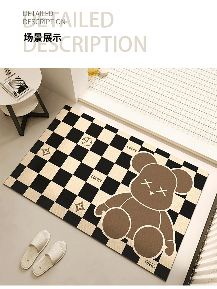 만화 팬더 욕실 바닥 매트 욕실 규조토 진흙 흡수성 미끄럼 방지 매트 가정용 화장실 문 속건성 카펫