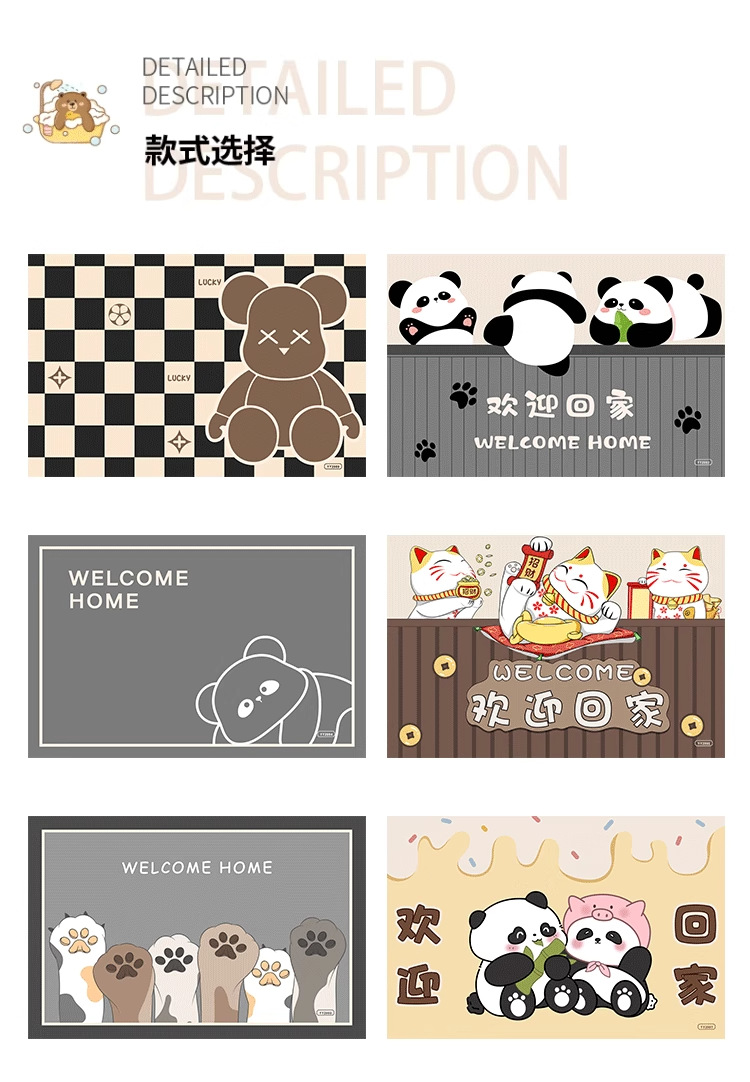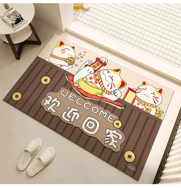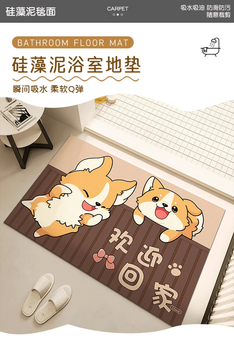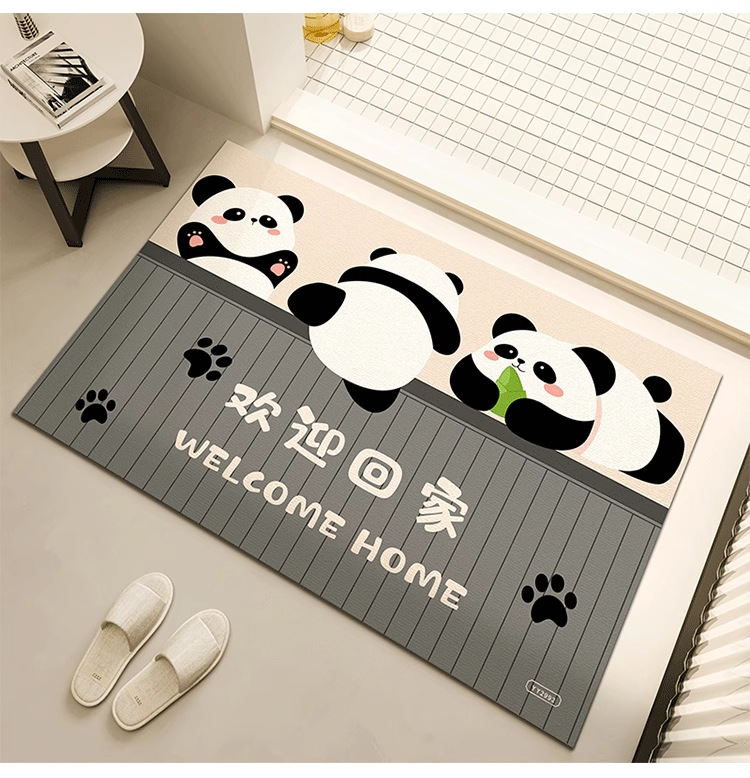 만화 팬더 욕실 바닥 매트 욕실 규조토 진흙 흡수성 미끄럼 방지 매트 가정용 화장실 문 속건성 카펫스토어 가기