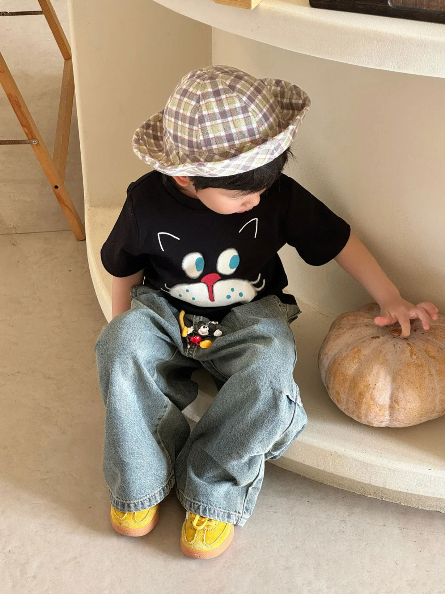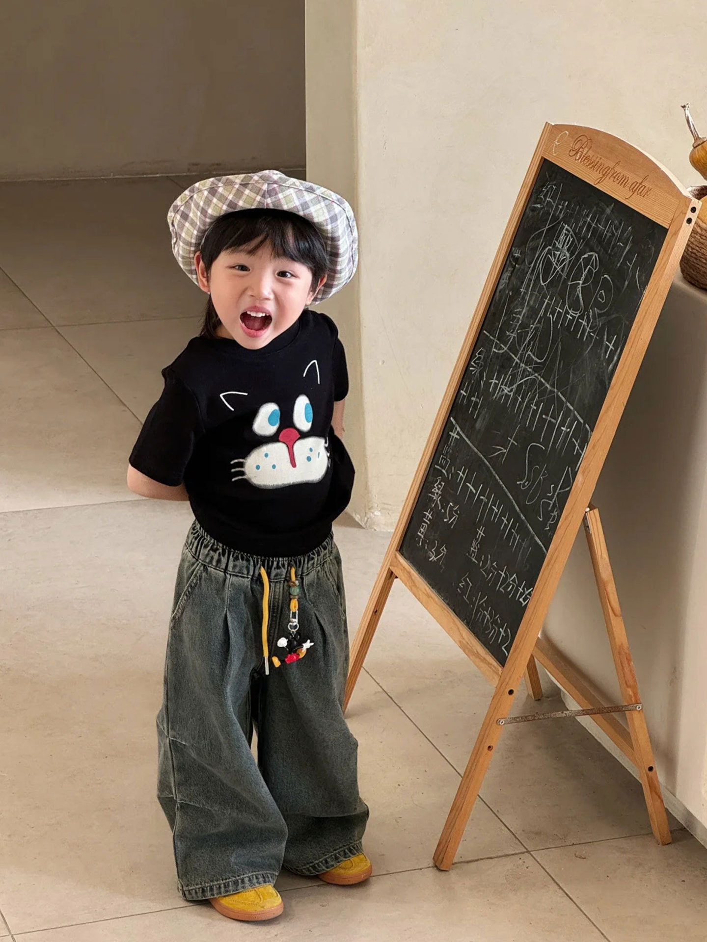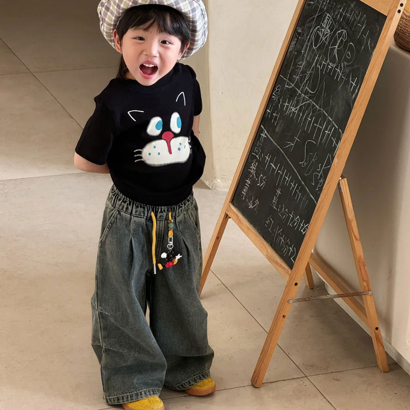 소년 반팔 티셔츠 어린이 여름 옷 2025 새로운 패션 검은 면 탑 아기 소녀 얇은 옷 유행 3