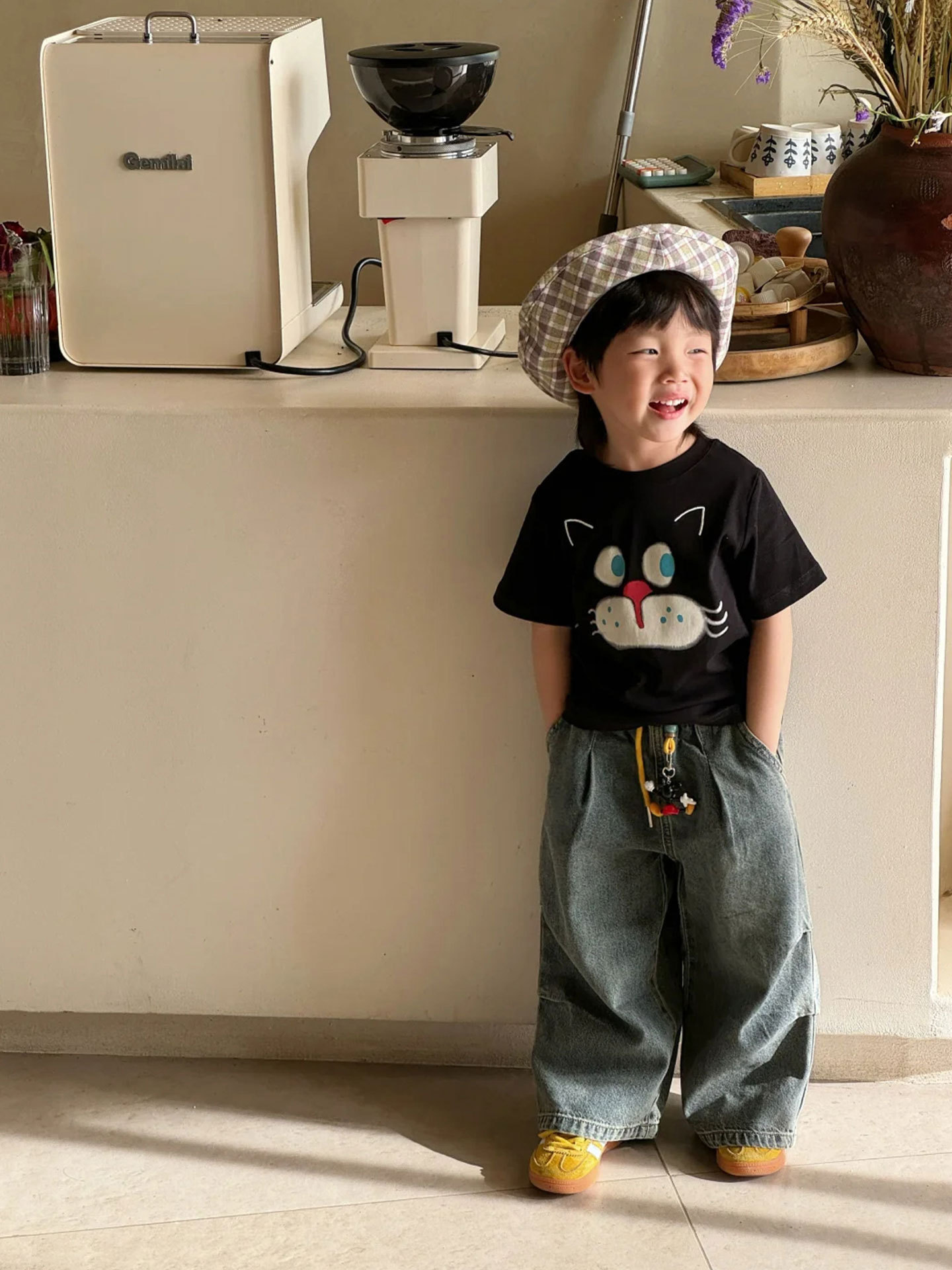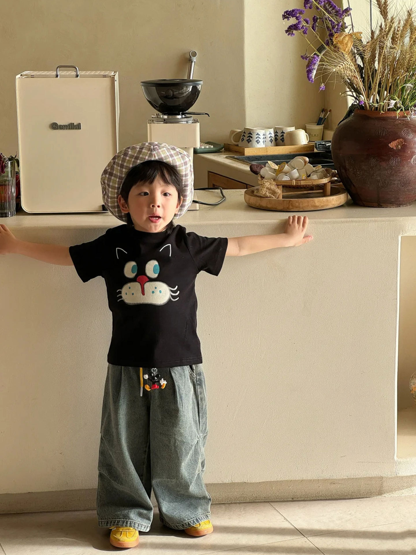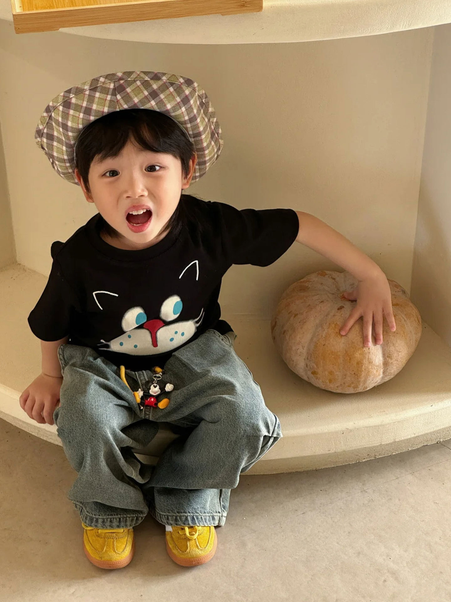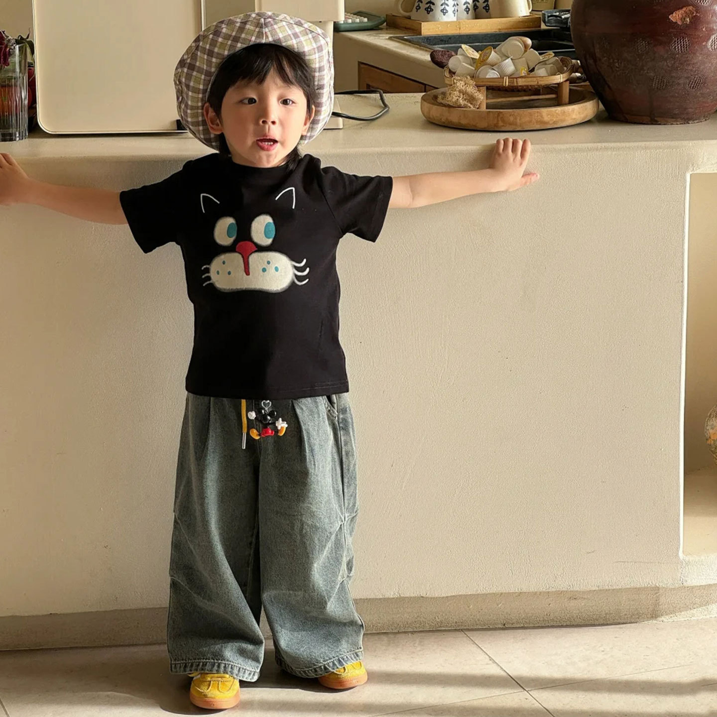 소년 반팔 티셔츠 어린이 여름 옷 2025 새로운 패션 검은 면 탑 아기 소녀 얇은 옷 유행 3