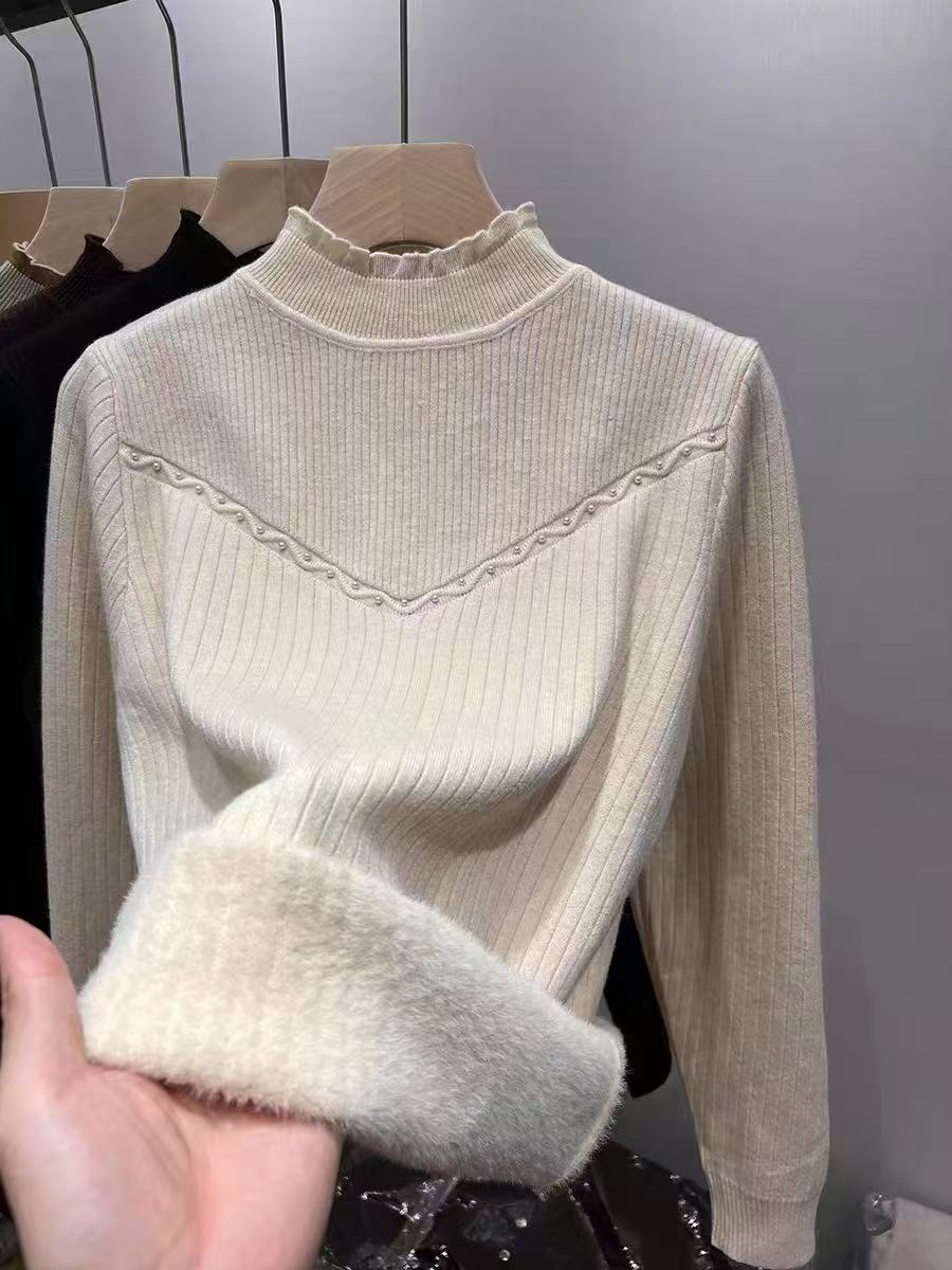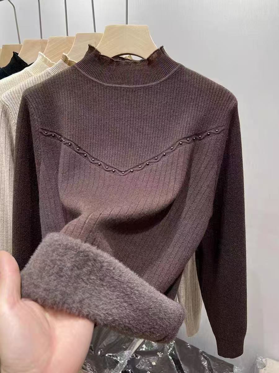 가을 겨울 여성용 하프 터틀넥 셔츠 솔리드 컬러 미드 칼라 레이스 플러스 벨벳 이너 스웨터 원피스 벨벳 두꺼운 스웨터스토어 가기
