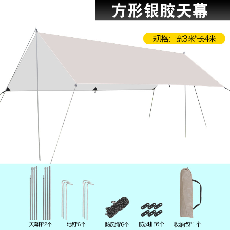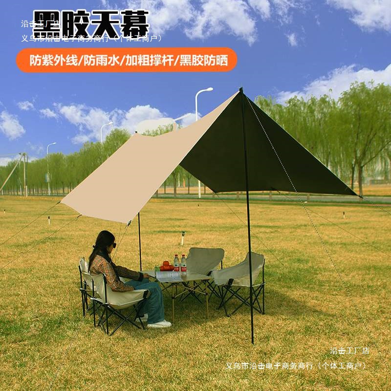 야외 야외 다인용 휴대용 캠핑 방풍, 방수 및 자외선 차단 천막 실버 및 검정색 비닐 캐노피 텐트스토어 가기