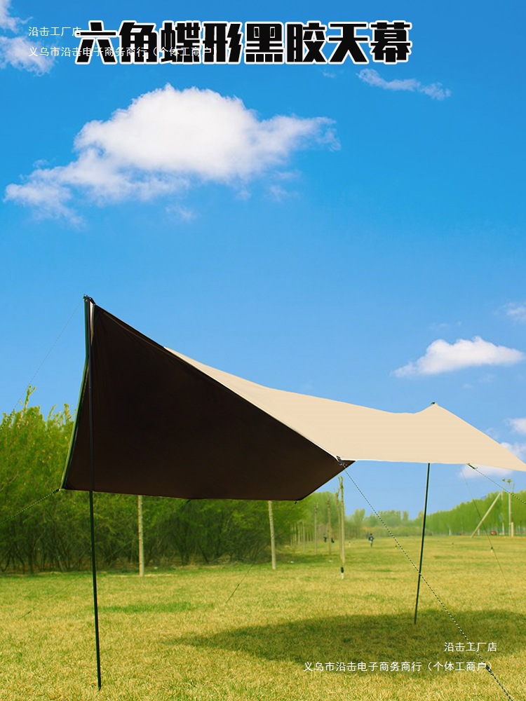 야외 야외 다인용 휴대용 캠핑 방풍, 방수 및 자외선 차단 천막 실버 및 검정색 비닐 캐노피 텐트