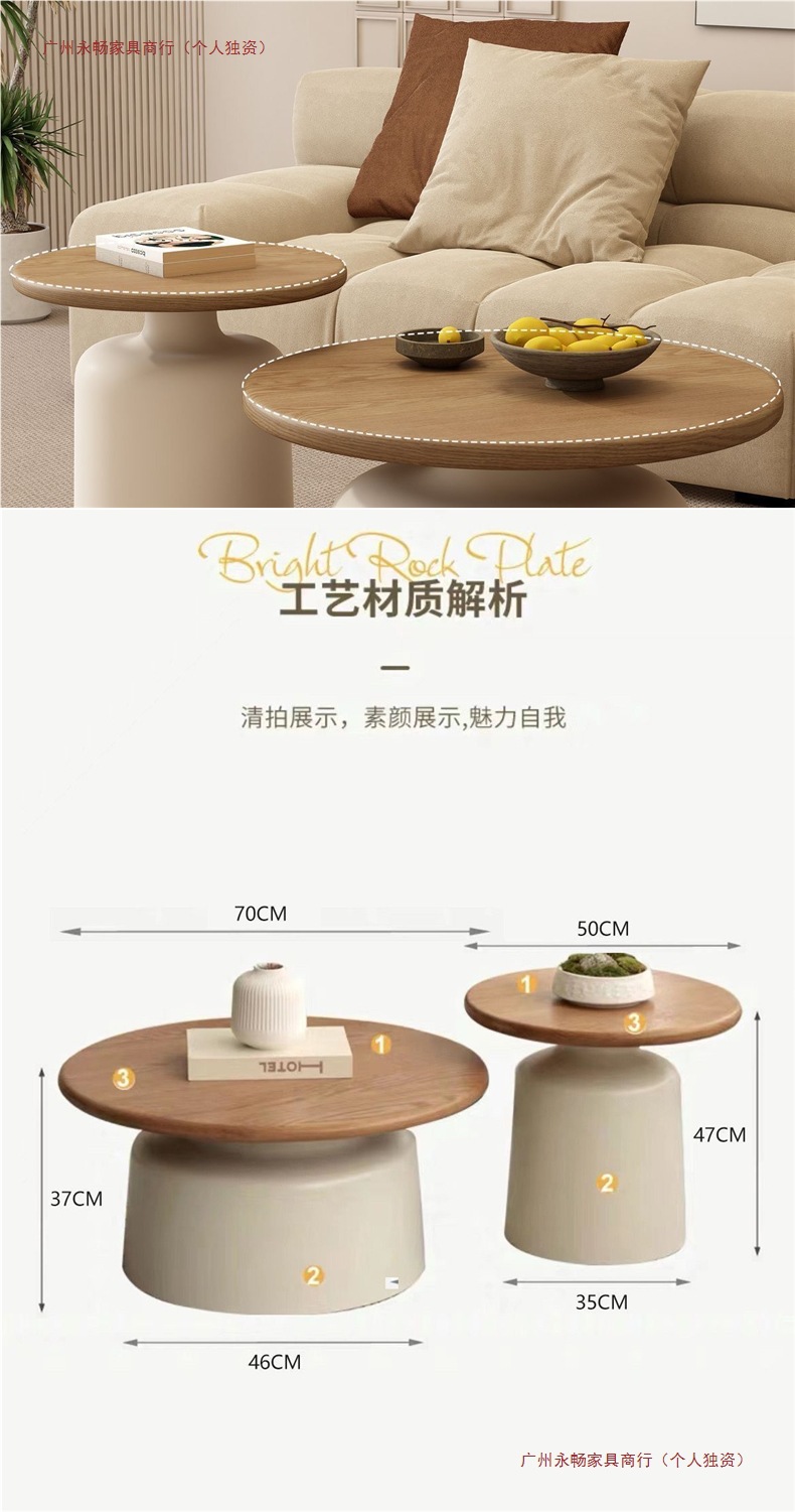 • 가벼운 나뭇결 50+70 직경 조합 모델(두꺼운 원형 테이블 엣지 디자인)