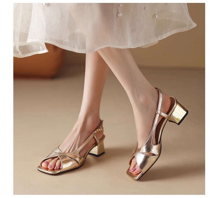 2025년 여름 신상 오픈토 원스트랩 샌들, 여성스러운 프렌치 패션 캐주얼 두꺼운 굽 하이힐 샌들스토어 가기