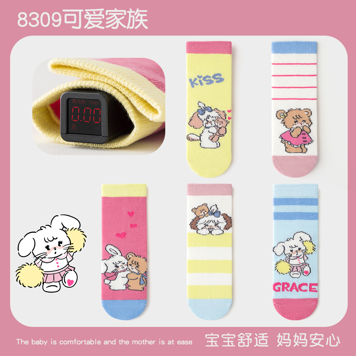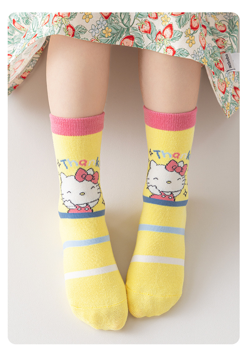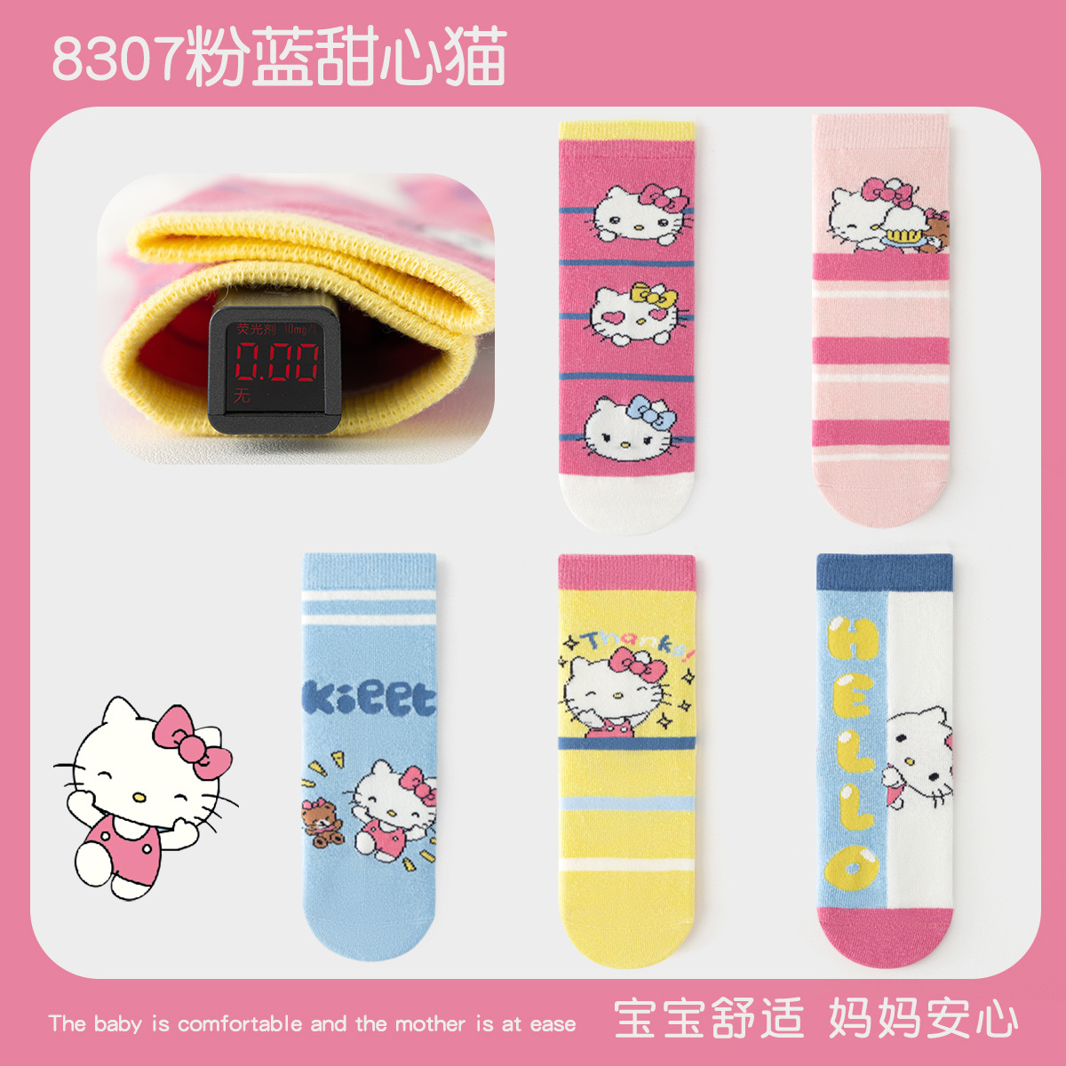 2025 가을, 겨울 어린이 양말 만화 중간 튜브 양말 핑크 고양이 중형 및 대형 어린이 A 등급 면 양말 소년 소녀 양말스토어 가기