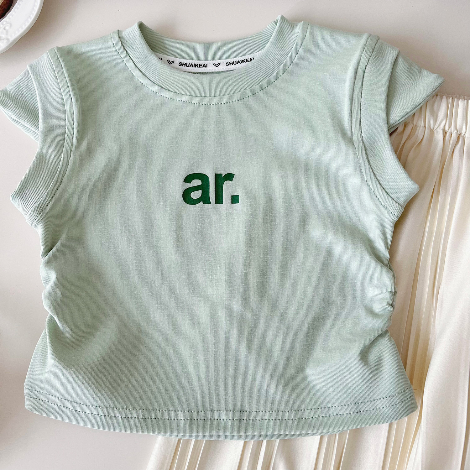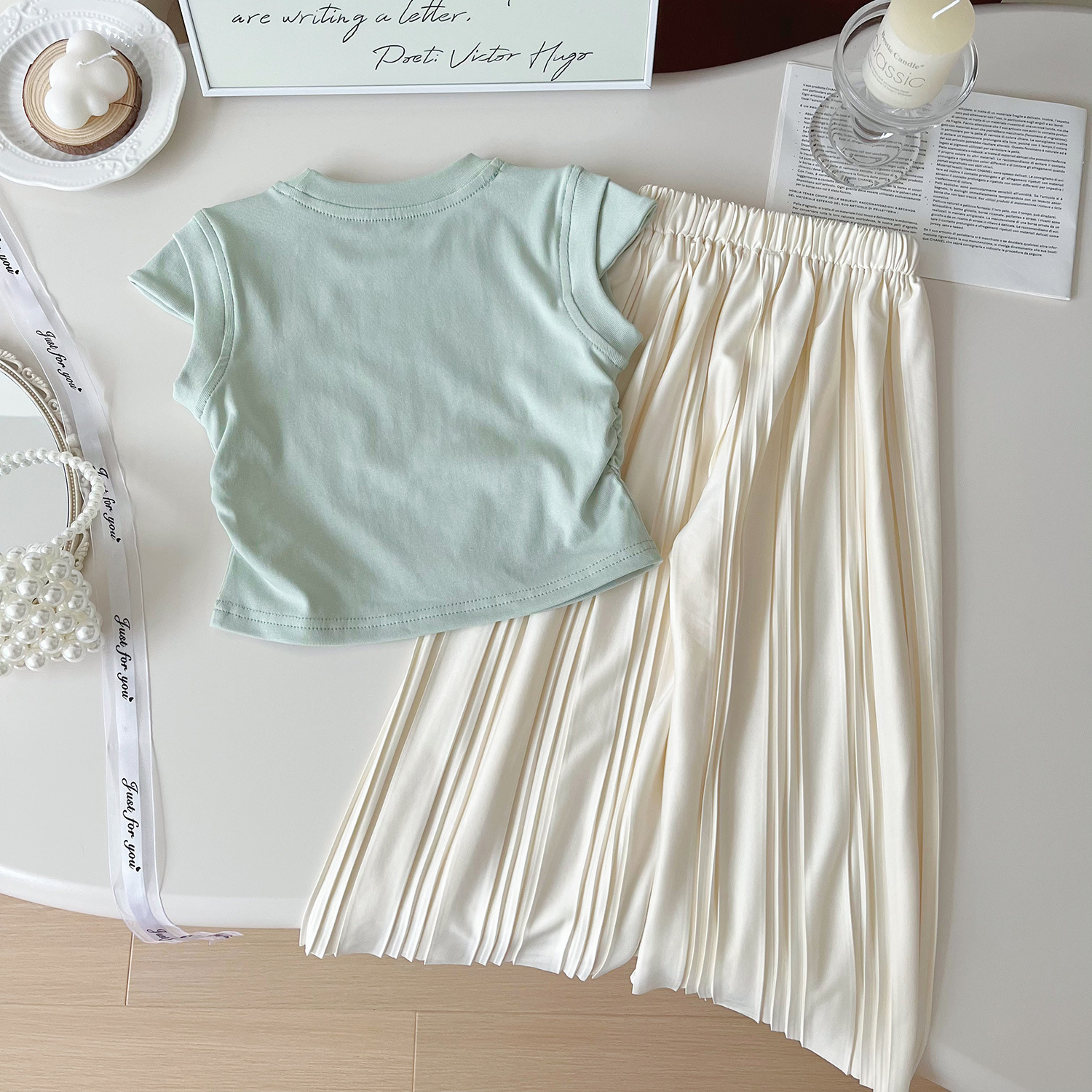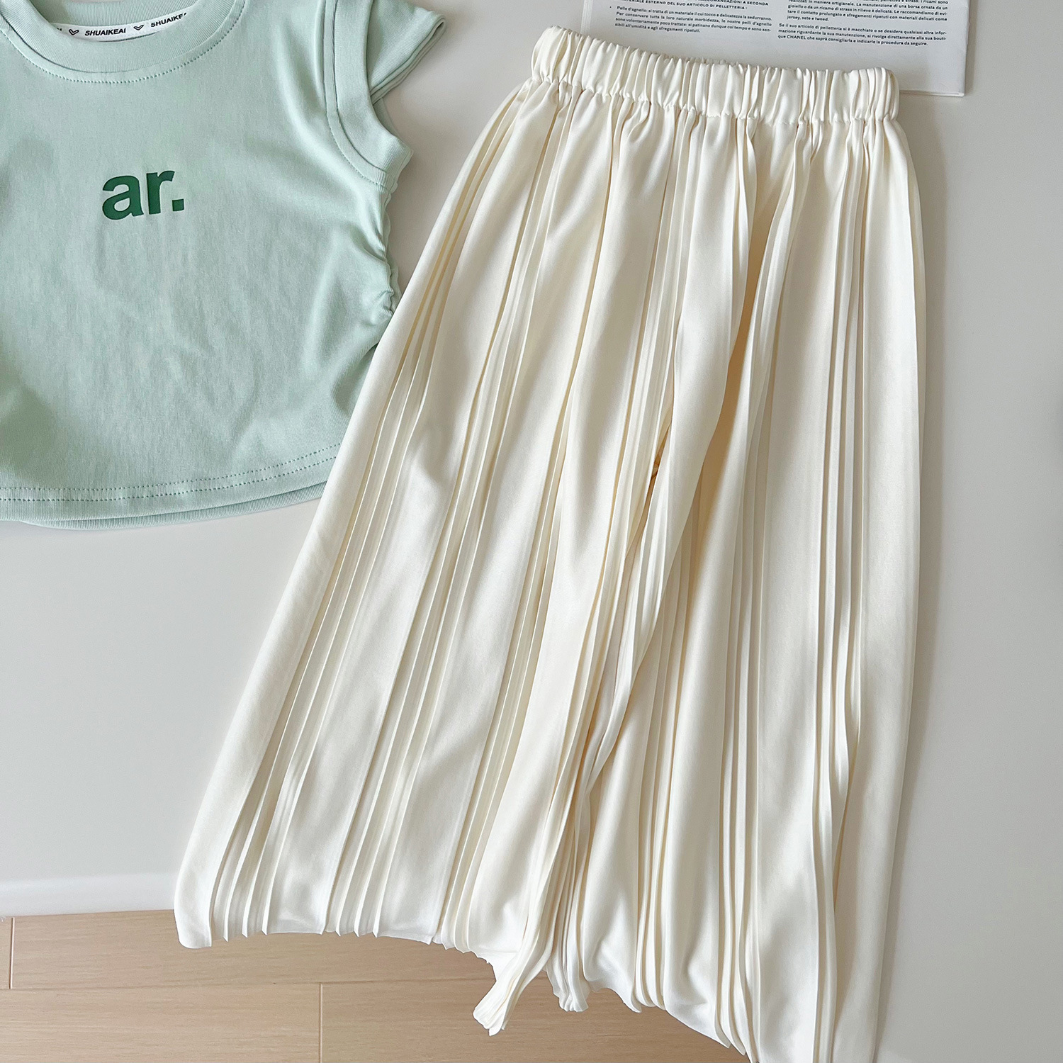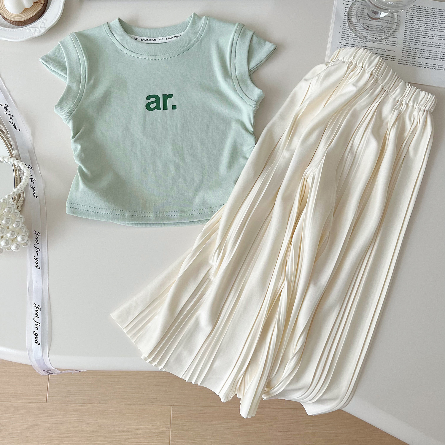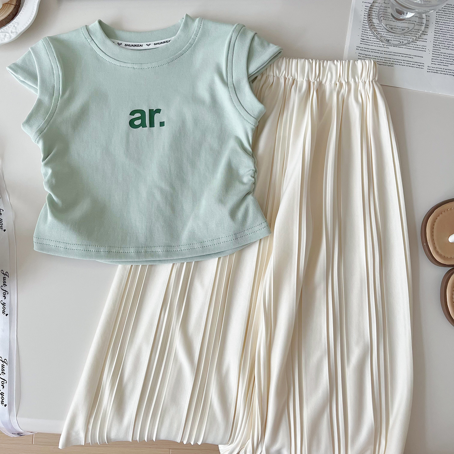 2024 여름 새로운 한국 스타일 여자 인쇄 티셔츠와 바지 투피스 세트 여자 캐주얼 루즈 바지 정장 24259