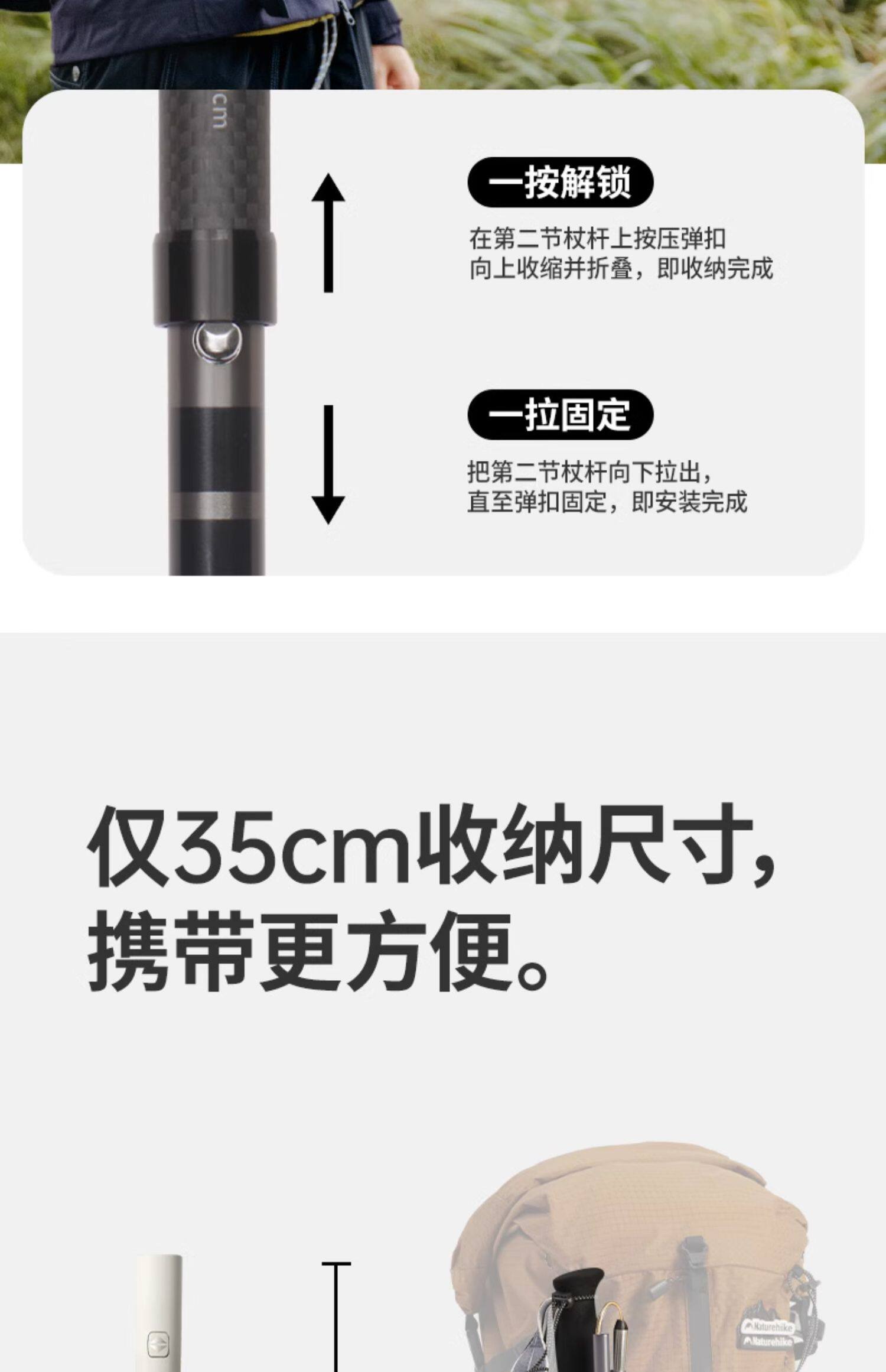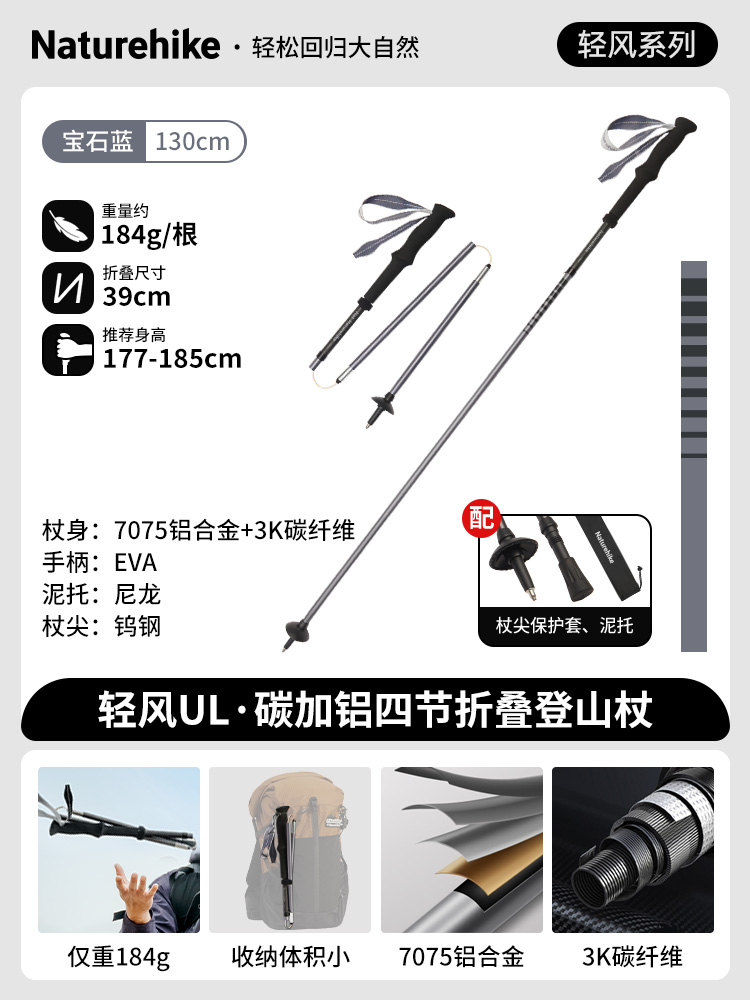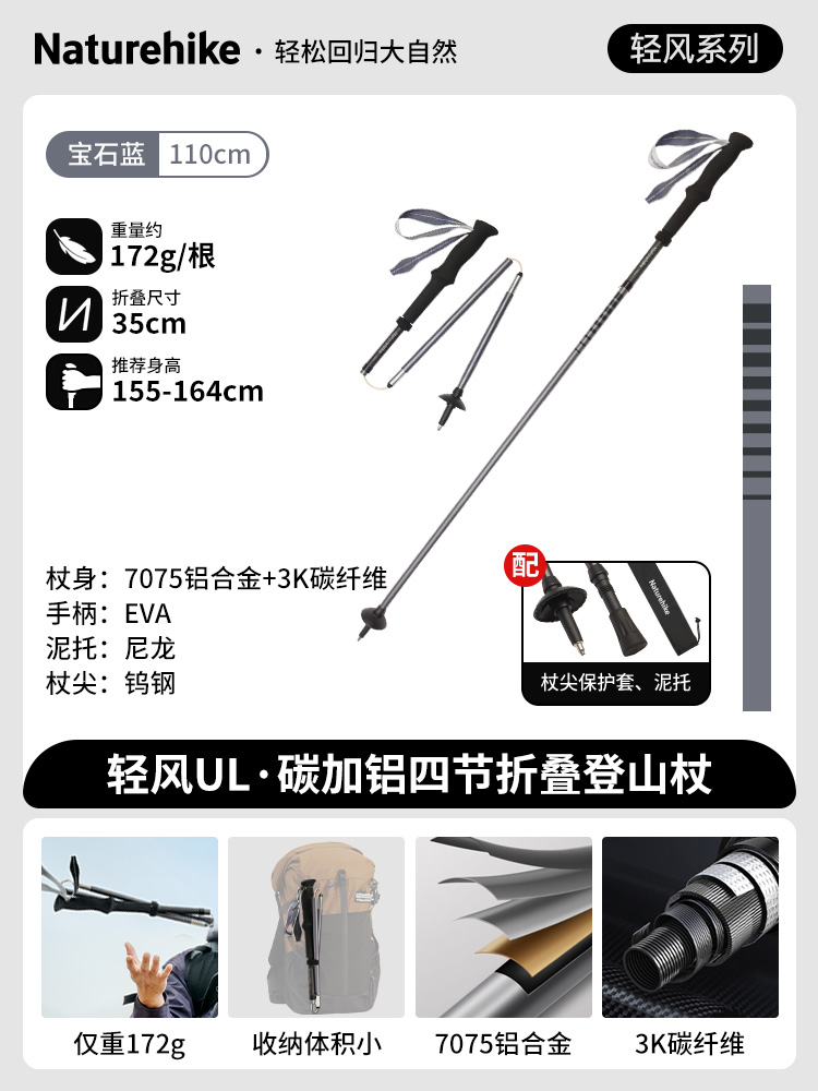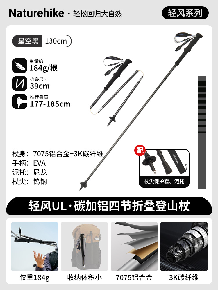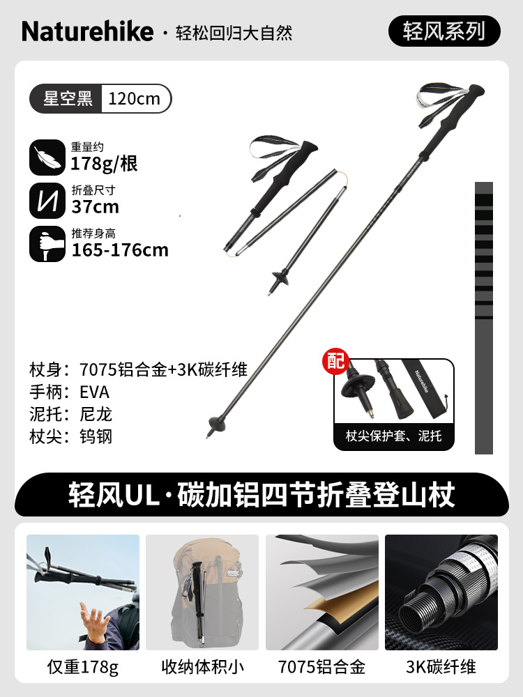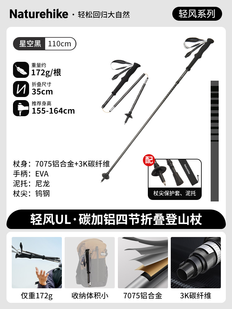 Nok 탄소 섬유 4 섹션 접이식 하이킹 스틱 전문 등산 장비 남성과 여성 야외 하이킹 등산 지팡이스토어 가기